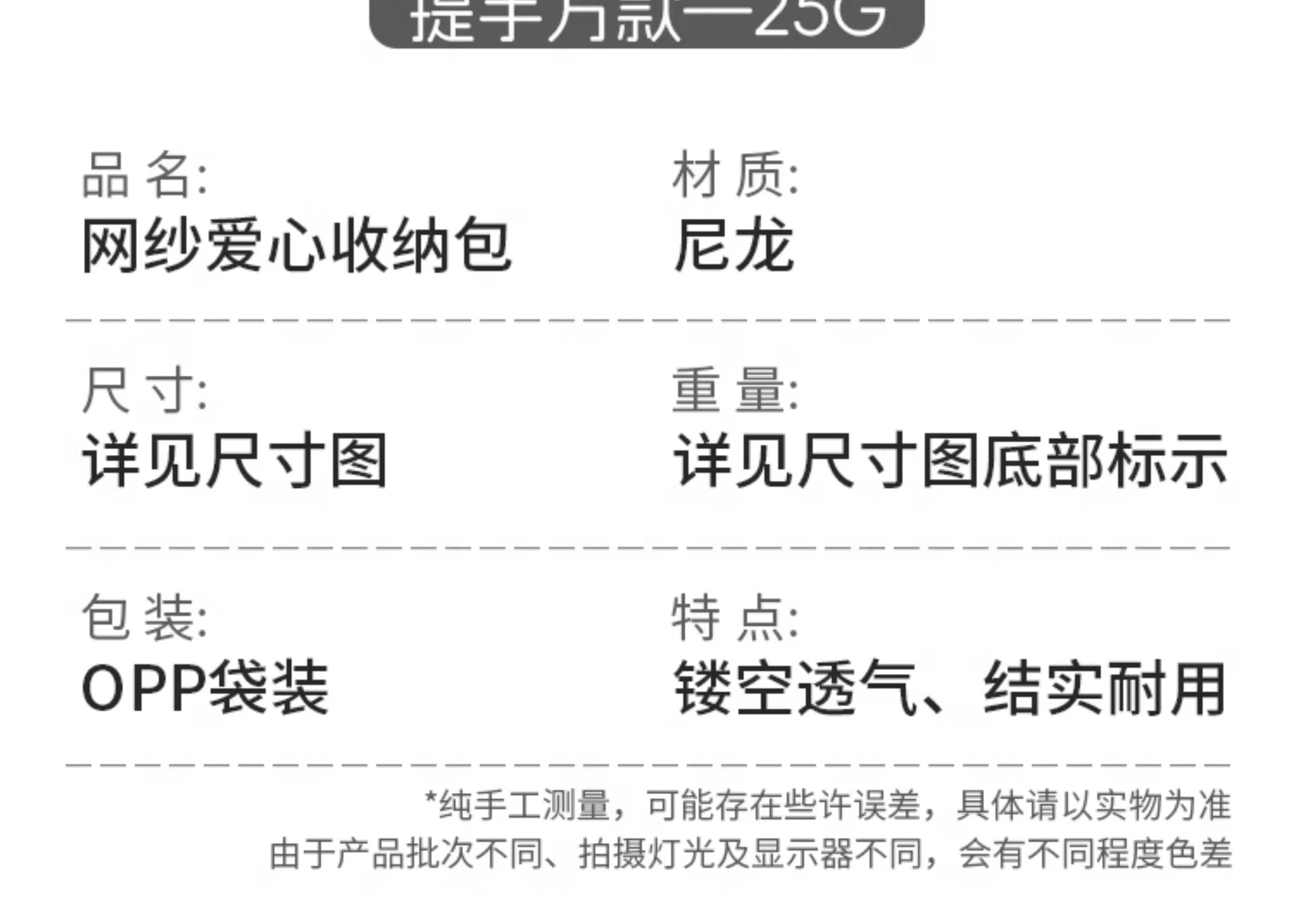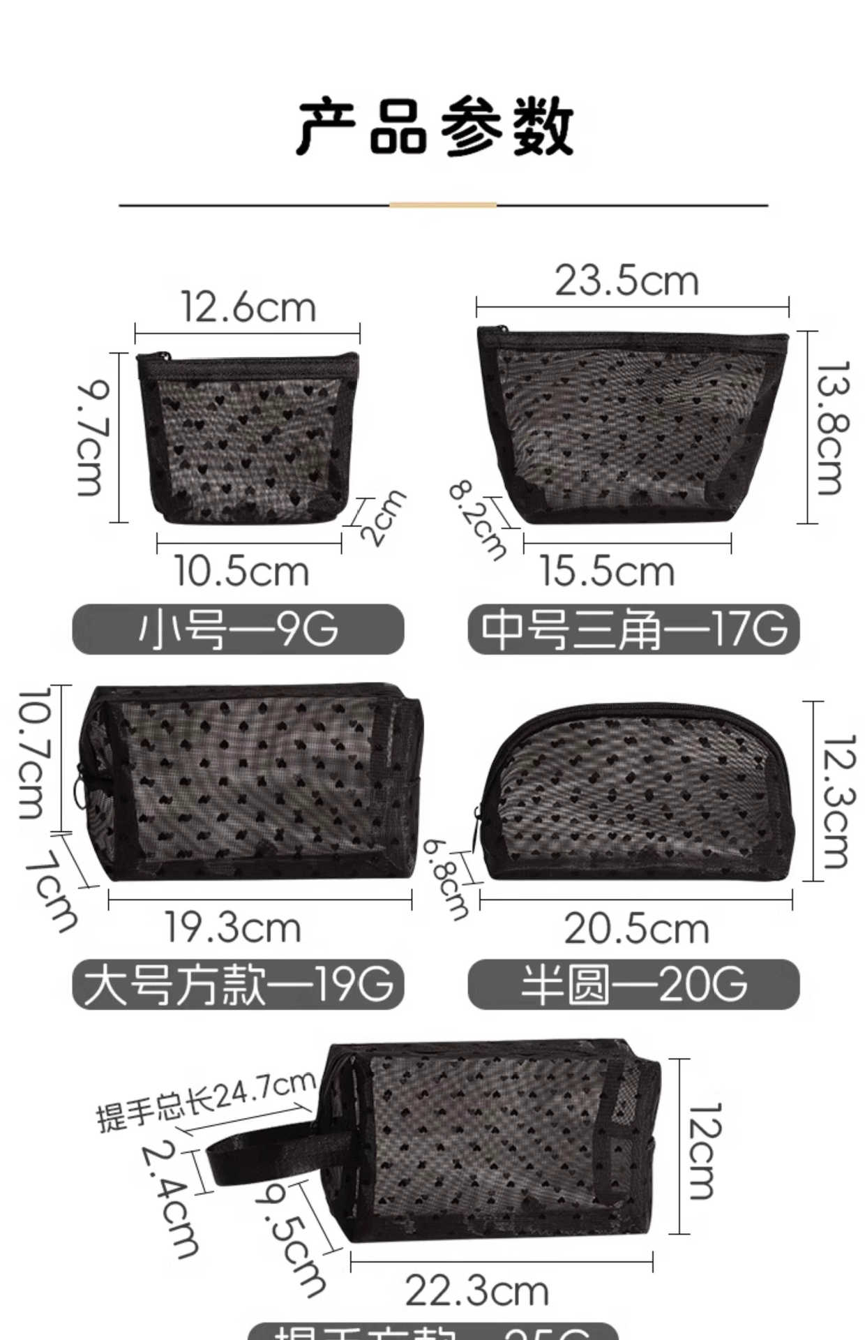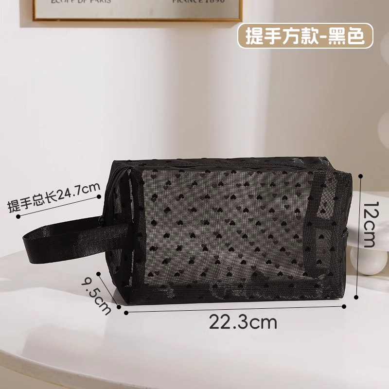 • 러브 메쉬 화장품 가방 [대형 핸들 포함 - 블랙] 1개