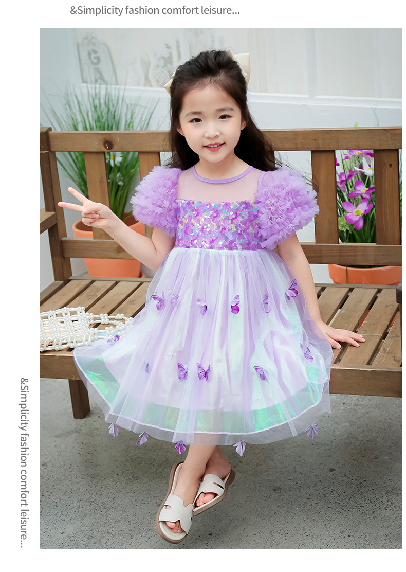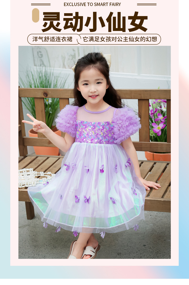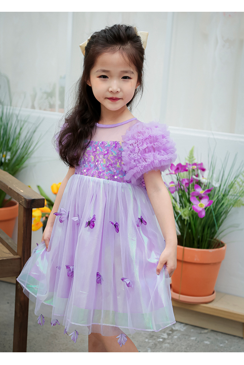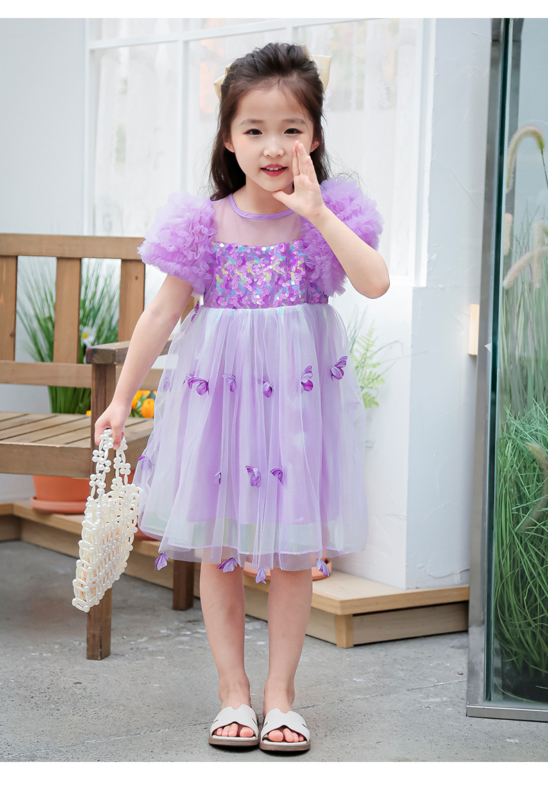 여자 드레스 여름 스타일 날개가 달린 공주 드레스 보라색 스커트 어린이 공연 드레스 어린이 날 공연 의상스토어 가기