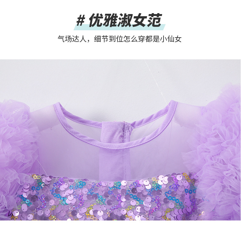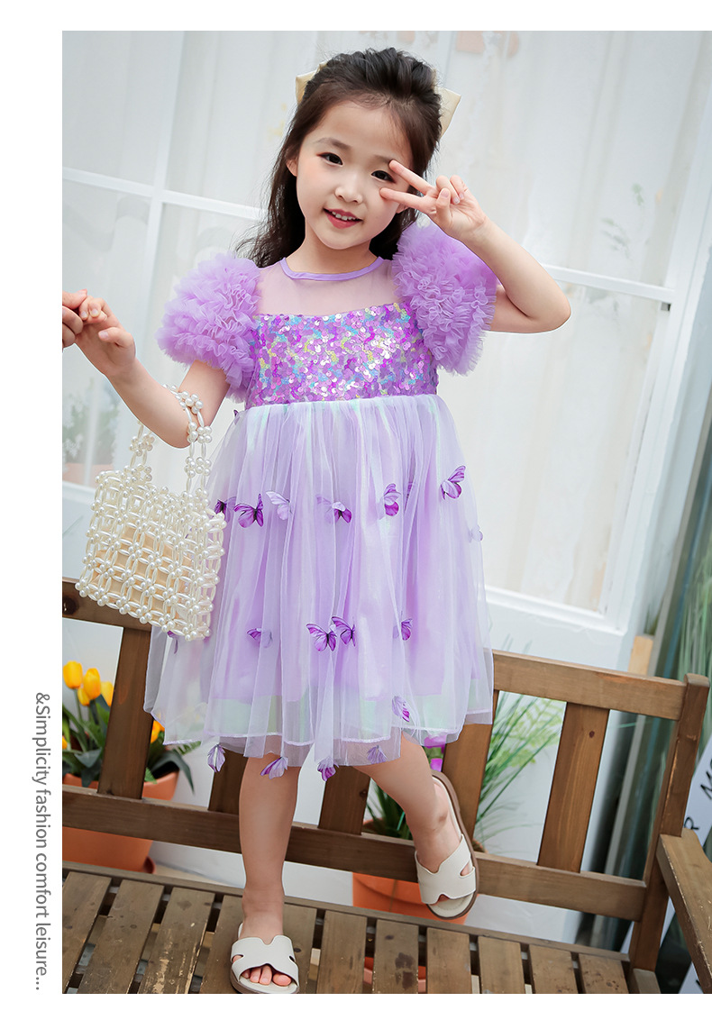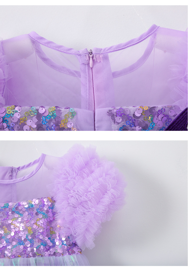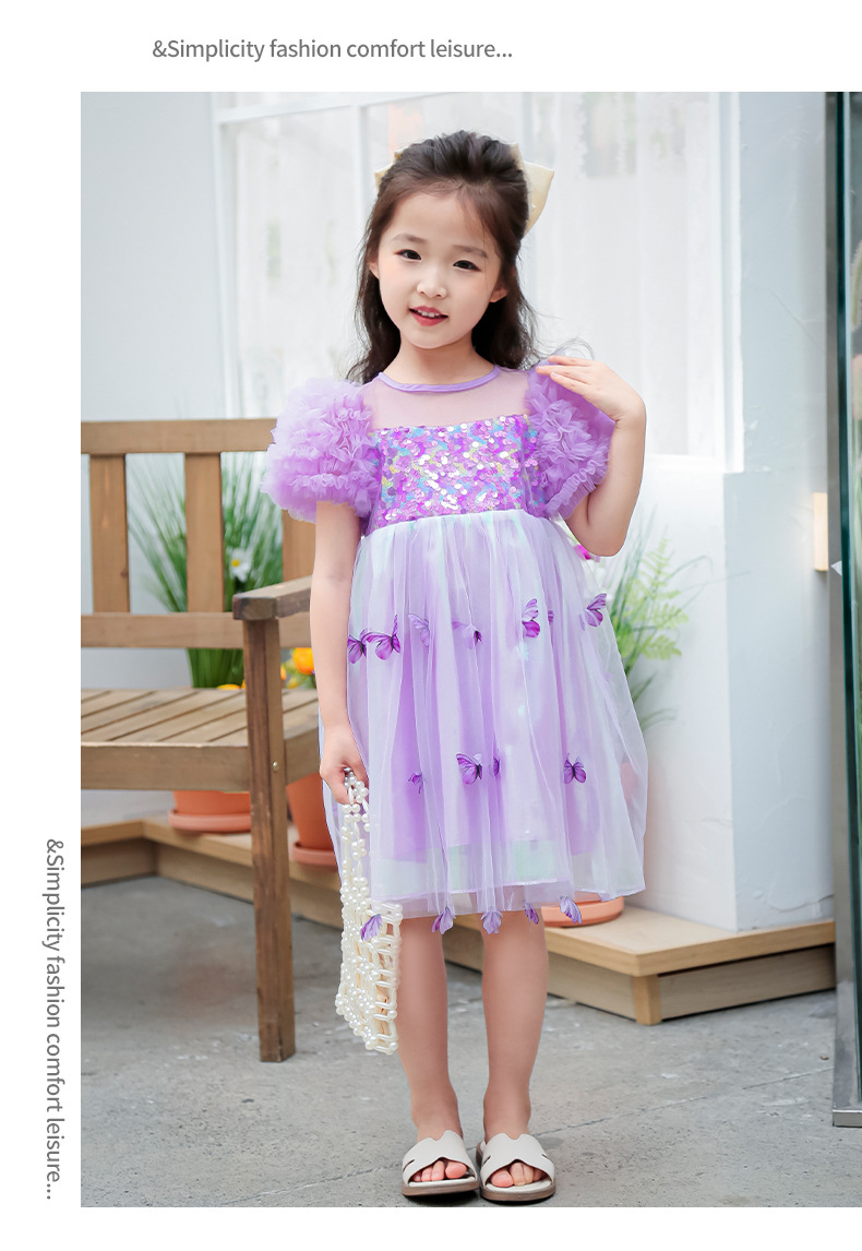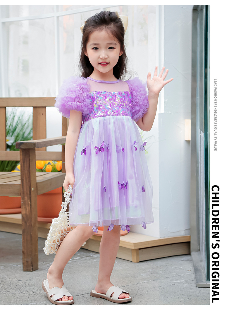 여자 드레스 여름 스타일 날개가 달린 공주 드레스 보라색 스커트 어린이 공연 드레스 어린이 날 공연 의상스토어 가기