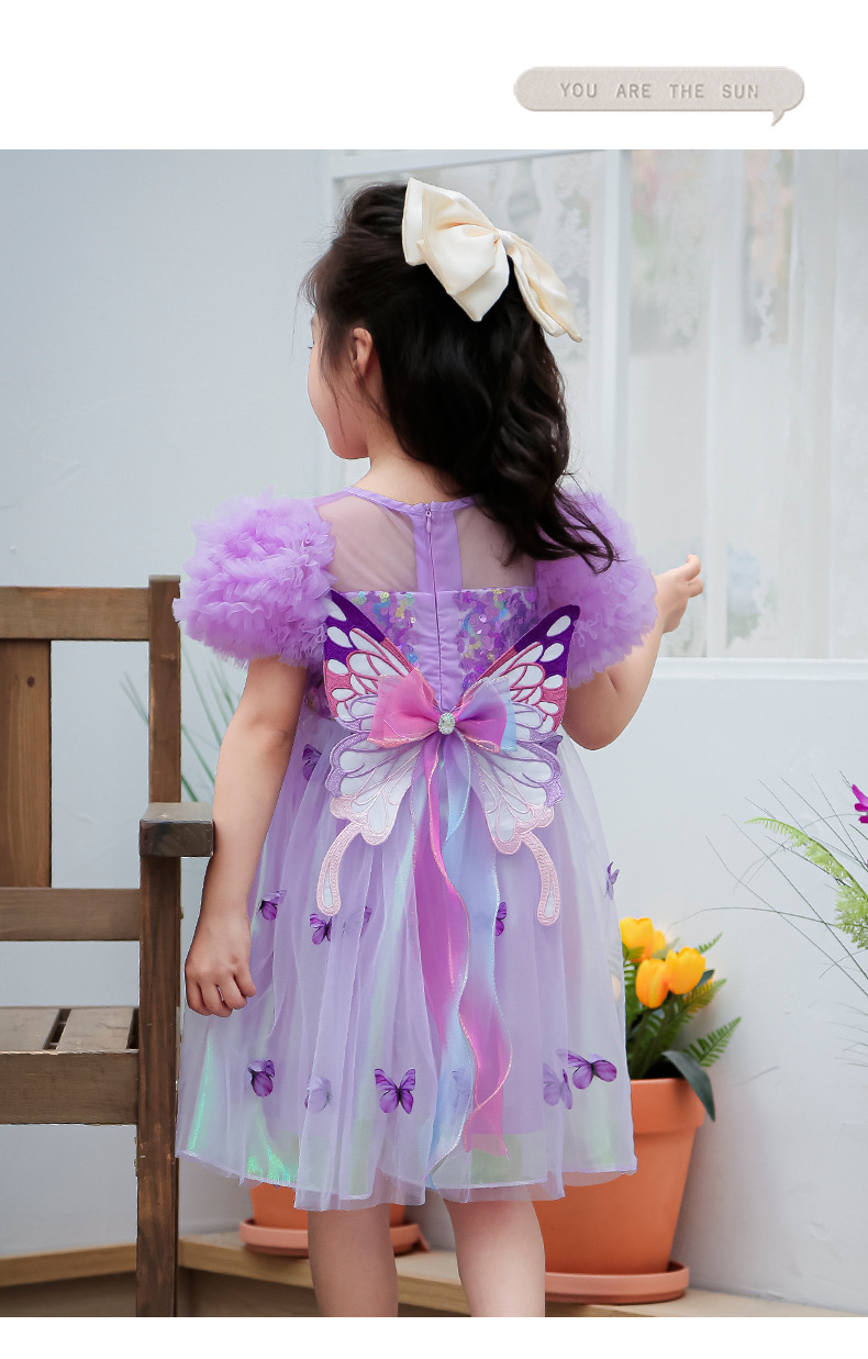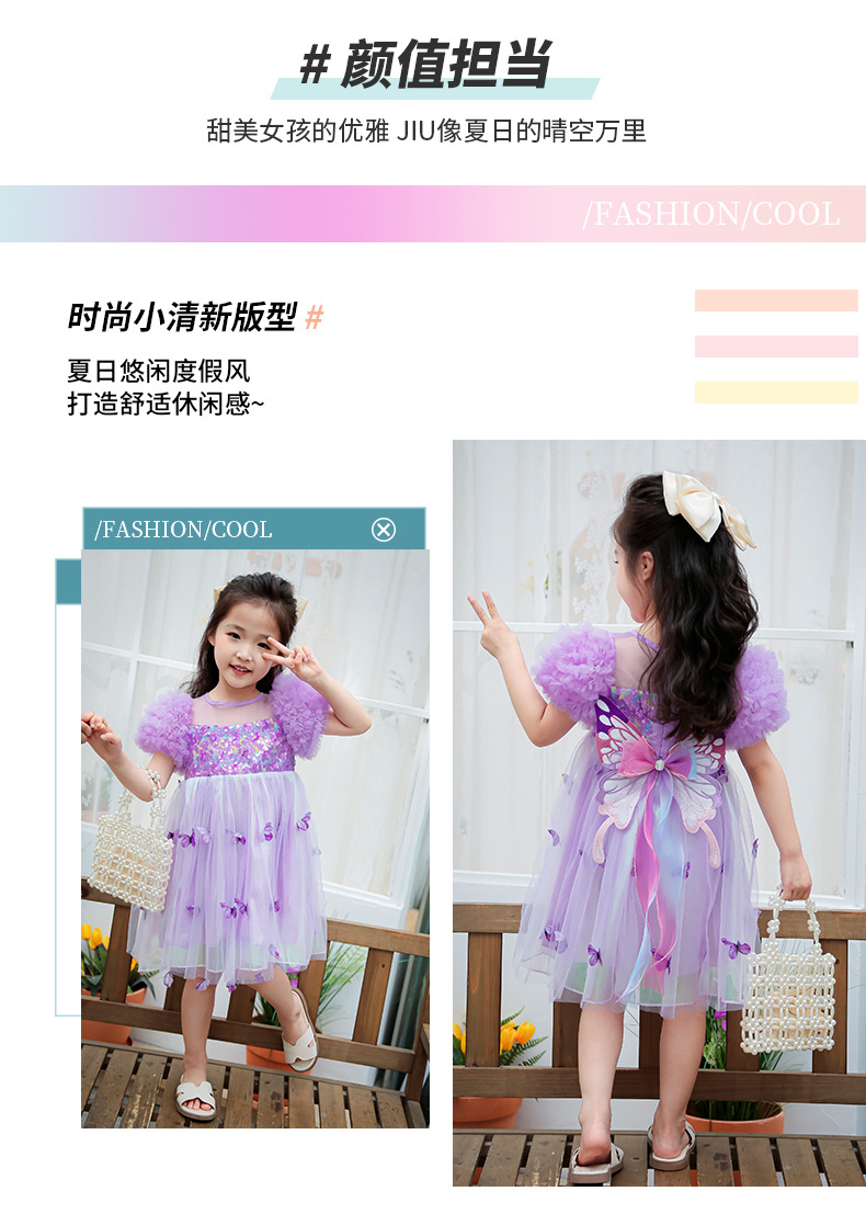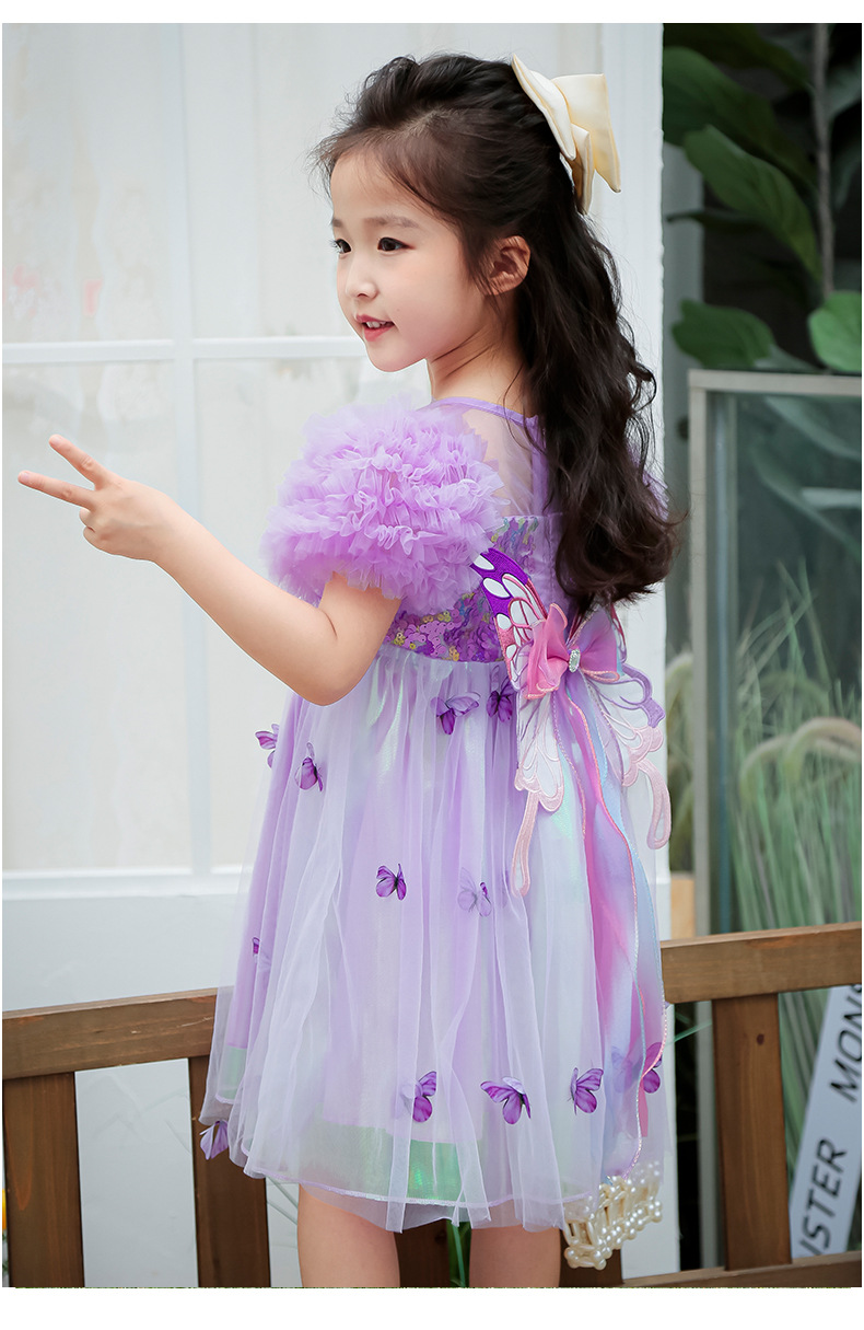 여자 드레스 여름 스타일 날개가 달린 공주 드레스 보라색 스커트 어린이 공연 드레스 어린이 날 공연 의상