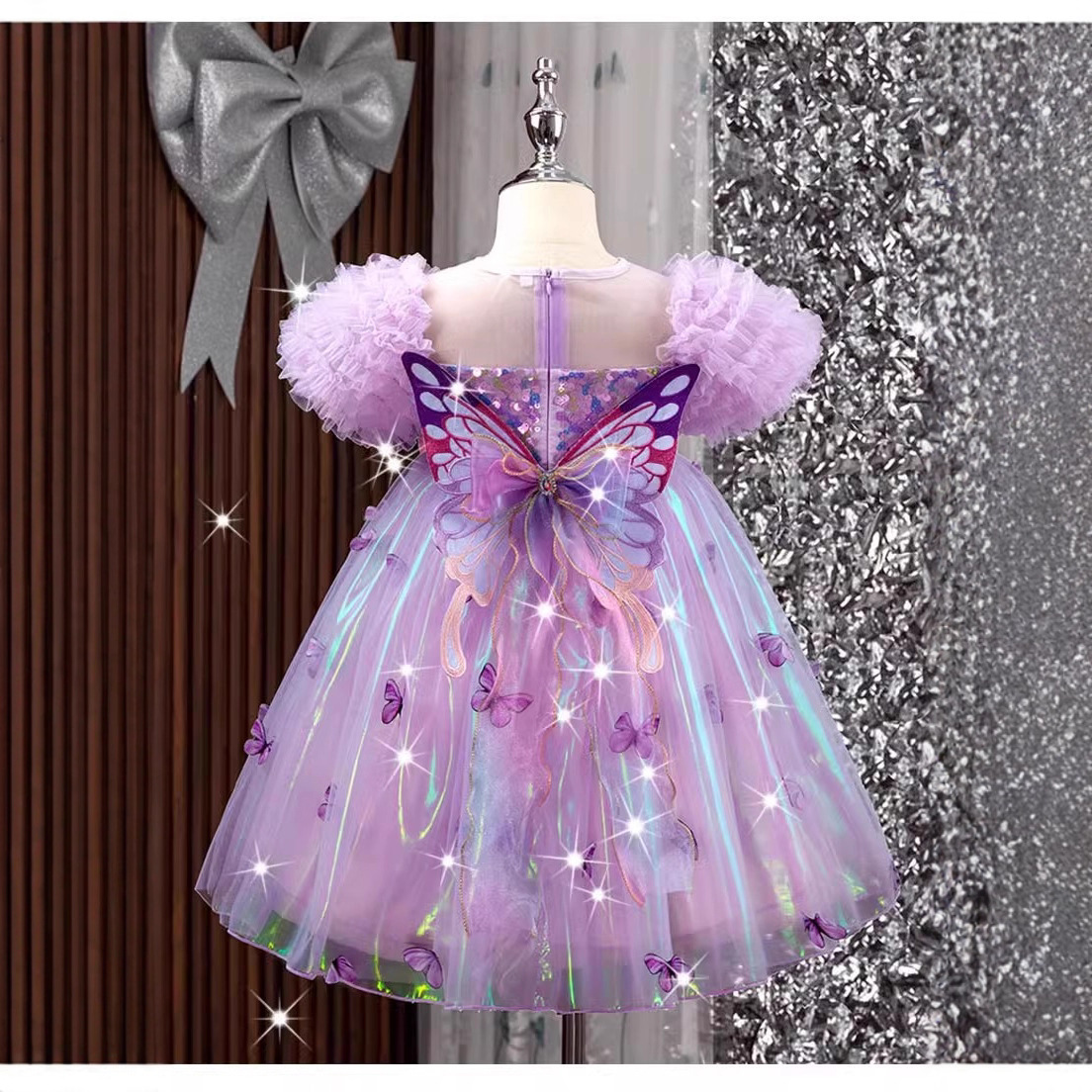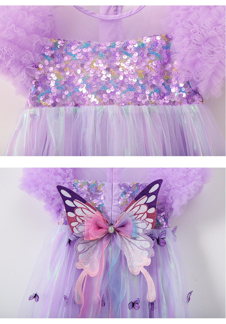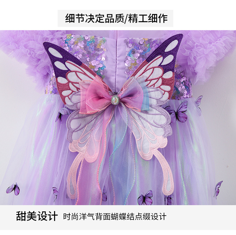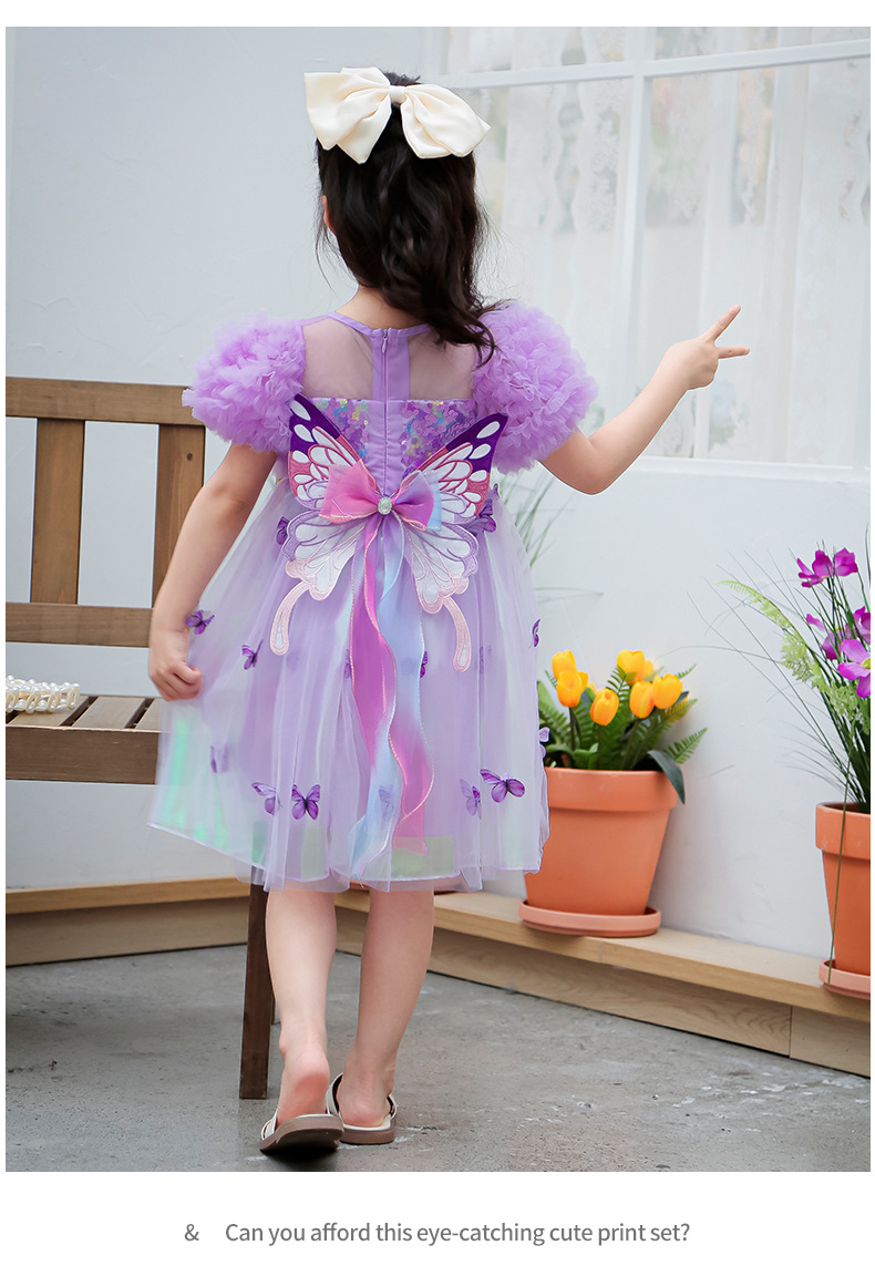 여자 드레스 여름 스타일 날개가 달린 공주 드레스 보라색 스커트 어린이 공연 드레스 어린이 날 공연 의상