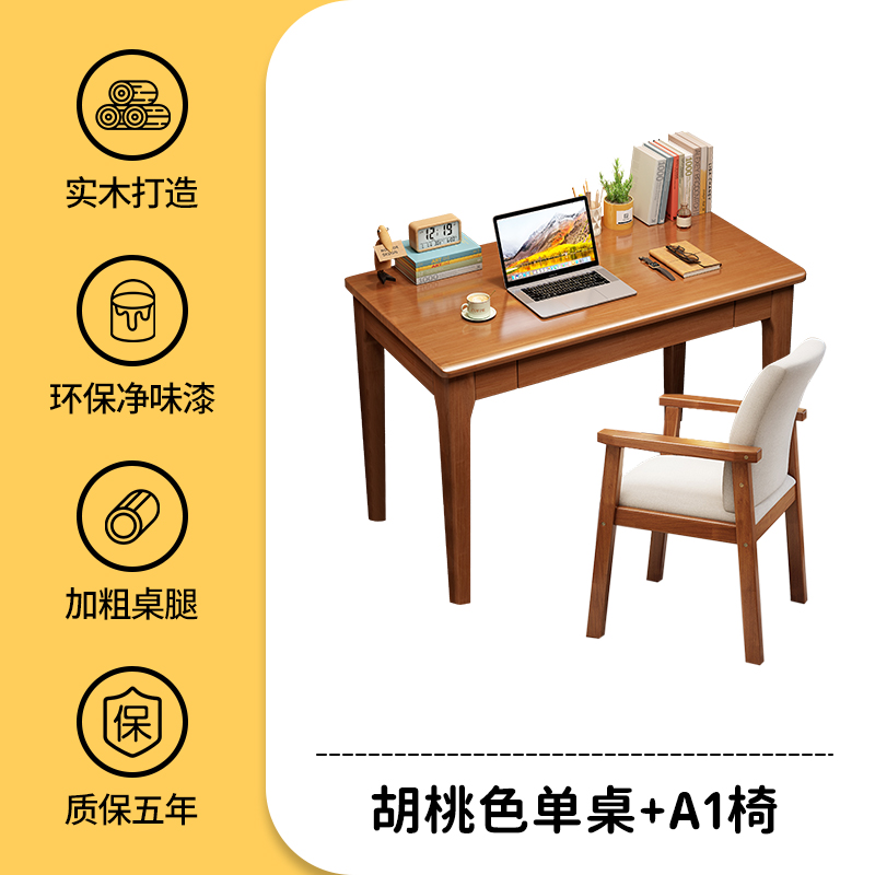 • 월넛 컬러 싱글 테이블 + 등받이 의자 [공부 및 사무용]