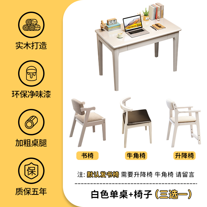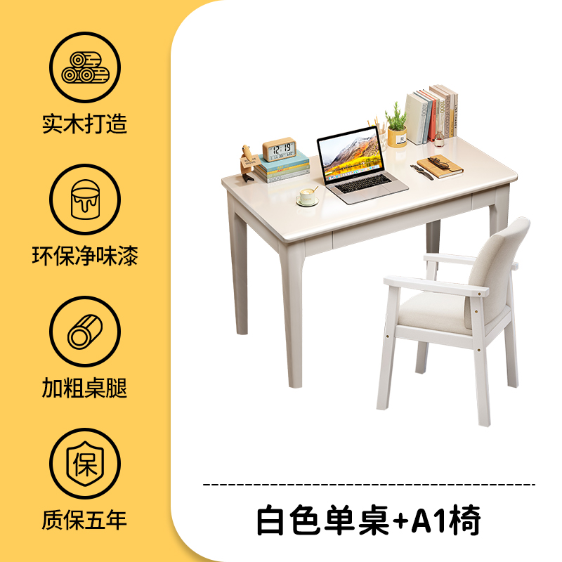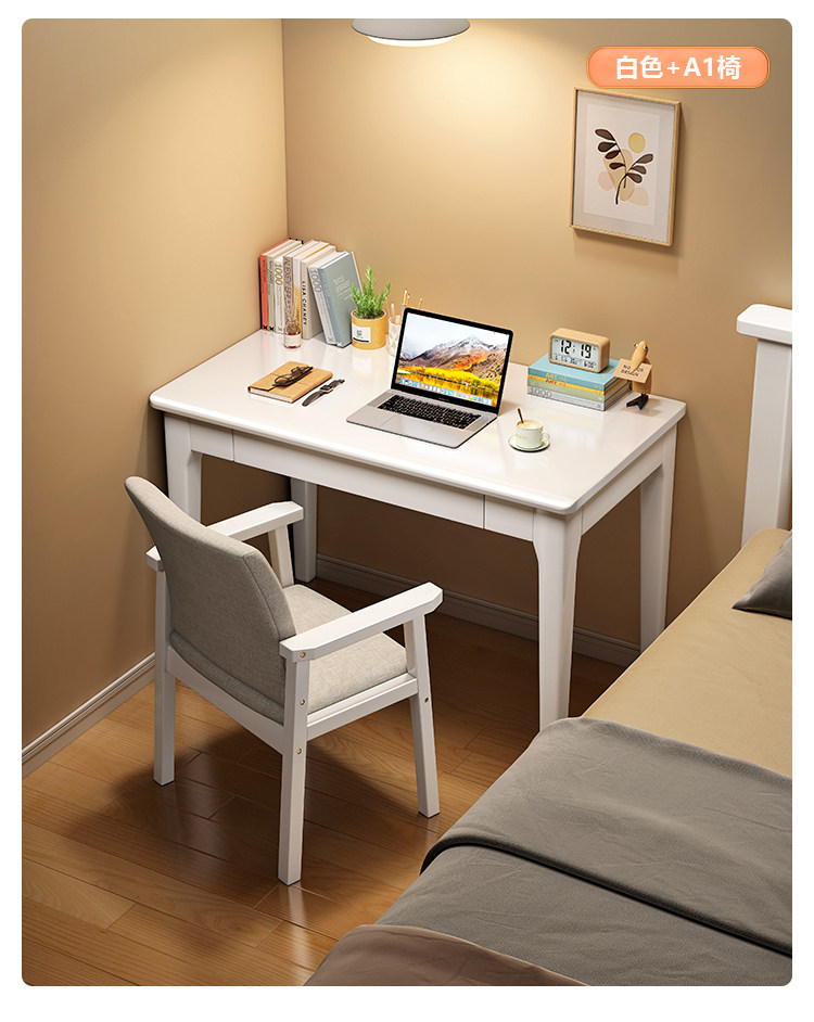 • 흰색 싱글 테이블 + 등받이 의자 [공부 및 사무실 겸용]