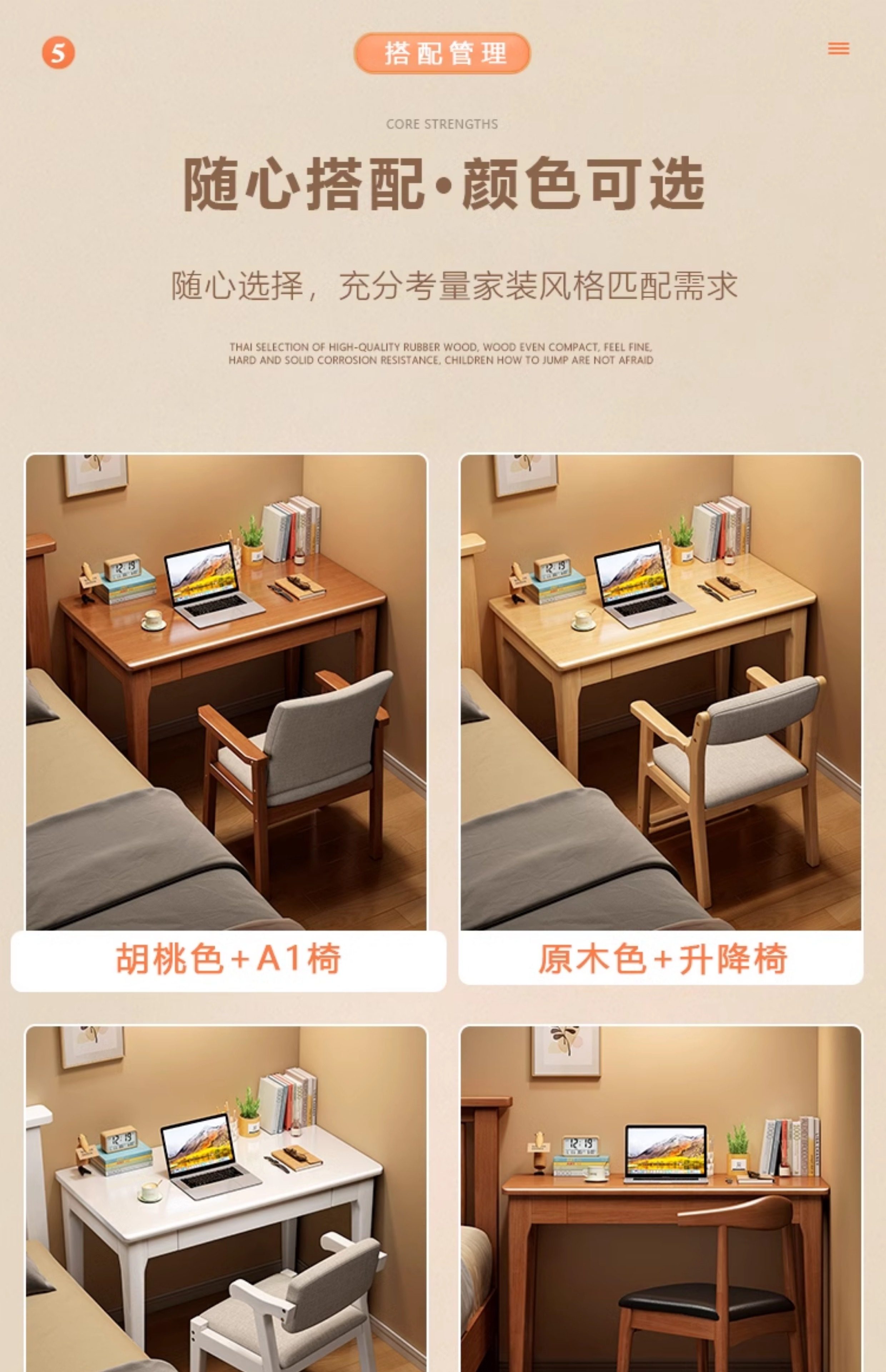 • 원목 컬러 싱글 테이블 + 책상 의자 [의자 스타일 참고해주세요]