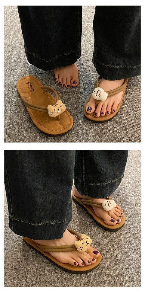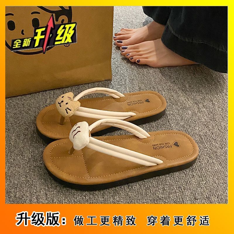 여성을위한 홈 캐주얼 귀여운 헤링본 샌들 2025 여름 다목적 부드러운 바닥 해변 플랫 미끄럼 방지 캐주얼