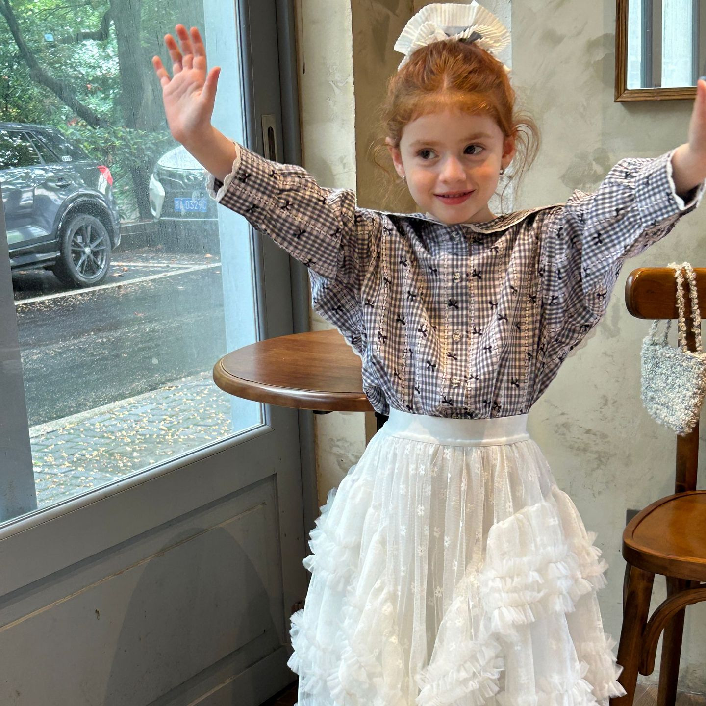 2025 새로운 가을 패션 부드럽고 우아한 스퀘어 칼라 라펠 체크 무늬 보우 탑스토어 가기