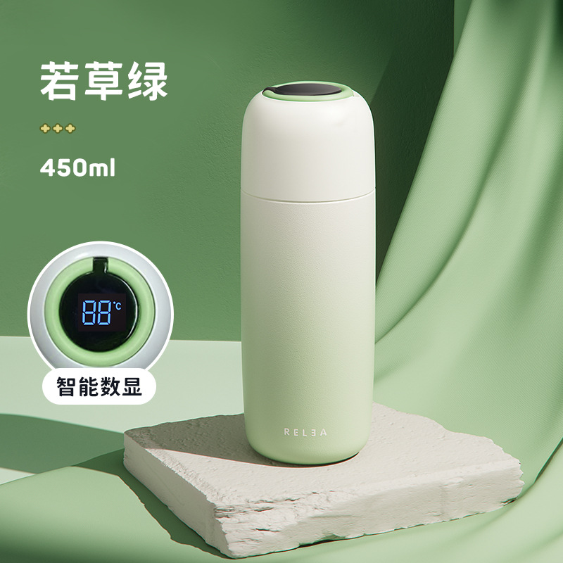 • Ruocao 녹색 450ml-2023 새로운 스마트 디지털 디스플레이 컵 뚜껑 ✓ ✓