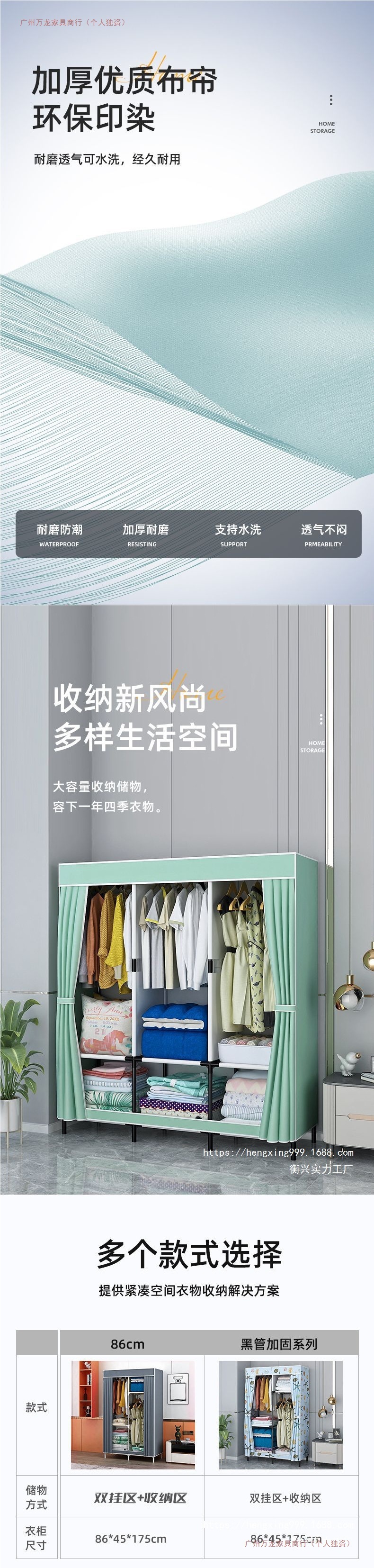 가정용 침실용 간이 옷장, 전체 철제 프레임, 1인용 기숙사 조립식 천 옷장, 임대실 수납, 바닥 옷장
