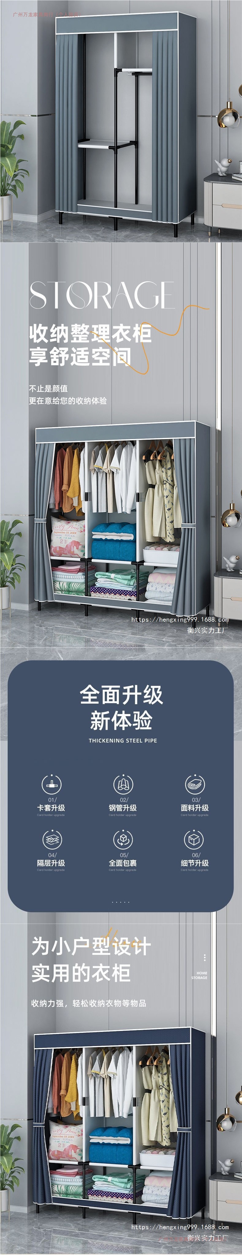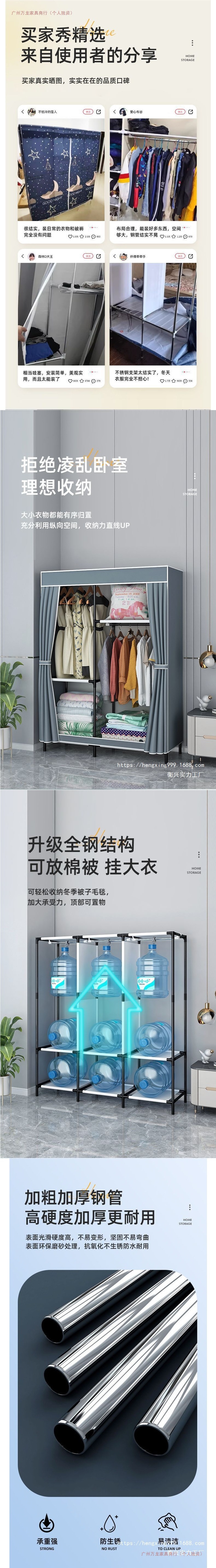 가정용 침실용 간이 옷장, 전체 철제 프레임, 1인용 기숙사 조립식 천 옷장, 임대실 수납, 바닥 옷장스토어 가기