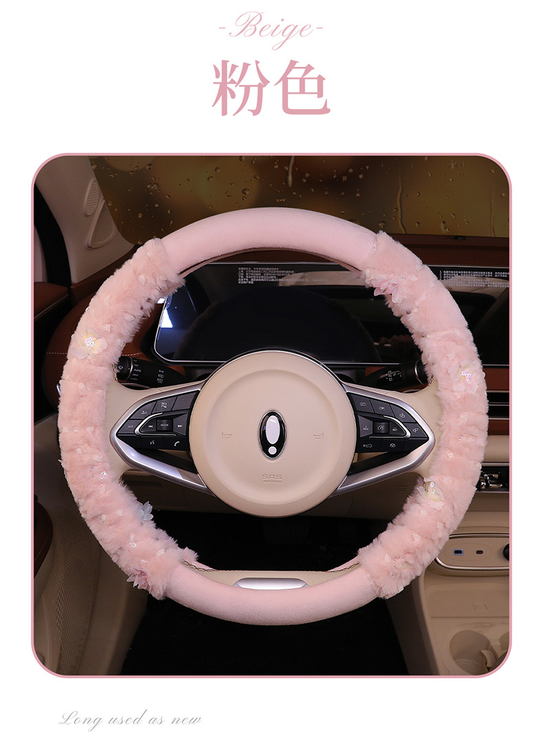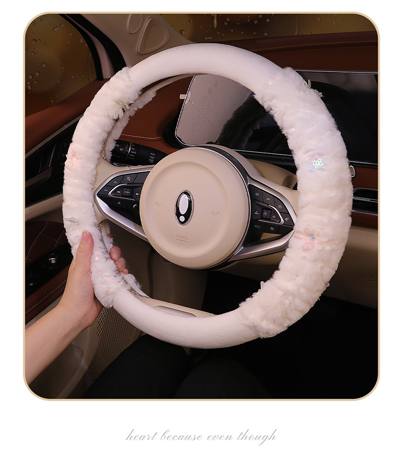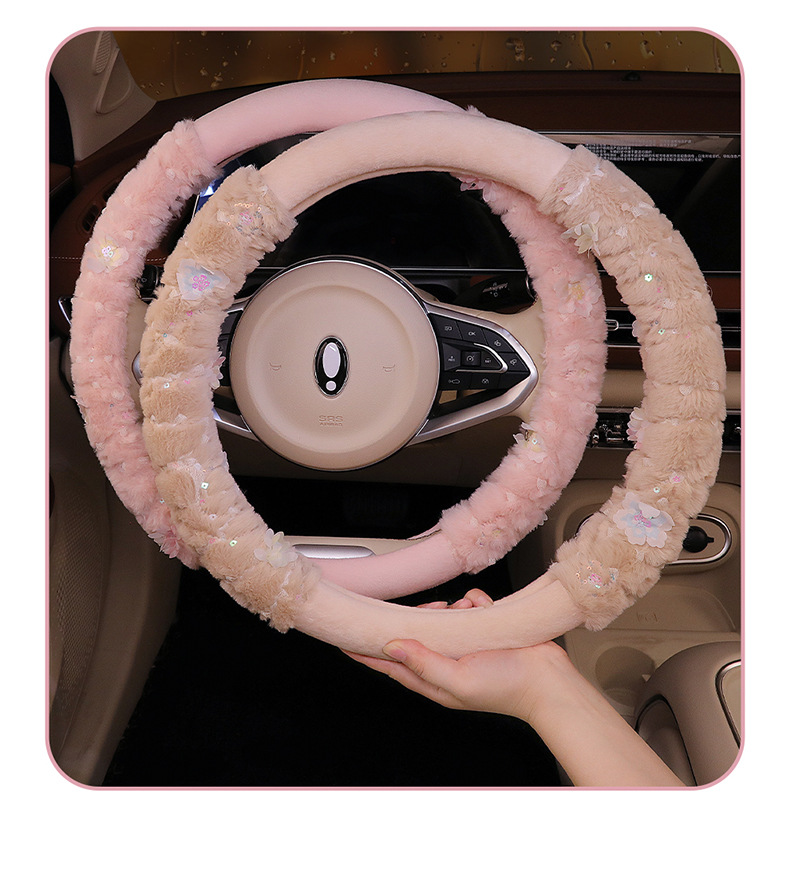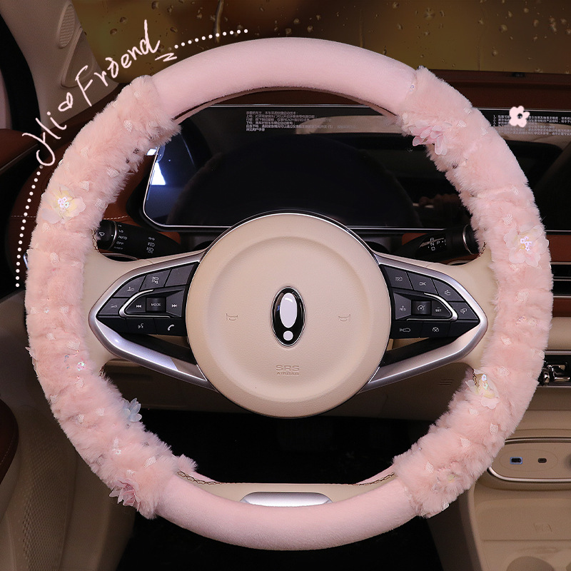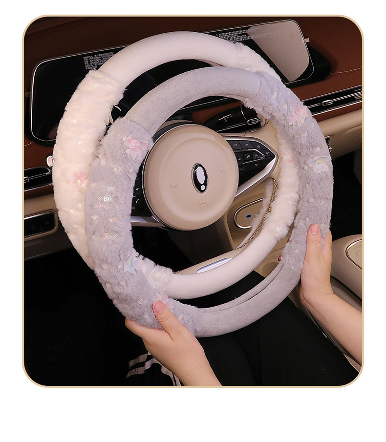 겨울 플러시 스티어링 휠 커버, 짧은 벨벳 스티어링 휠 커버, 여성 인터넷 연예인 귀여운 만화 자동차 핸들 커버, 미끄럼 방지 및 따뜻함