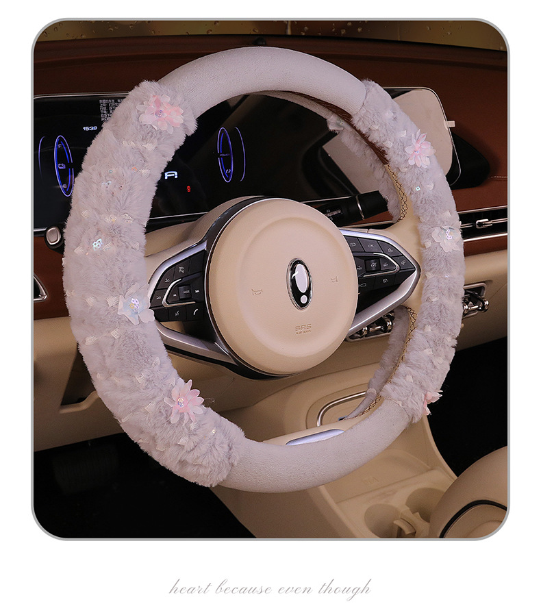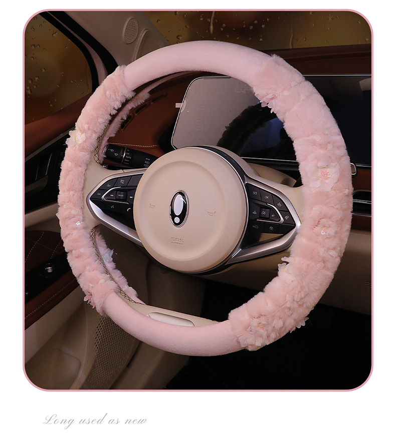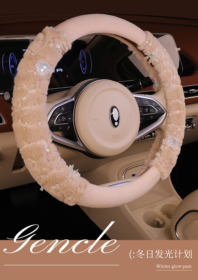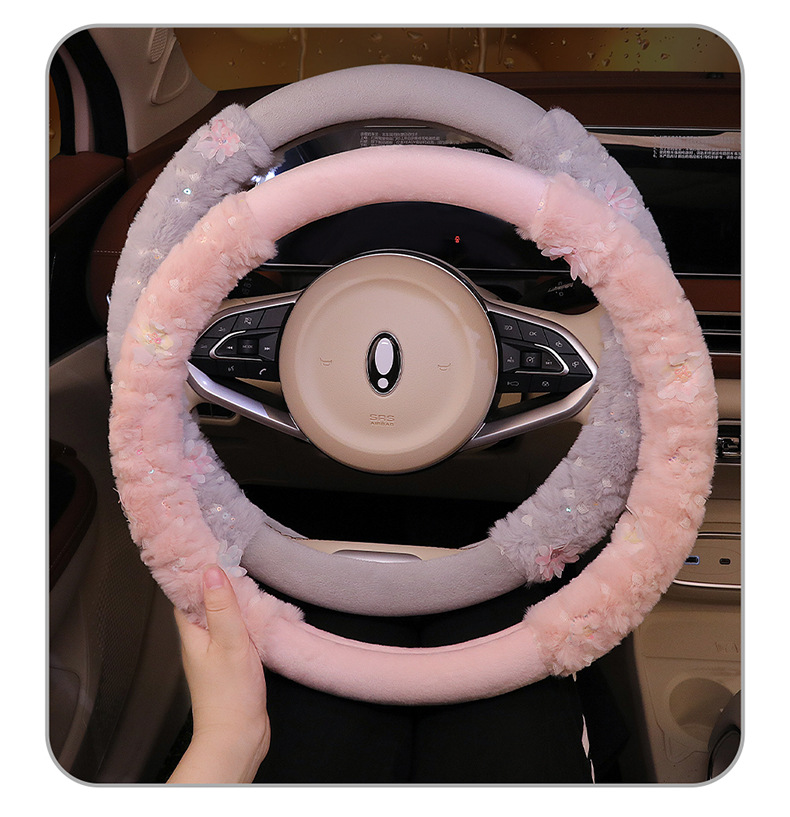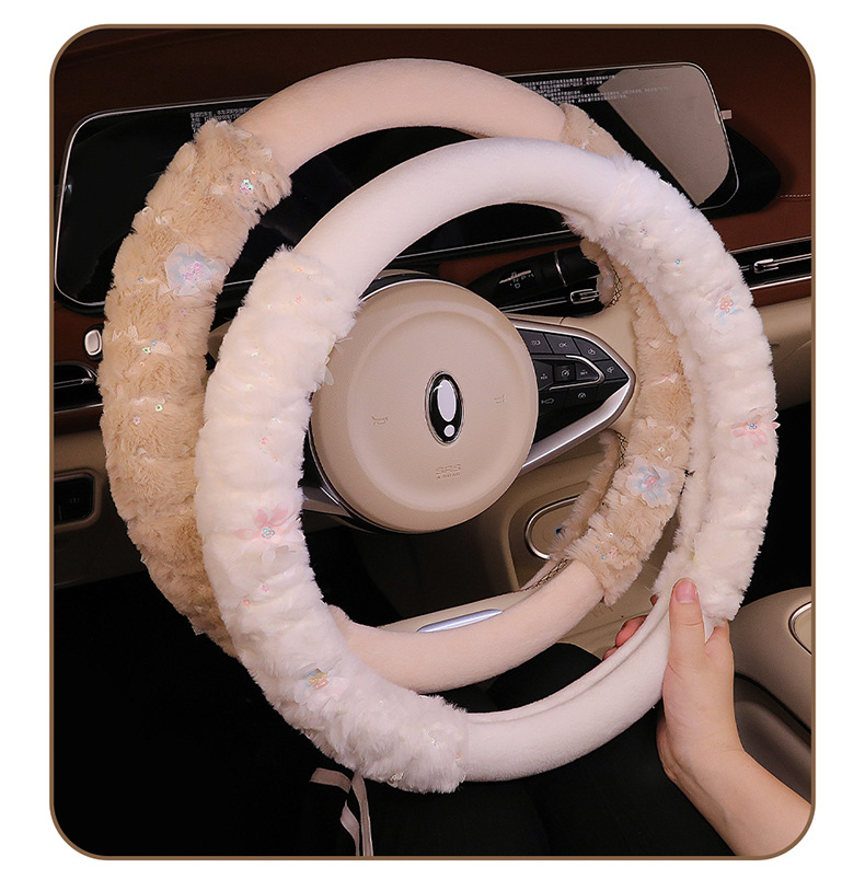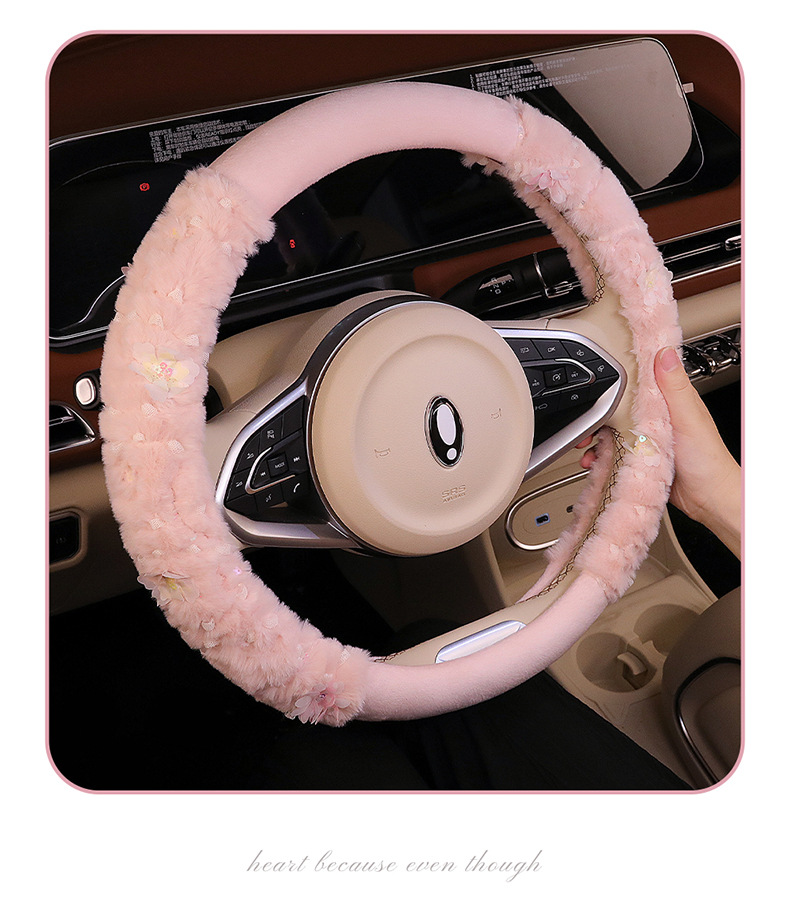 겨울 플러시 스티어링 휠 커버, 짧은 벨벳 스티어링 휠 커버, 여성 인터넷 연예인 귀여운 만화 자동차 핸들 커버, 미끄럼 방지 및 따뜻함