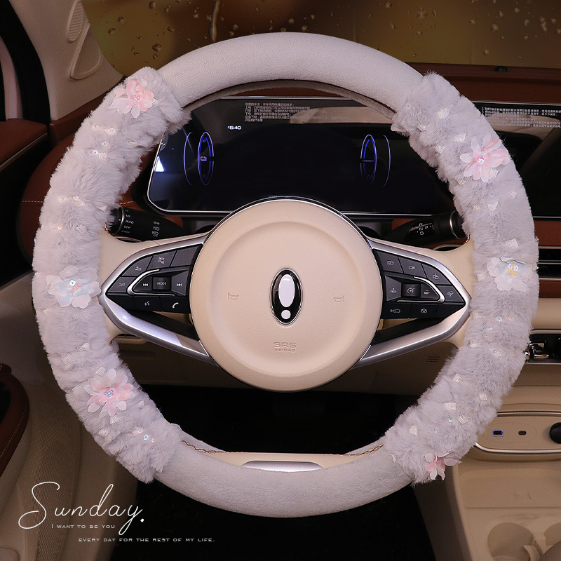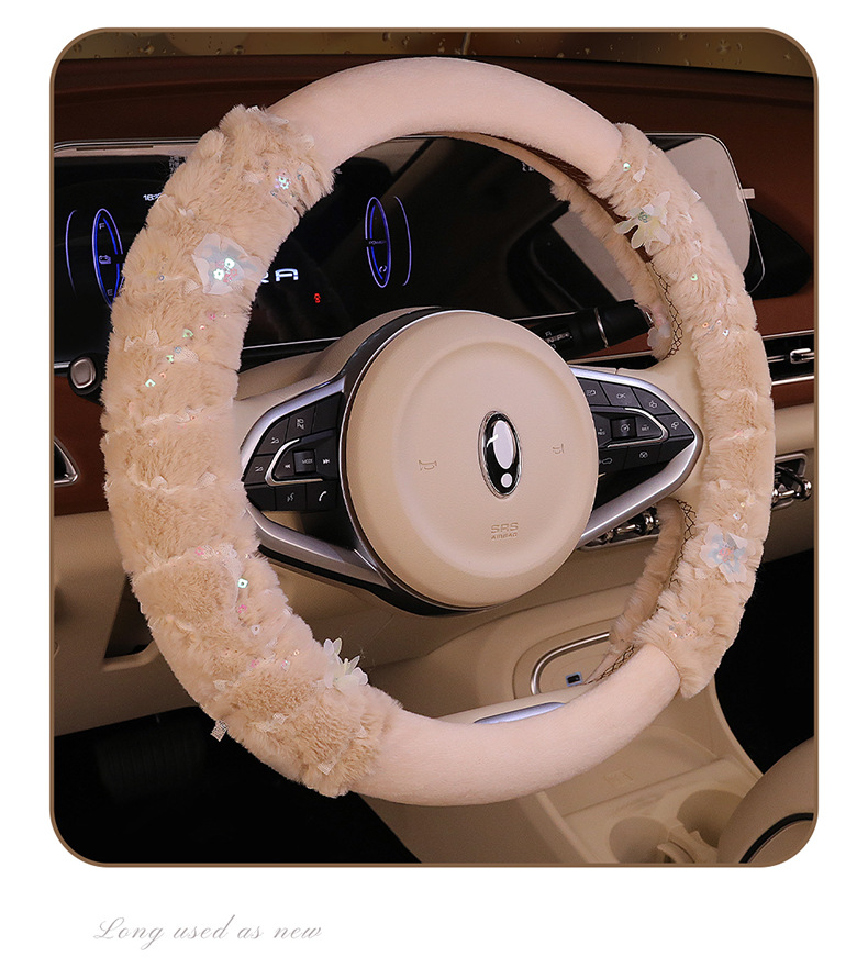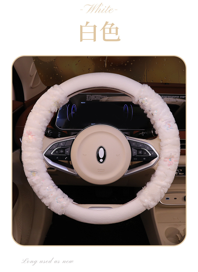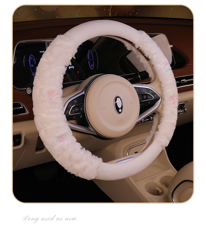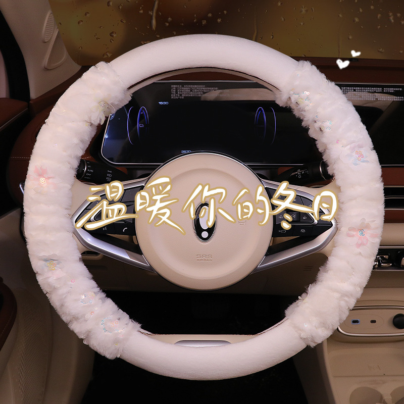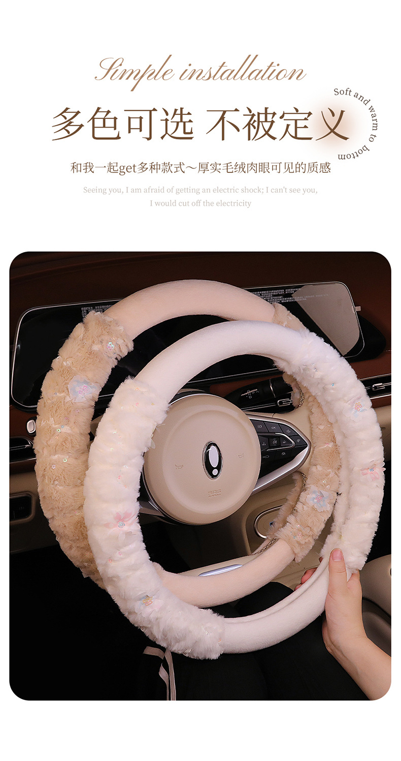 겨울 플러시 스티어링 휠 커버, 짧은 벨벳 스티어링 휠 커버, 여성 인터넷 연예인 귀여운 만화 자동차 핸들 커버, 미끄럼 방지 및 따뜻함스토어 가기