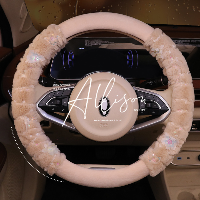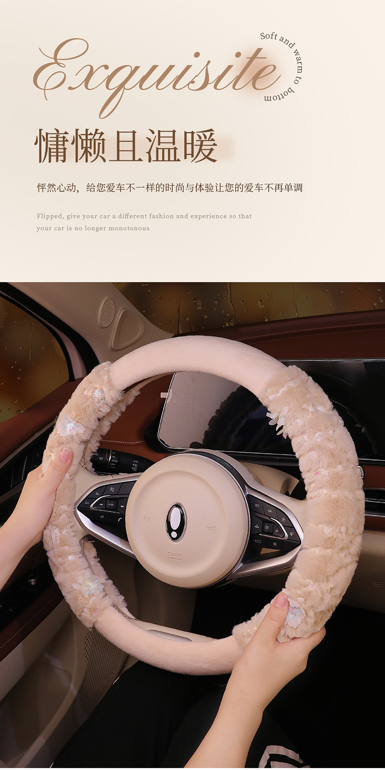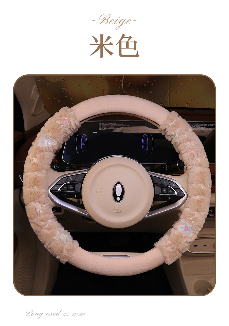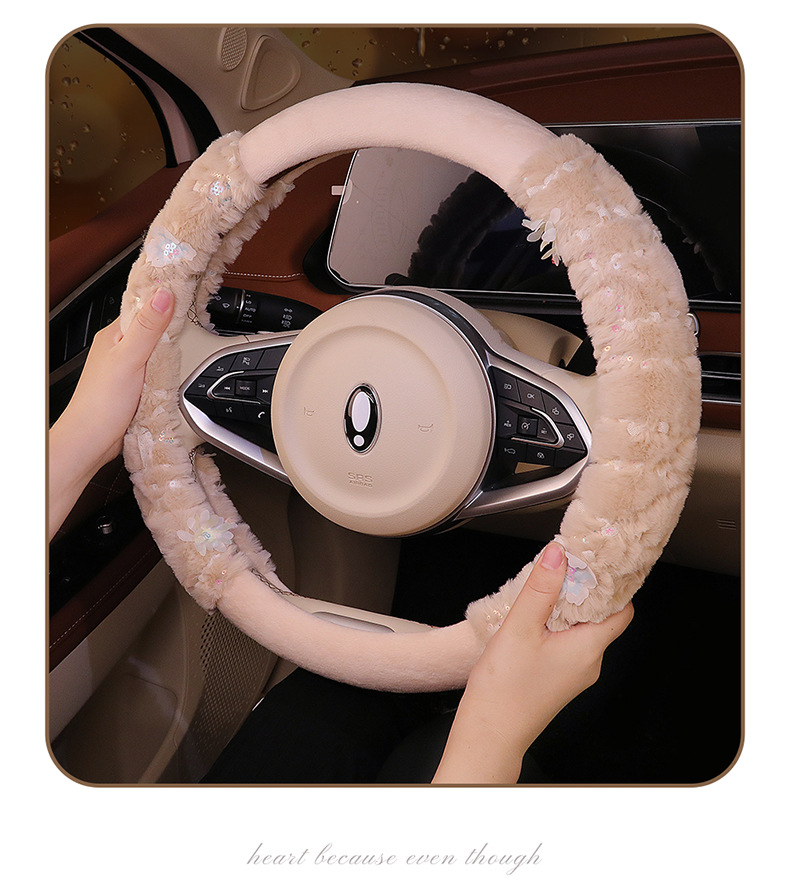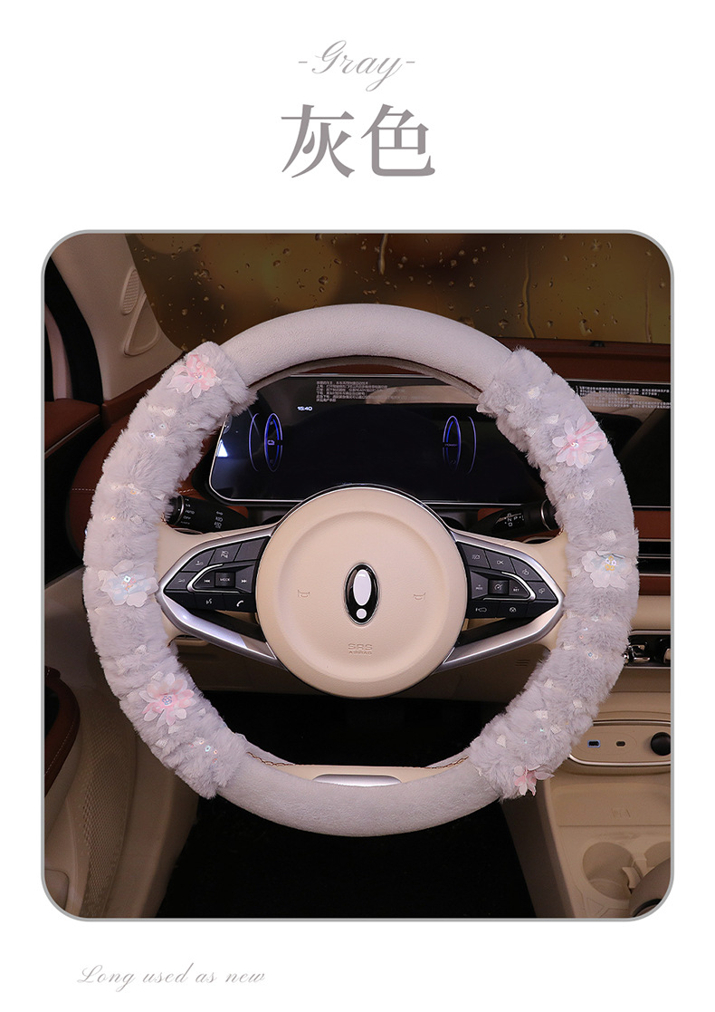 겨울 플러시 스티어링 휠 커버, 짧은 벨벳 스티어링 휠 커버, 여성 인터넷 연예인 귀여운 만화 자동차 핸들 커버, 미끄럼 방지 및 따뜻함스토어 가기