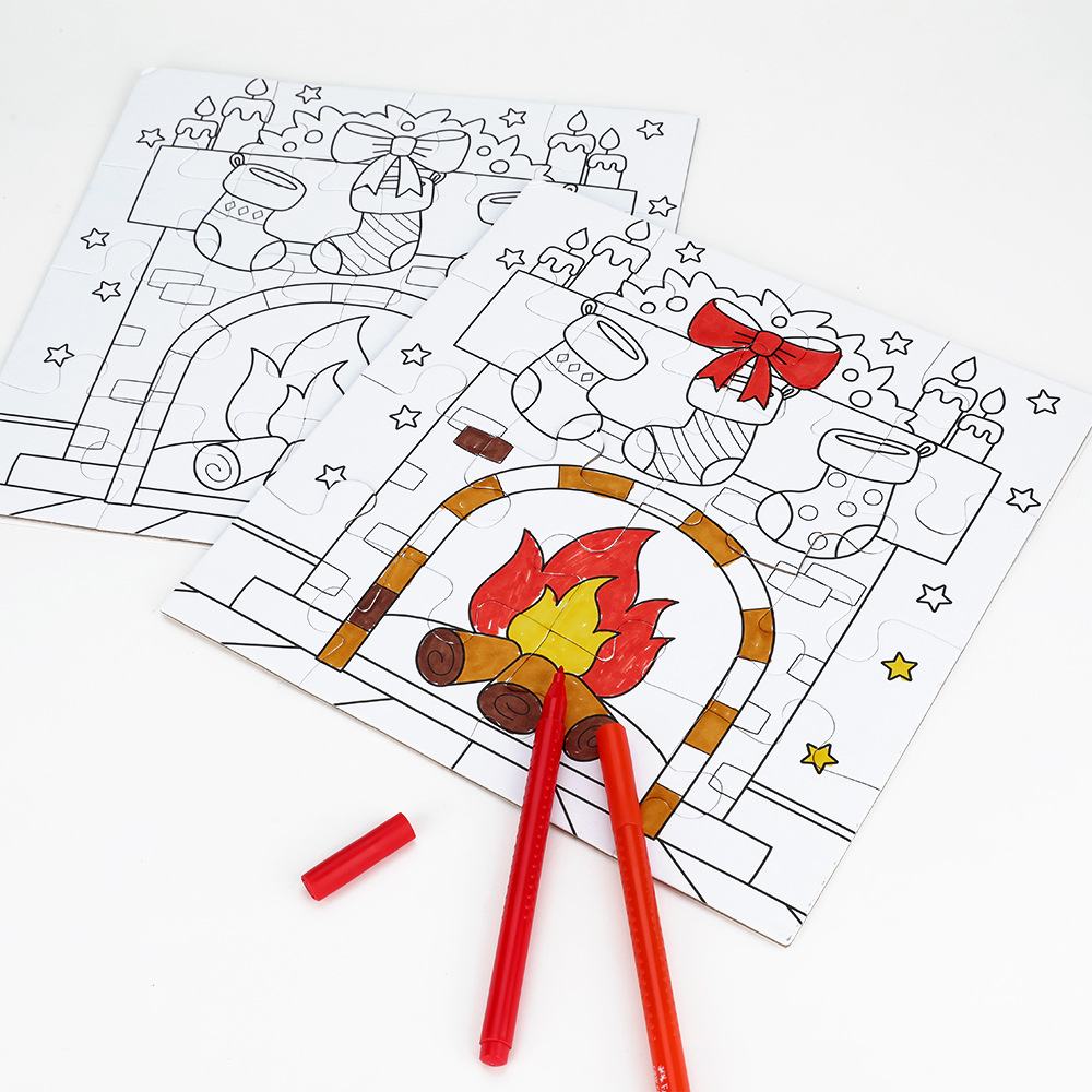 어린이 교육용 장난감 종이 색칠 퍼즐 두꺼운 판지 크리스마스 색칠 퍼즐스토어 가기