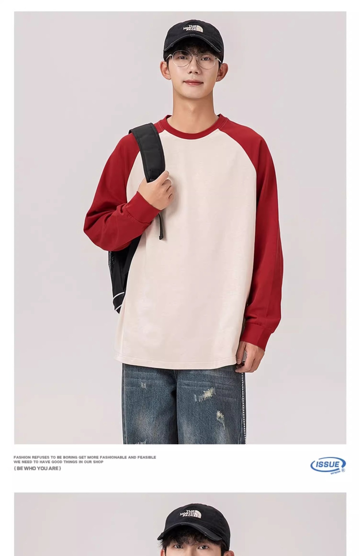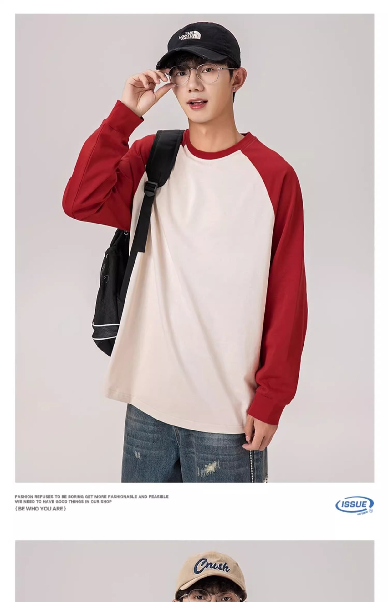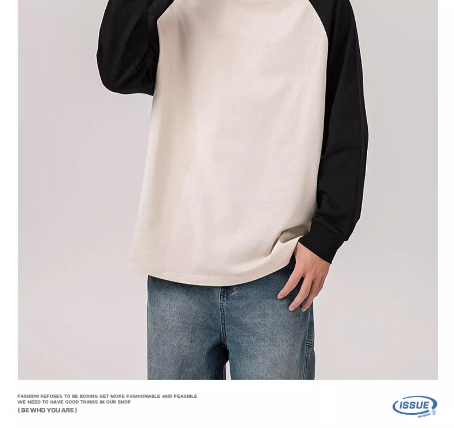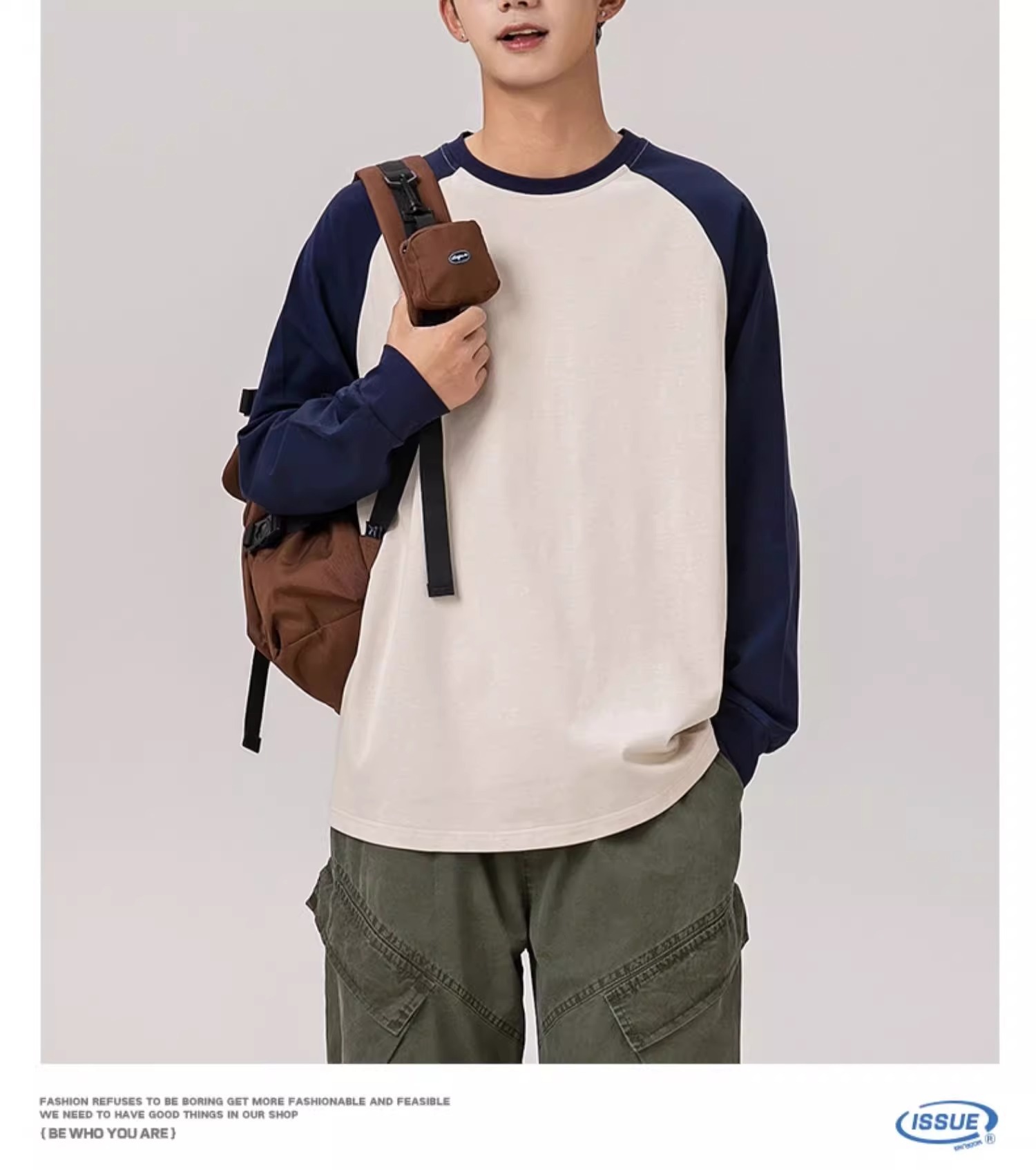 WASSUP 래글런 슬리브 t 대비 색 긴팔 남성 봄, 가을 2025 새로운 청소년 루즈 캐주얼 티셔츠 바닥 셔츠스토어 가기