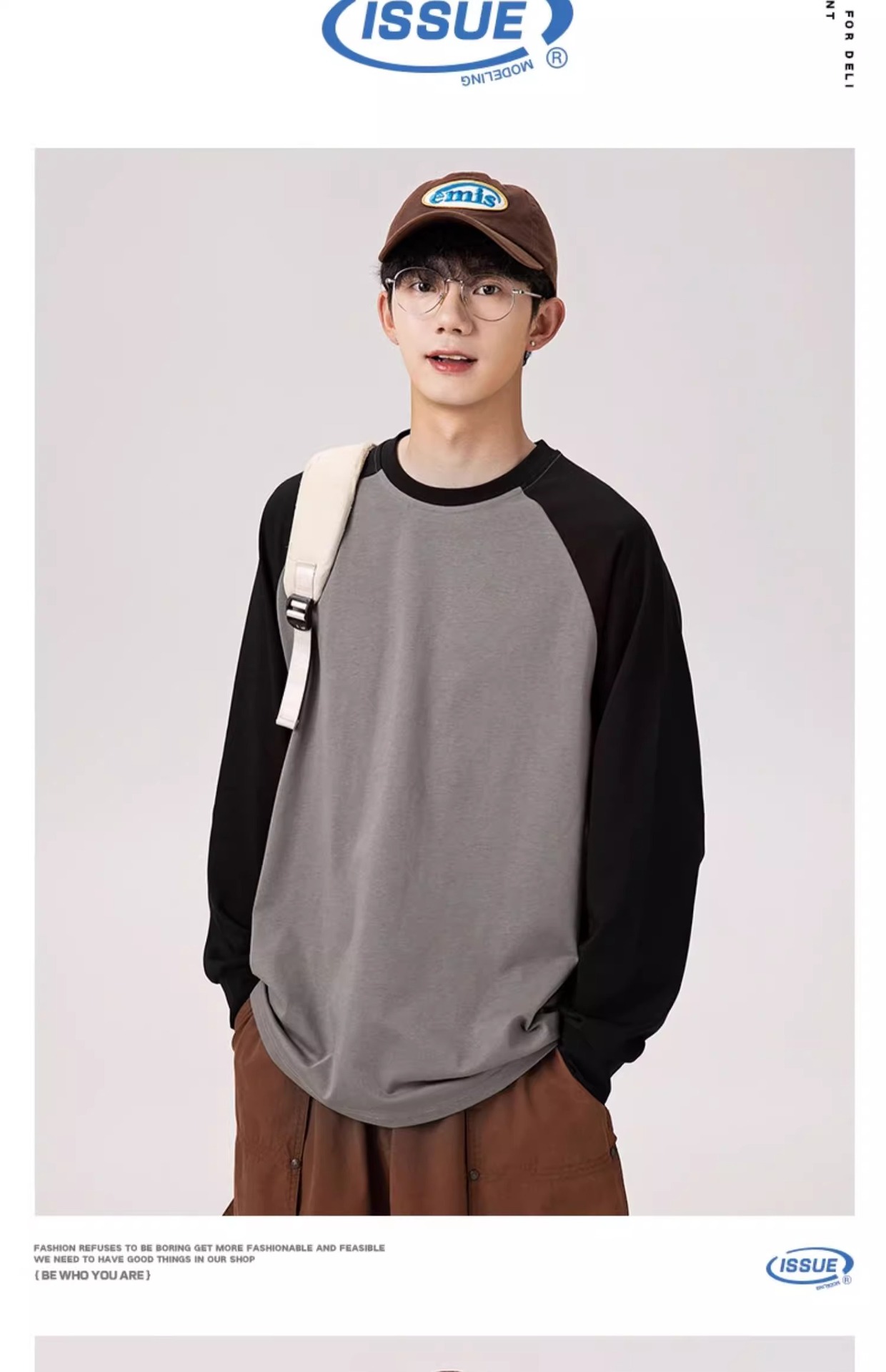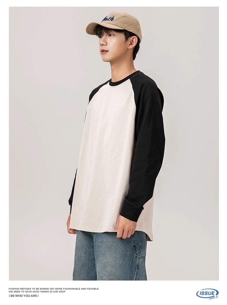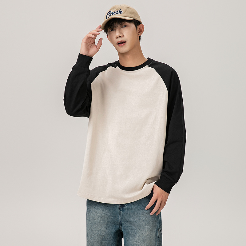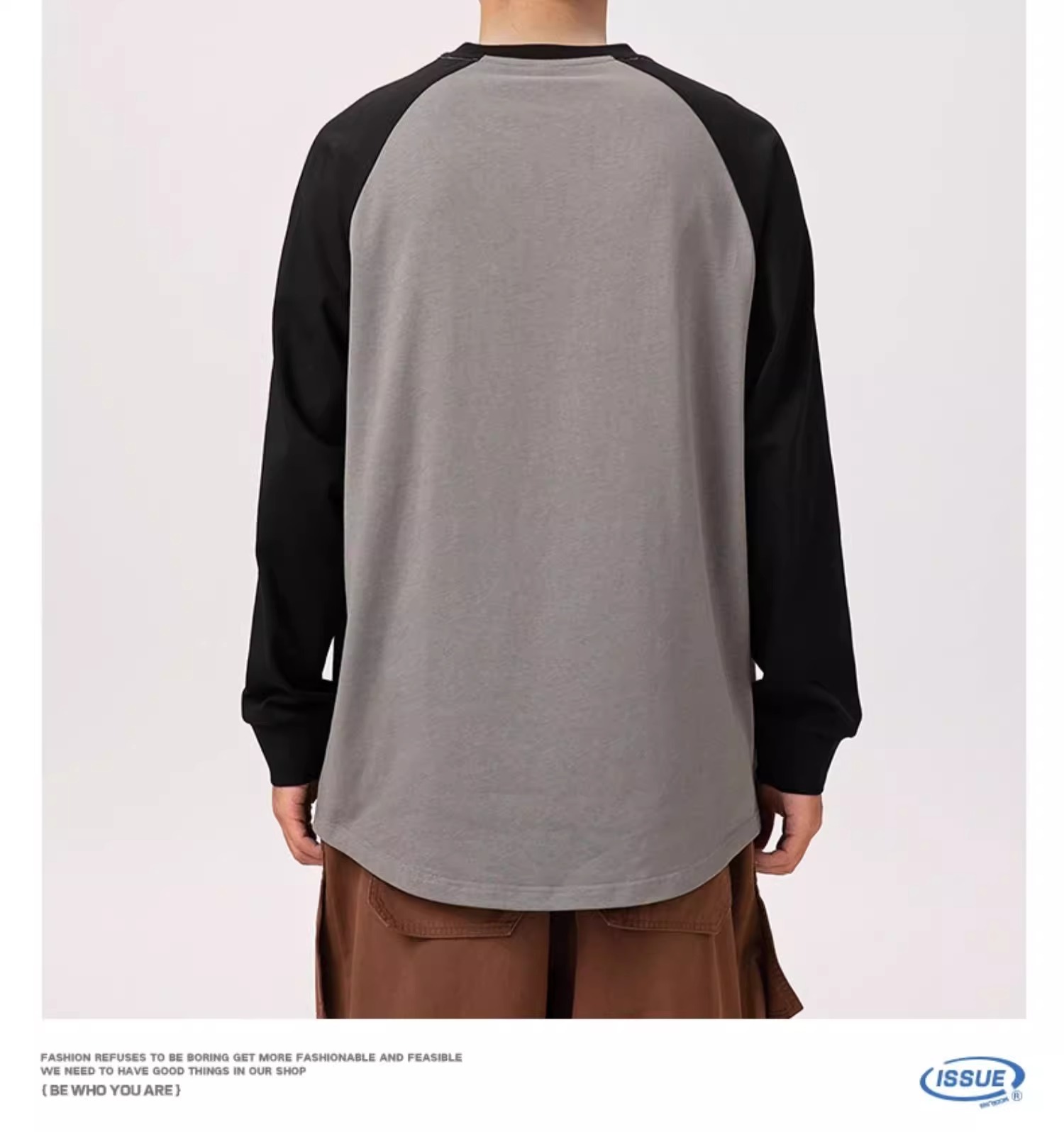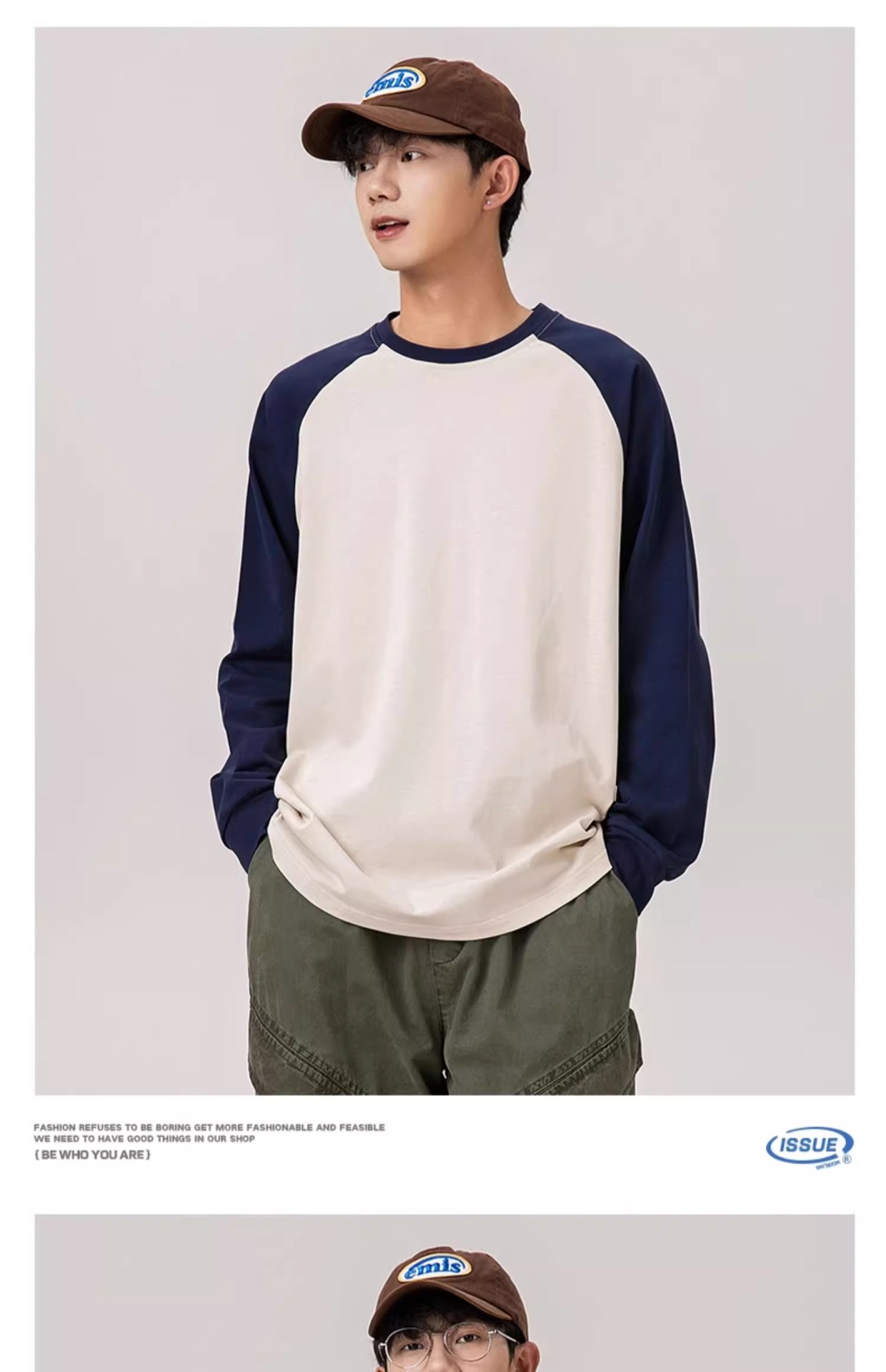 WASSUP 래글런 슬리브 t 대비 색 긴팔 남성 봄, 가을 2025 새로운 청소년 루즈 캐주얼 티셔츠 바닥 셔츠스토어 가기