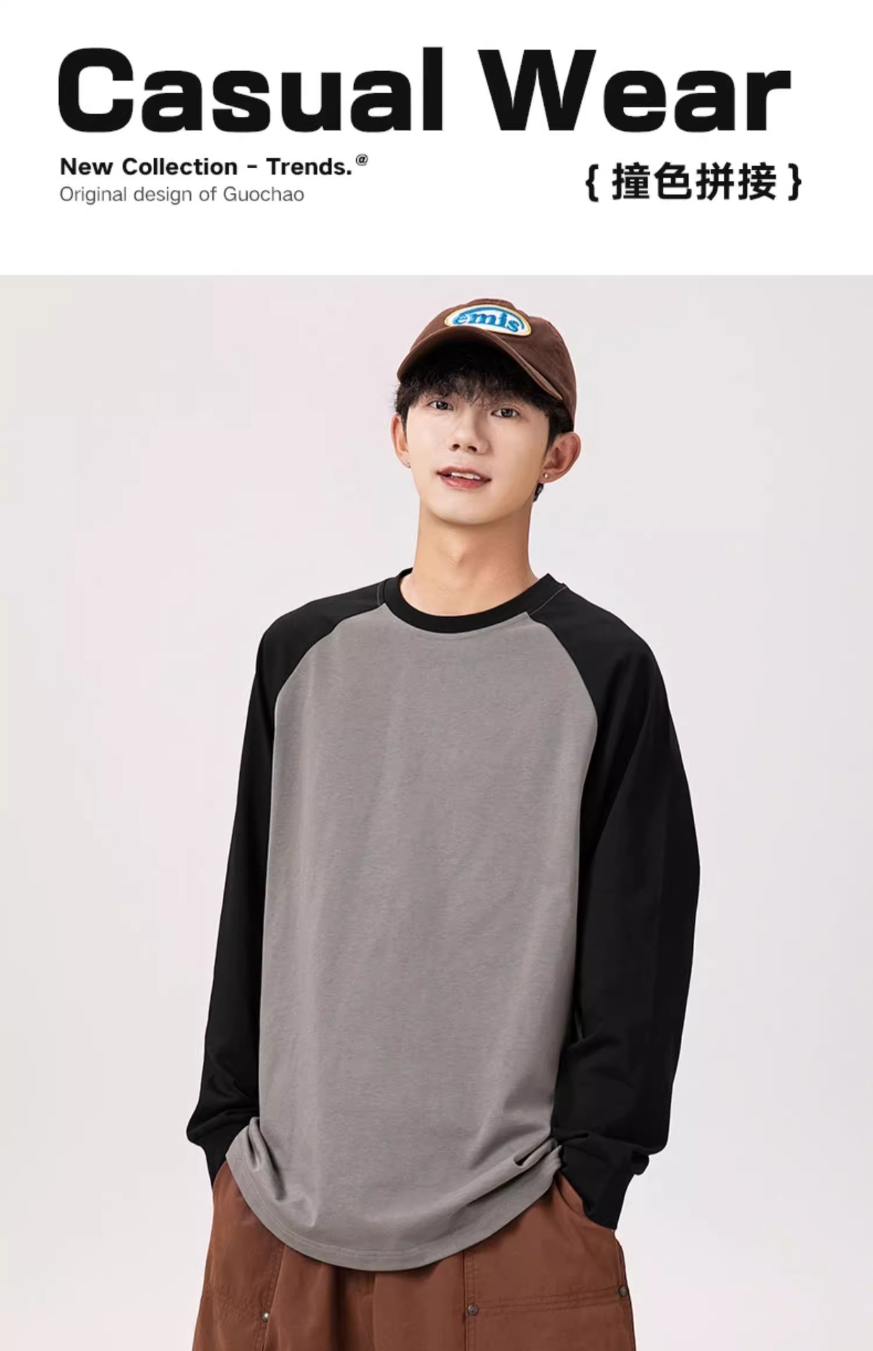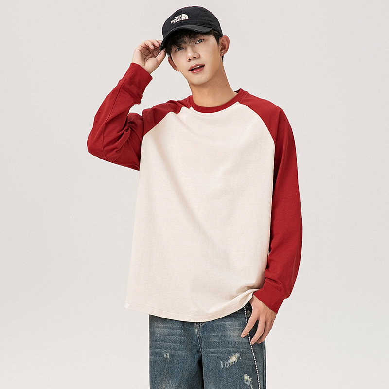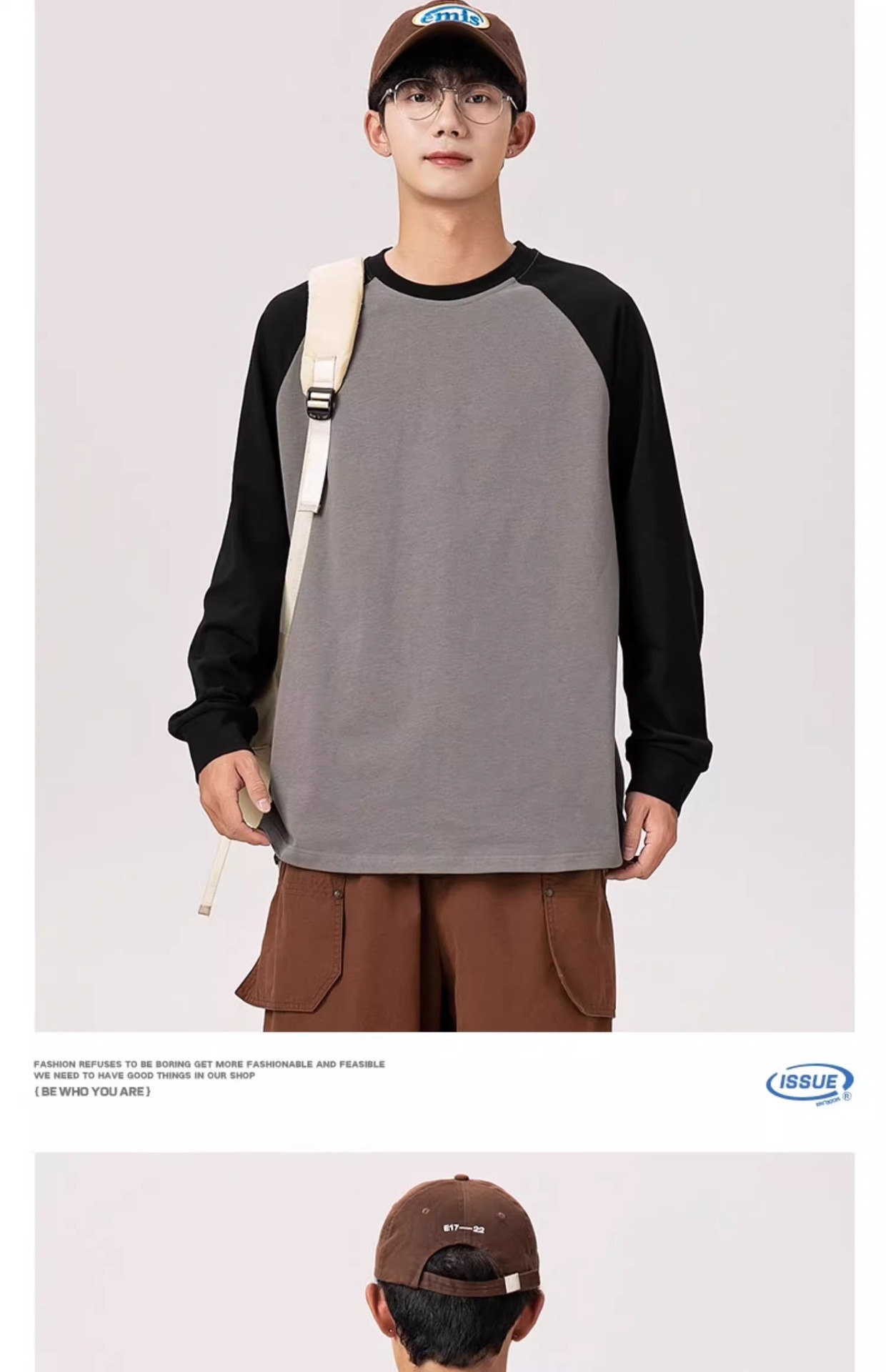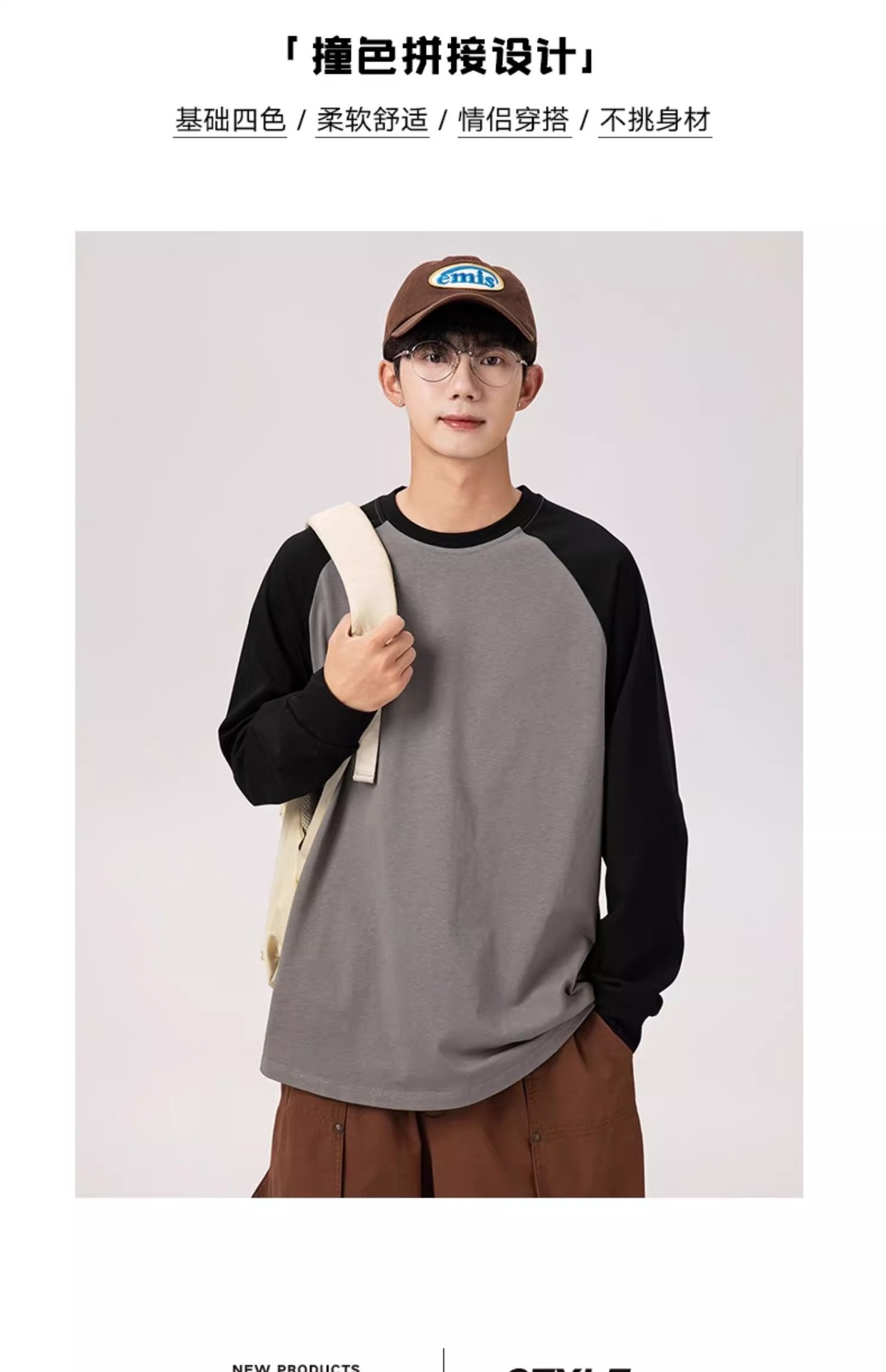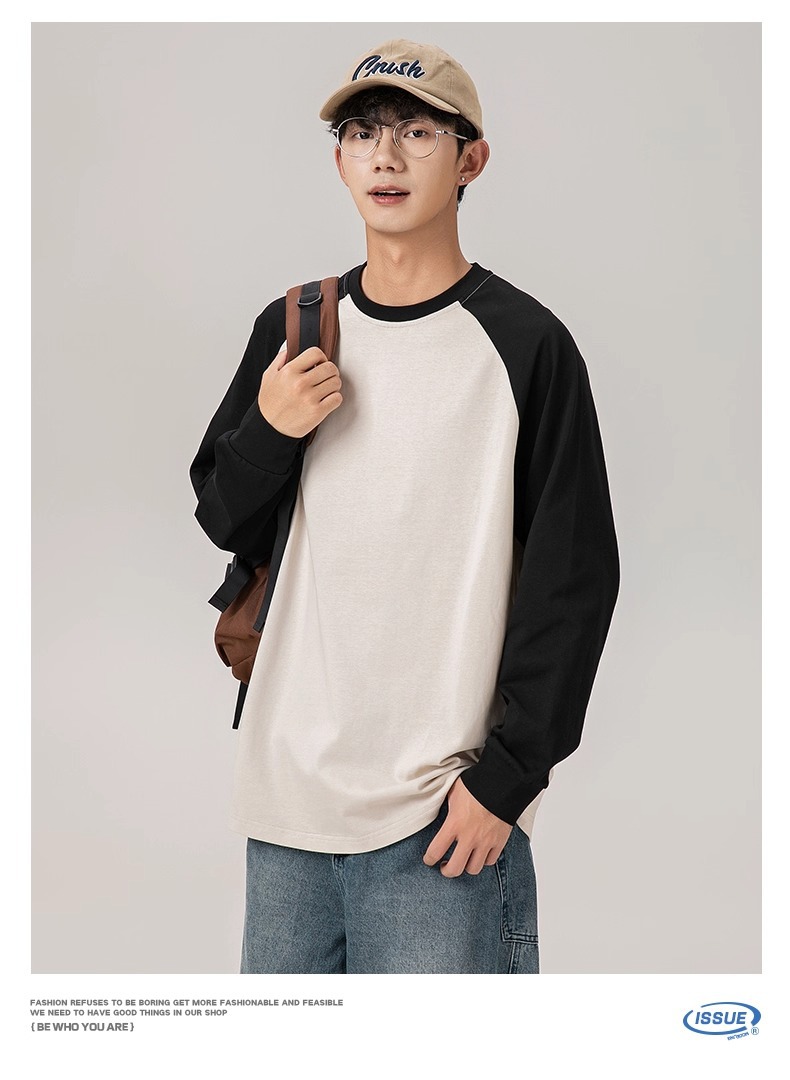 WASSUP 래글런 슬리브 t 대비 색 긴팔 남성 봄, 가을 2025 새로운 청소년 루즈 캐주얼 티셔츠 바닥 셔츠스토어 가기