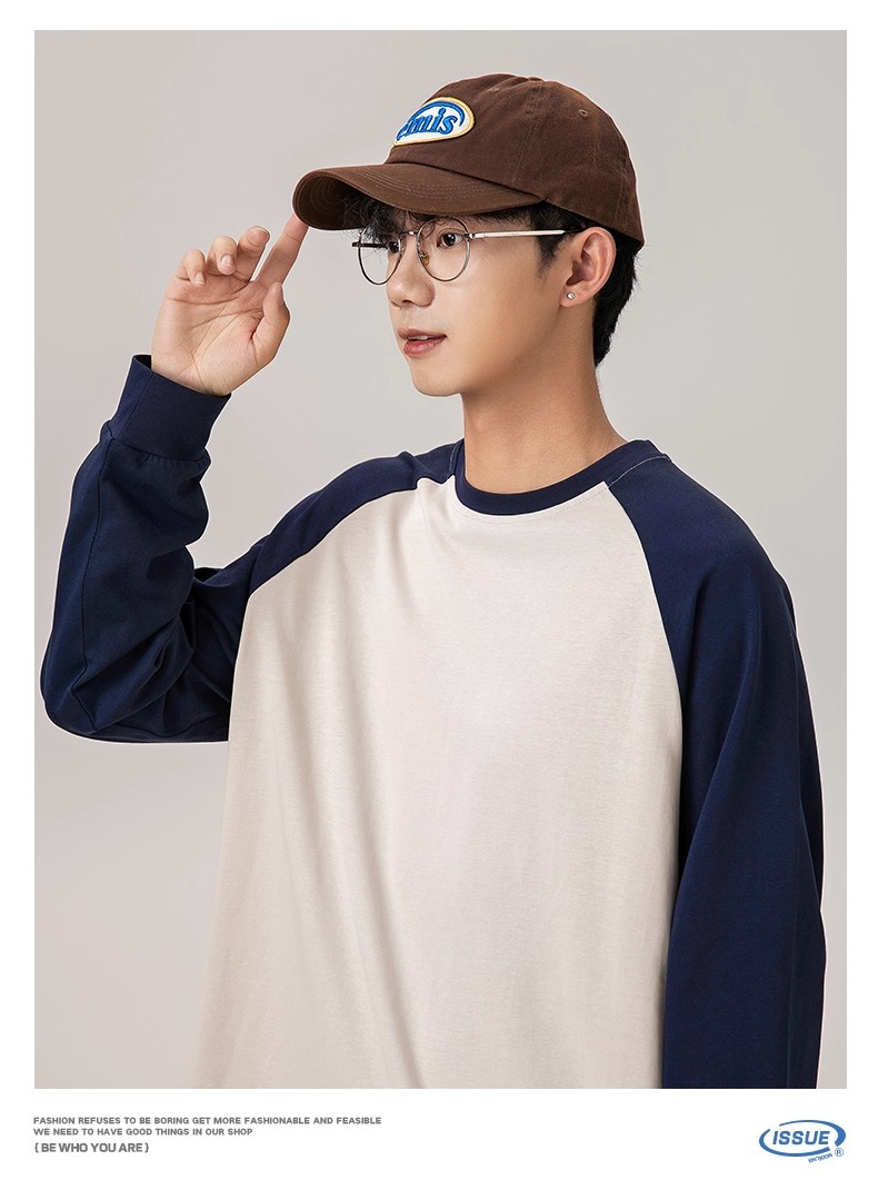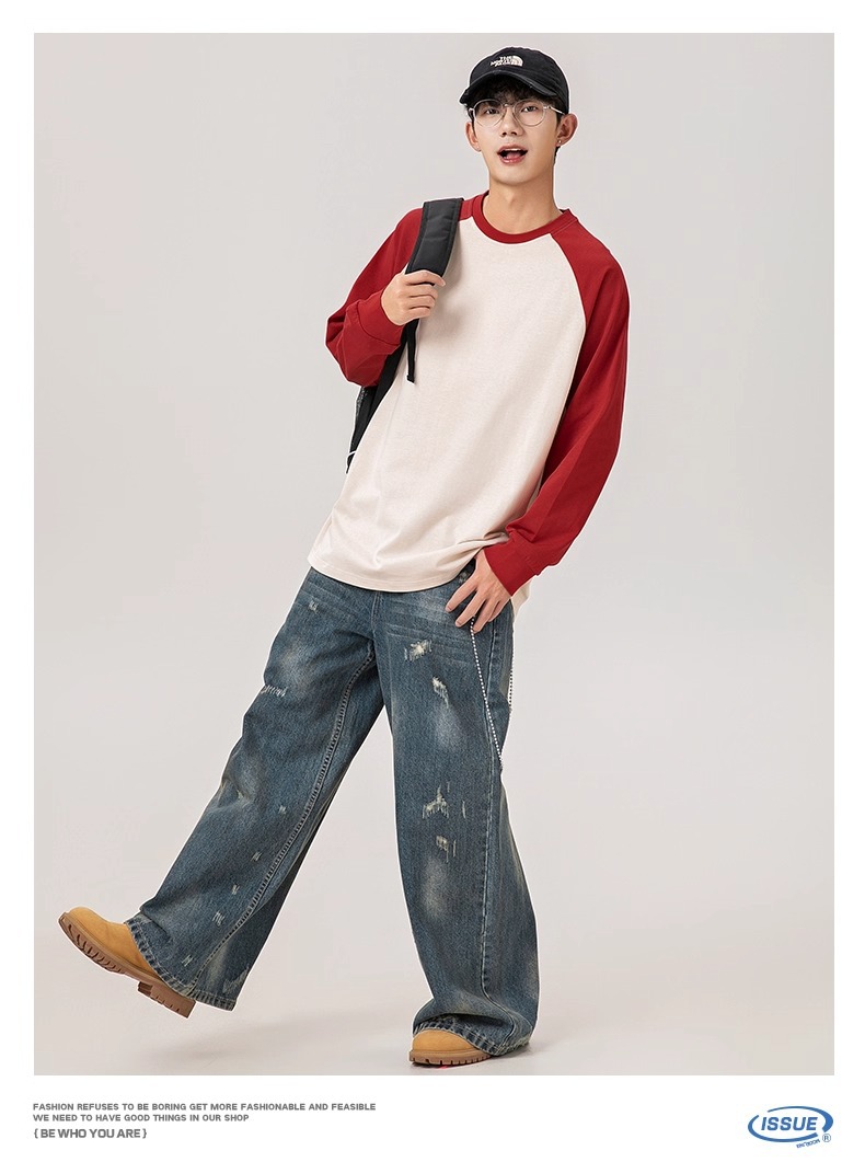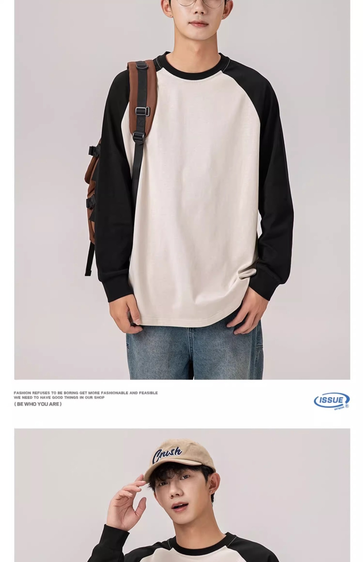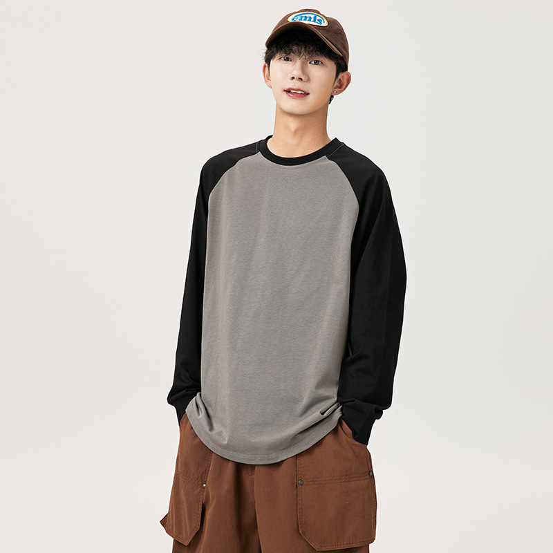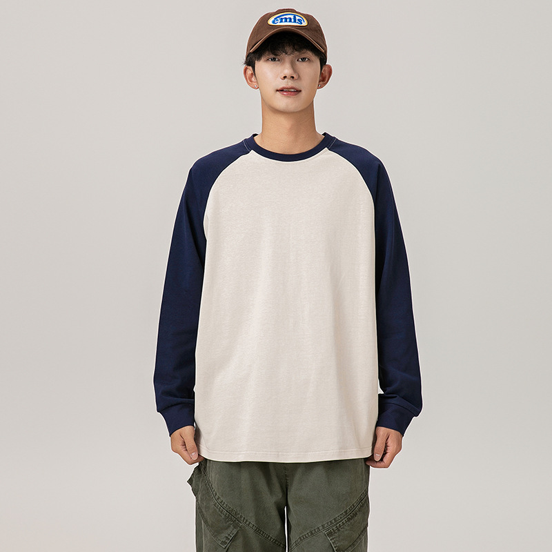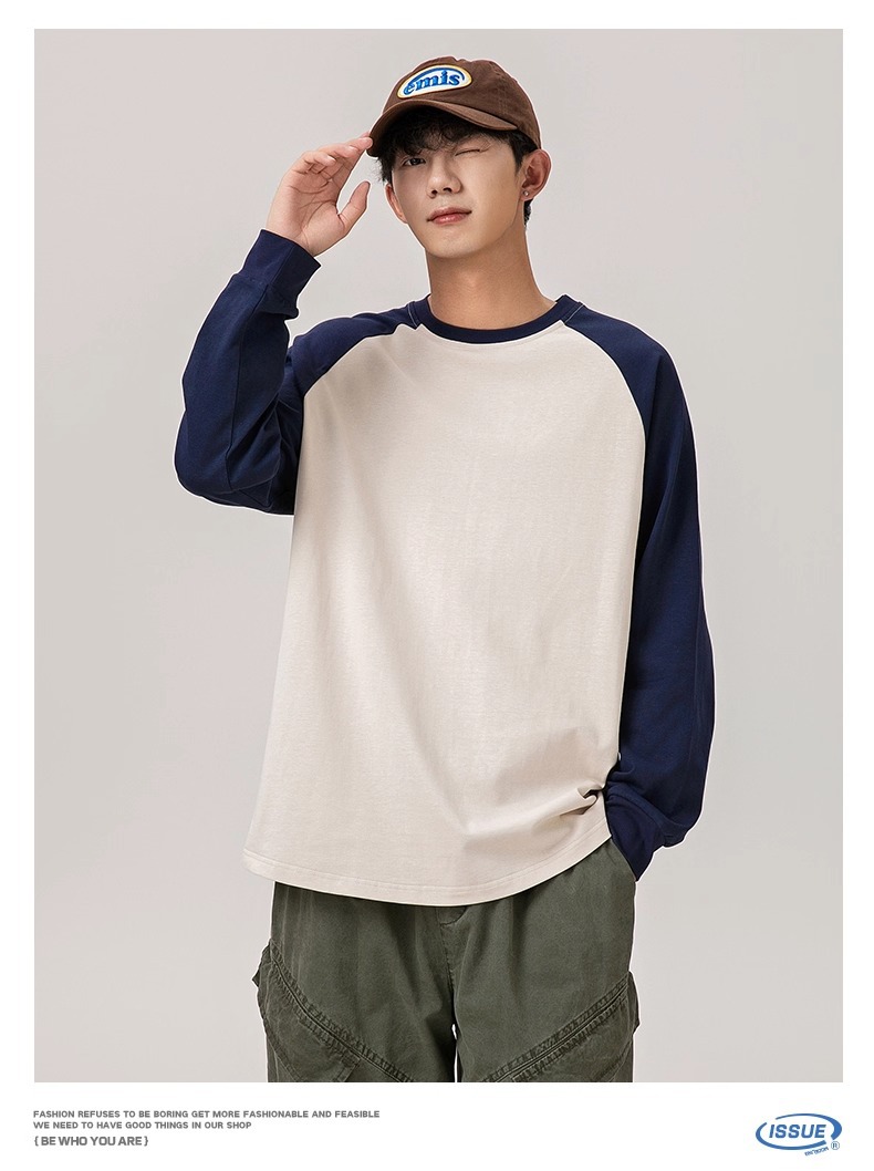 WASSUP 래글런 슬리브 t 대비 색 긴팔 남성 봄, 가을 2025 새로운 청소년 루즈 캐주얼 티셔츠 바닥 셔츠스토어 가기