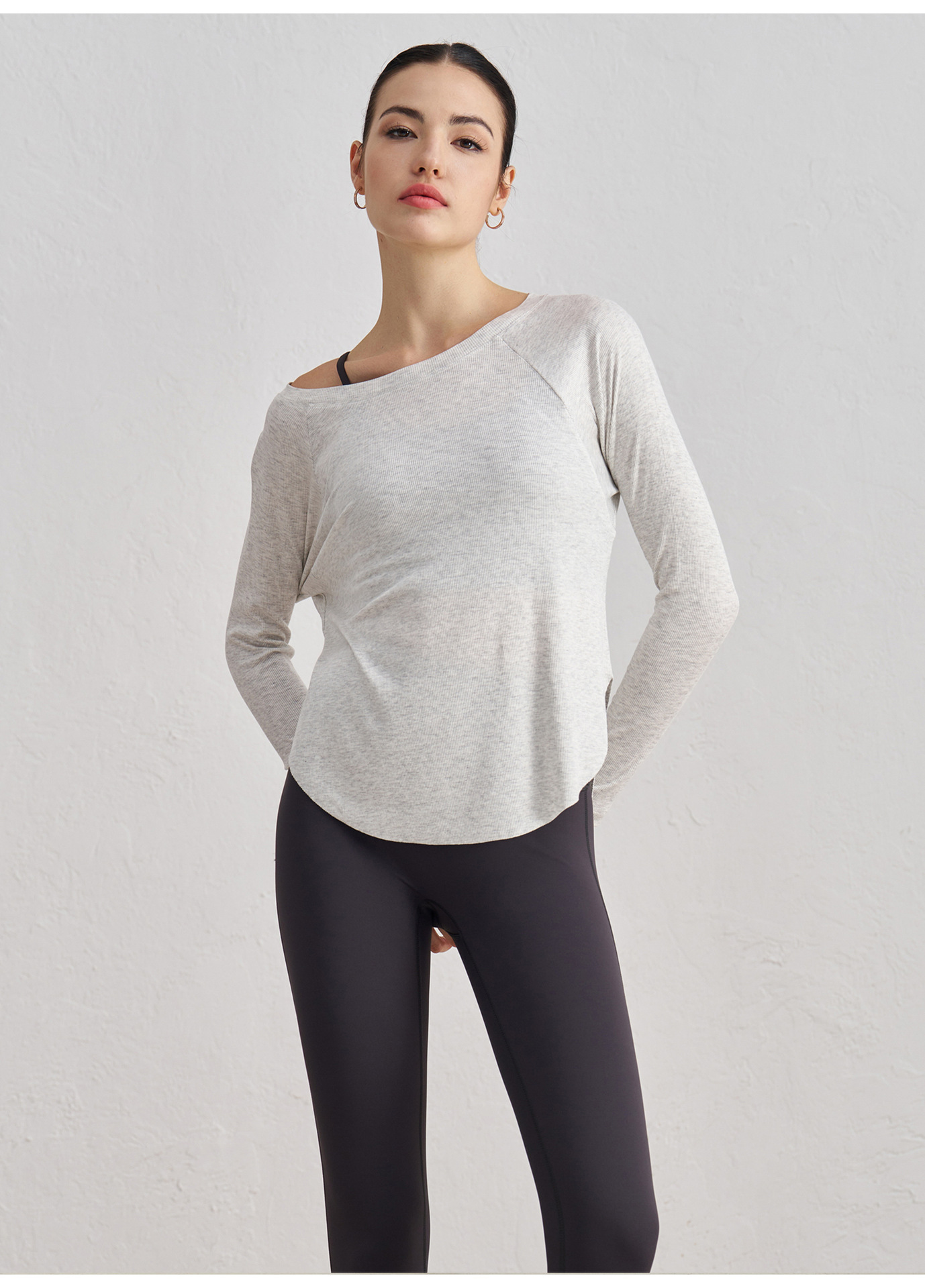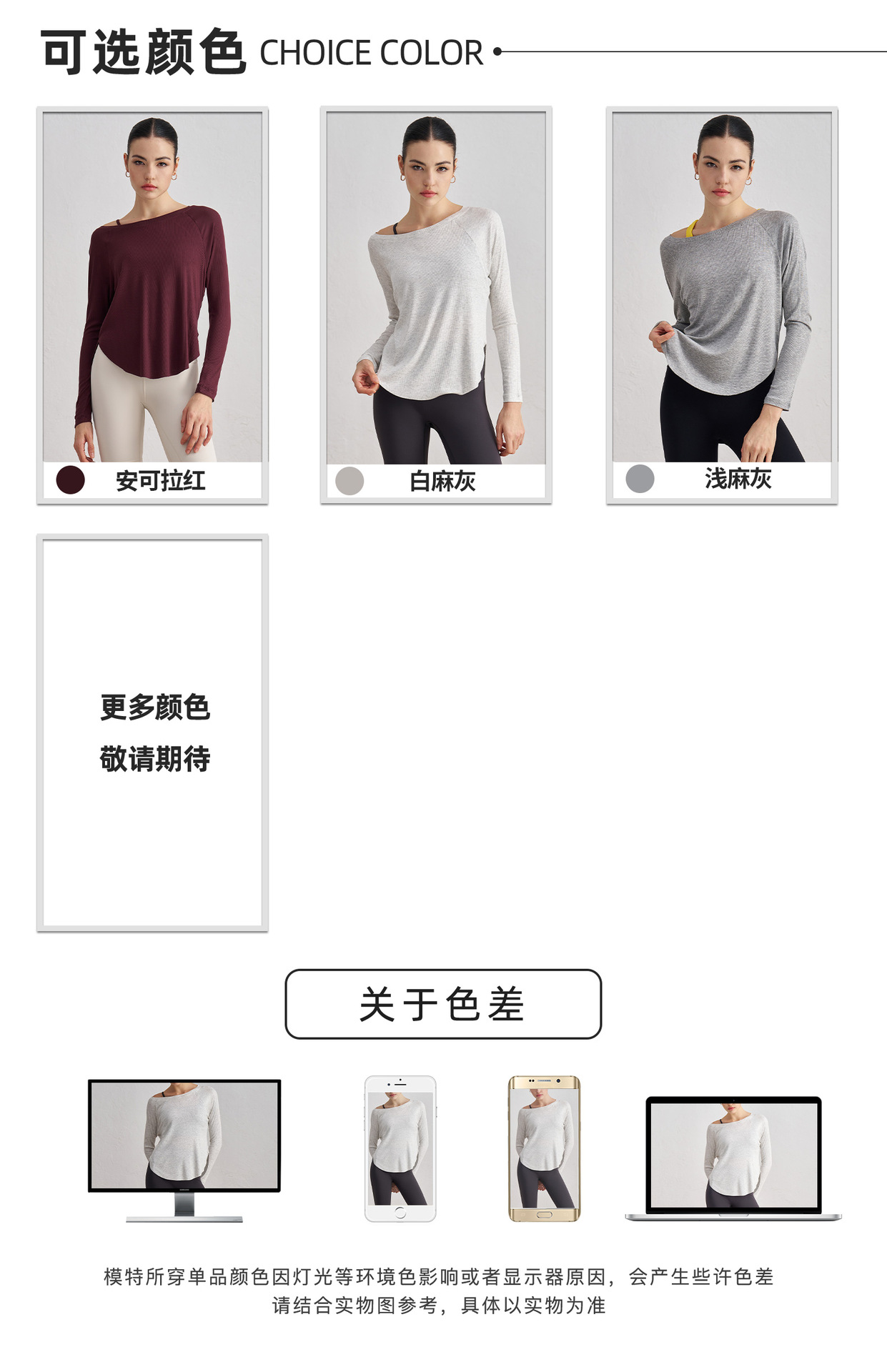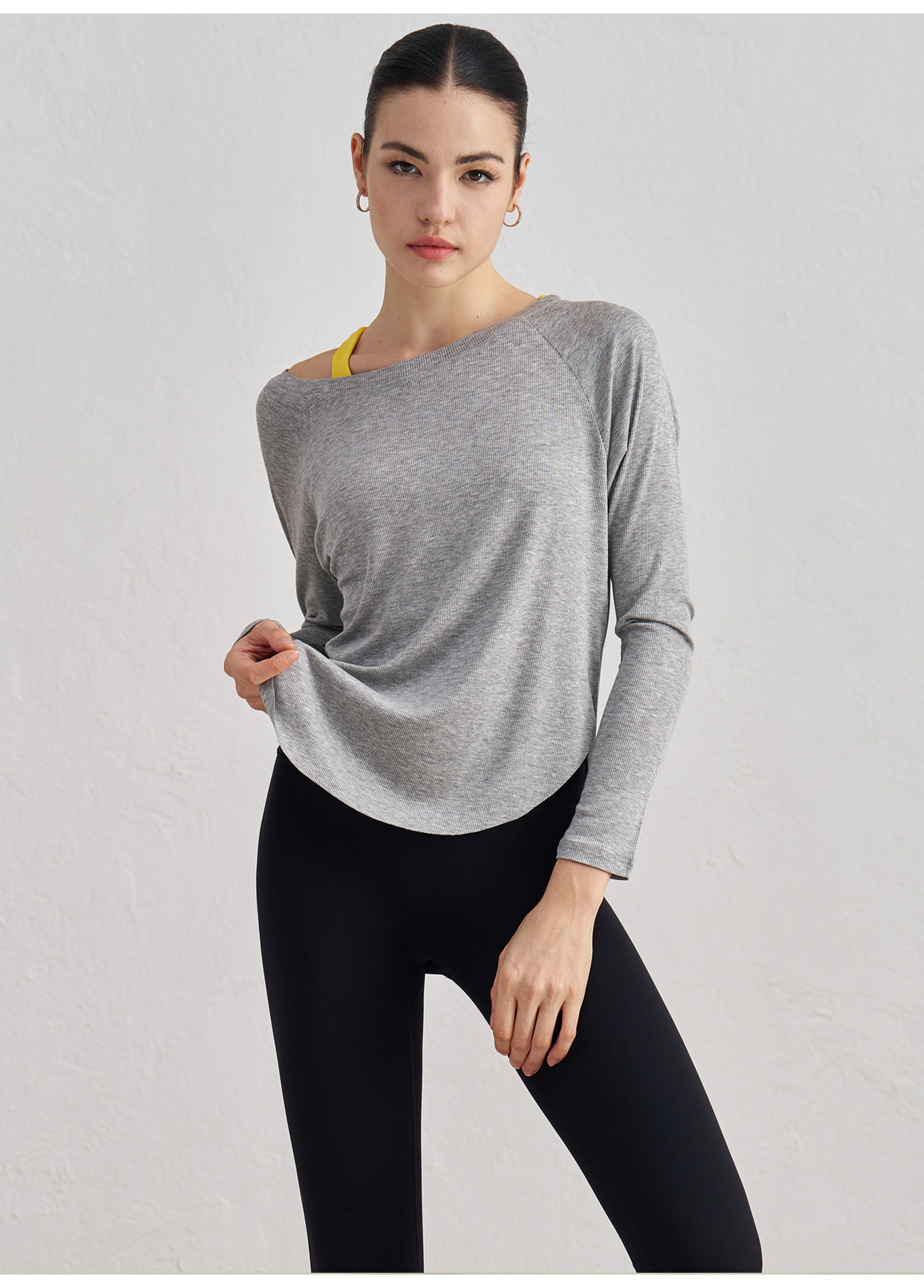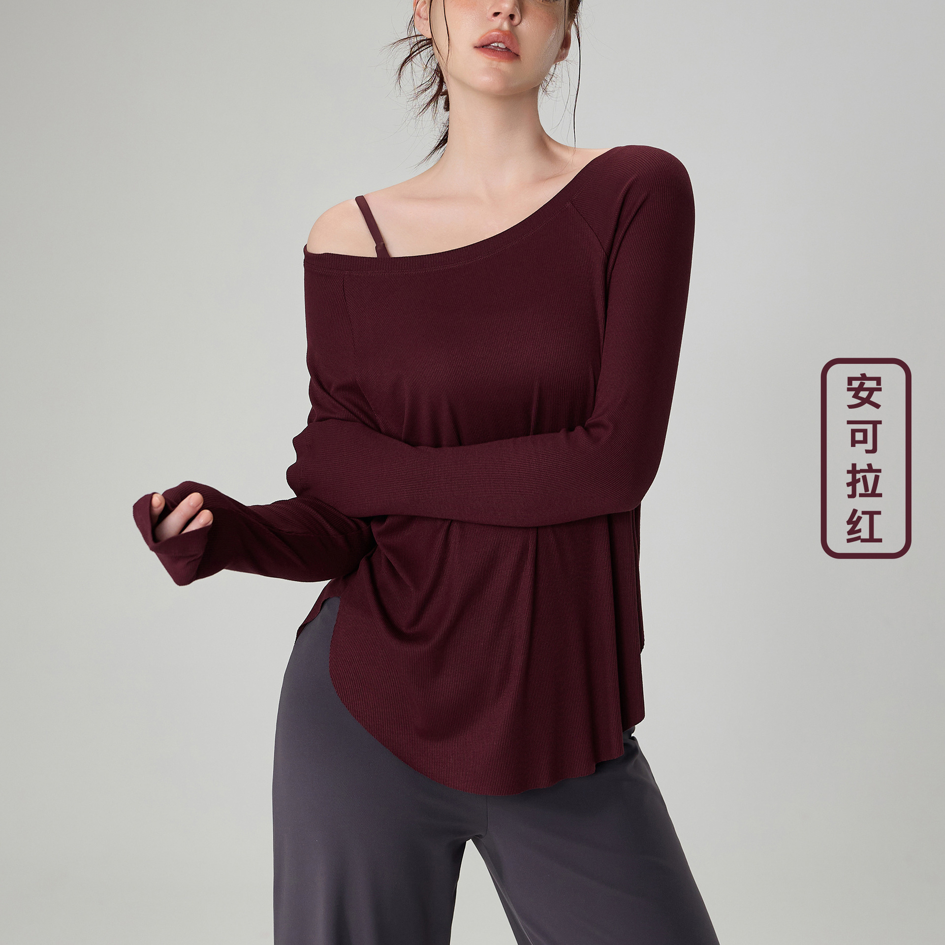 모달 오프숄더 요가복 여성용 루즈핏 넓은 라운드넥 통기성 요가 탑 디자인 감성 레이지 요가 커버업
