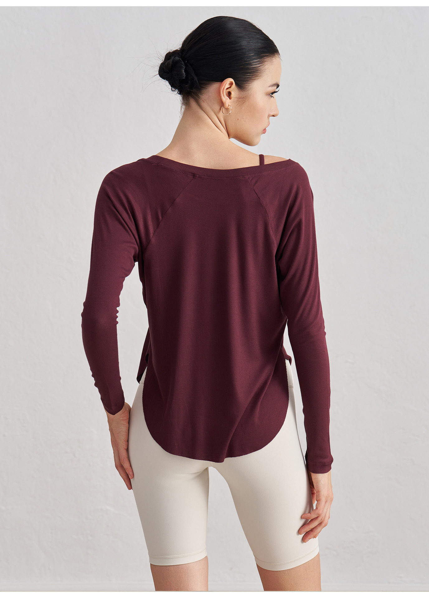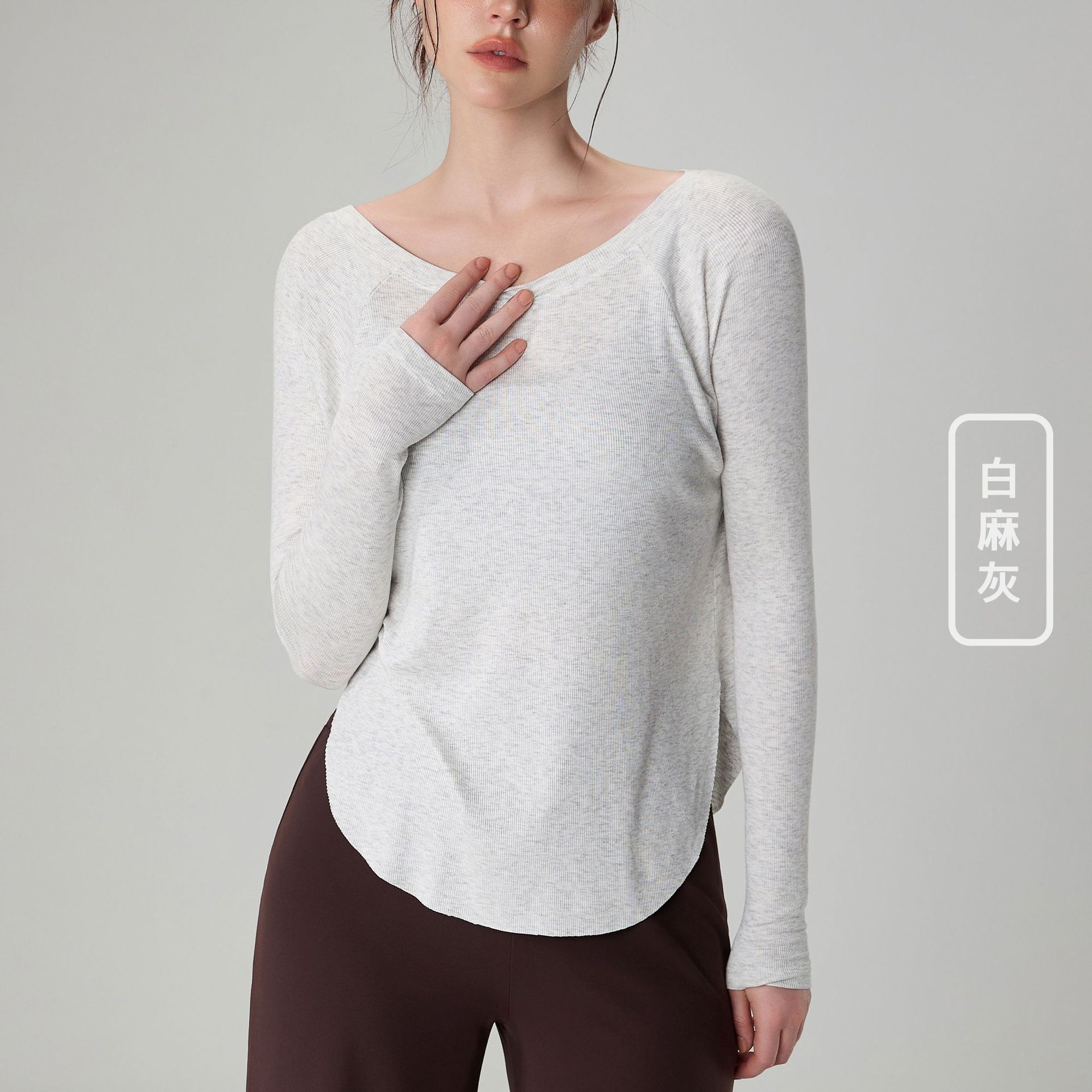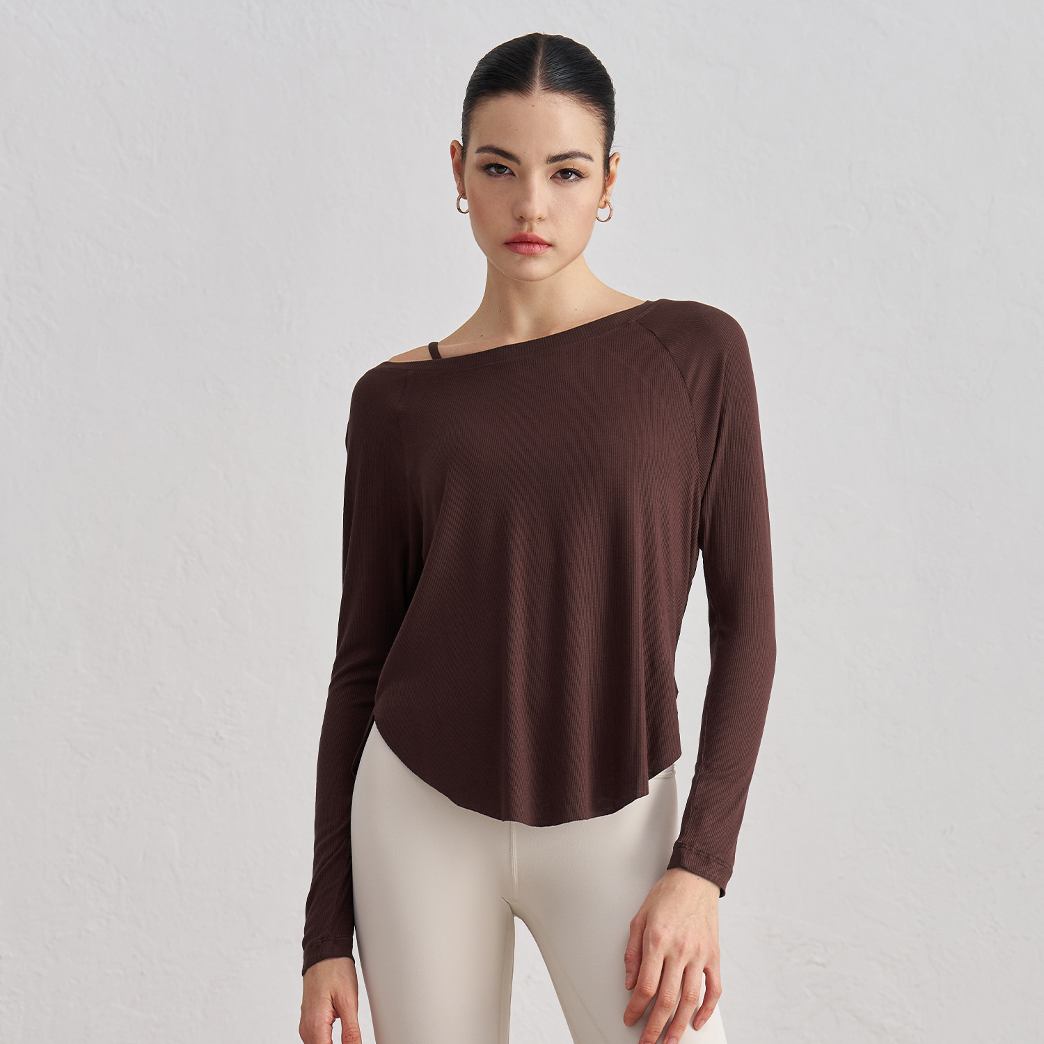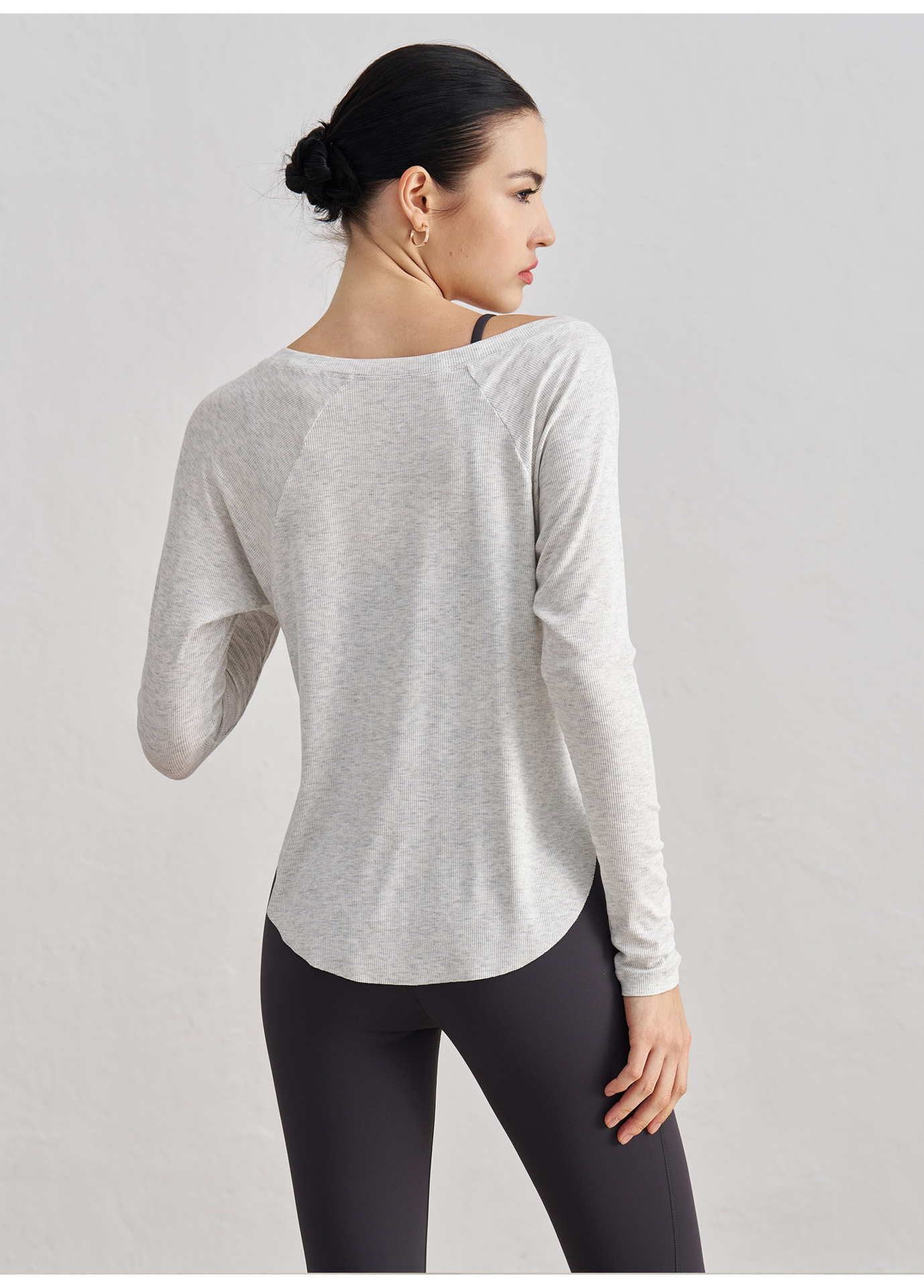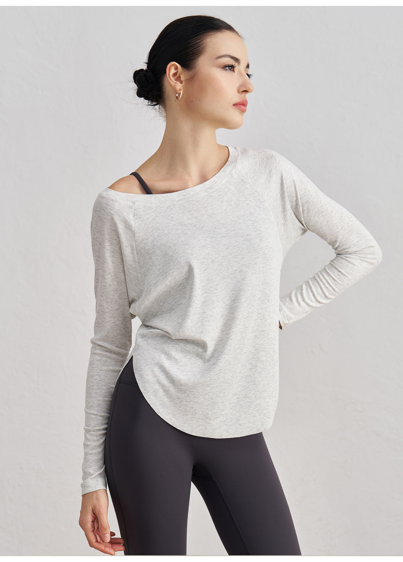 모달 오프숄더 요가복 여성용 루즈핏 넓은 라운드넥 통기성 요가 탑 디자인 감성 레이지 요가 커버업