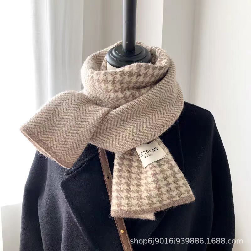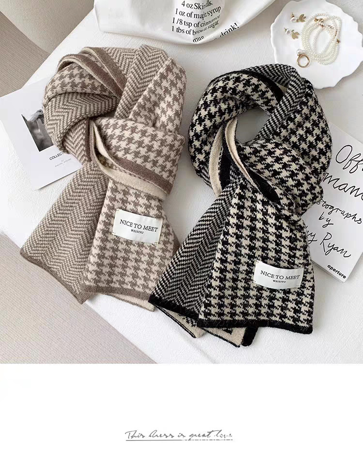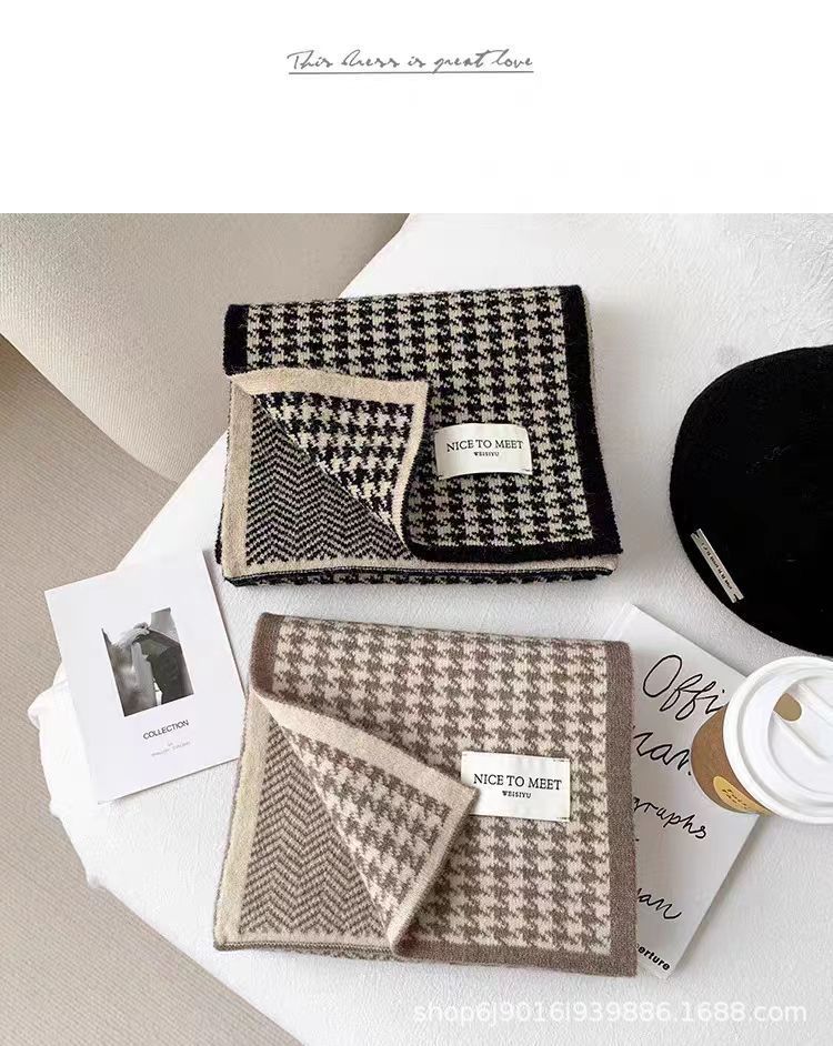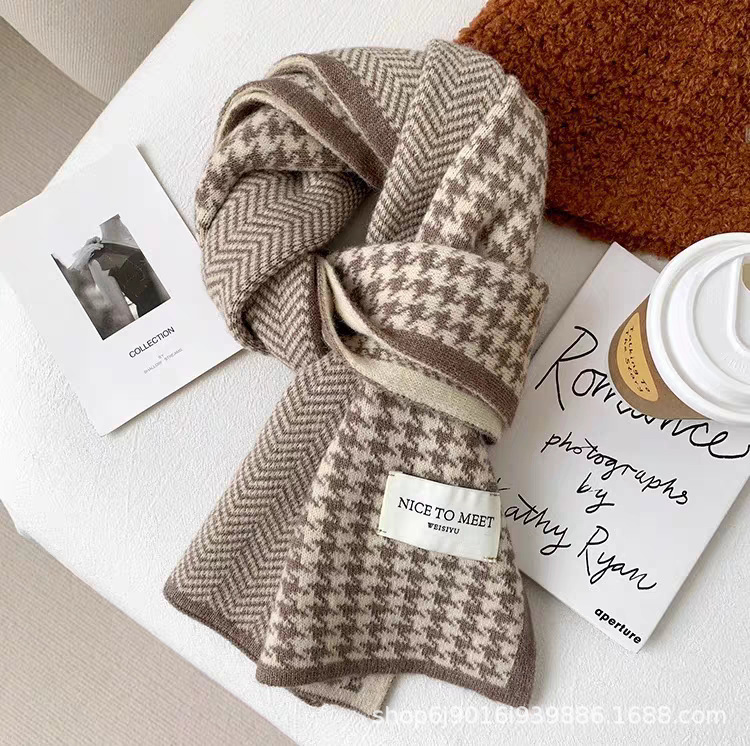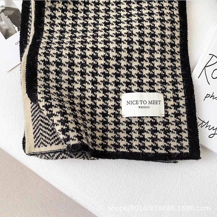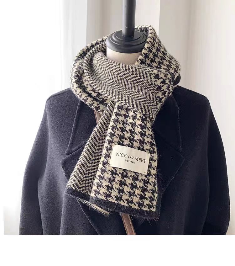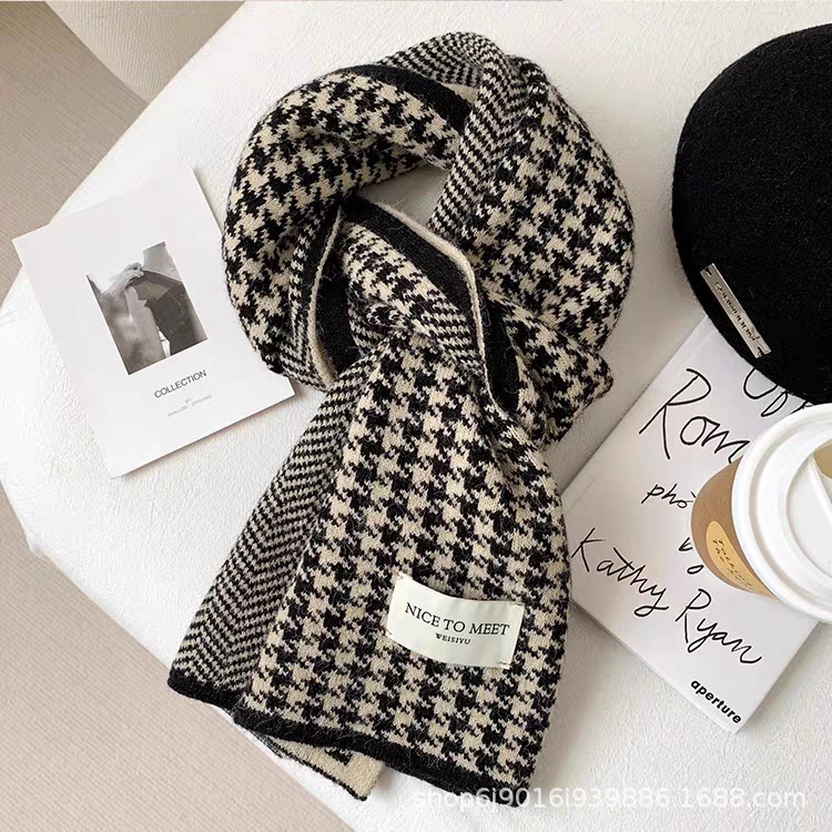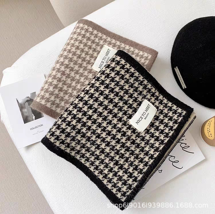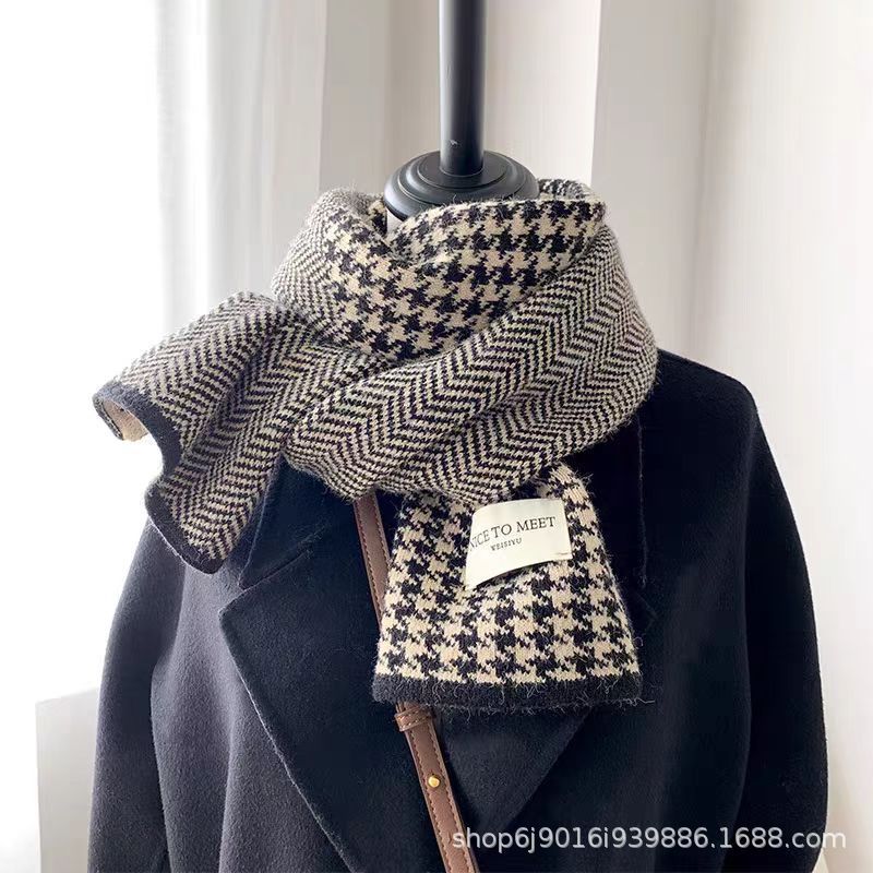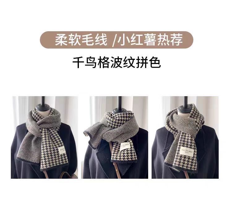 니트 패션 한국 스타일 물떼새 격자무늬 스카프 가을 겨울 다용도 여성용 스카프 여학생 방풍 보온 스카프 트렌디스토어 가기