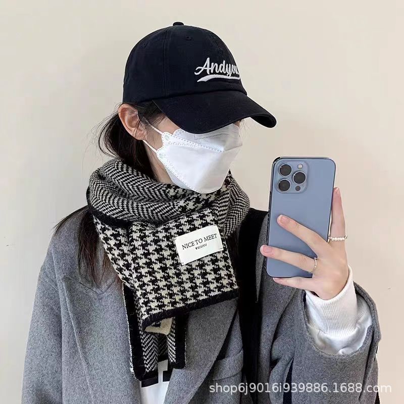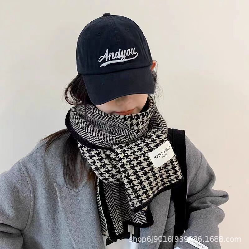 니트 패션 한국 스타일 물떼새 격자무늬 스카프 가을 겨울 다용도 여성용 스카프 여학생 방풍 보온 스카프 트렌디
