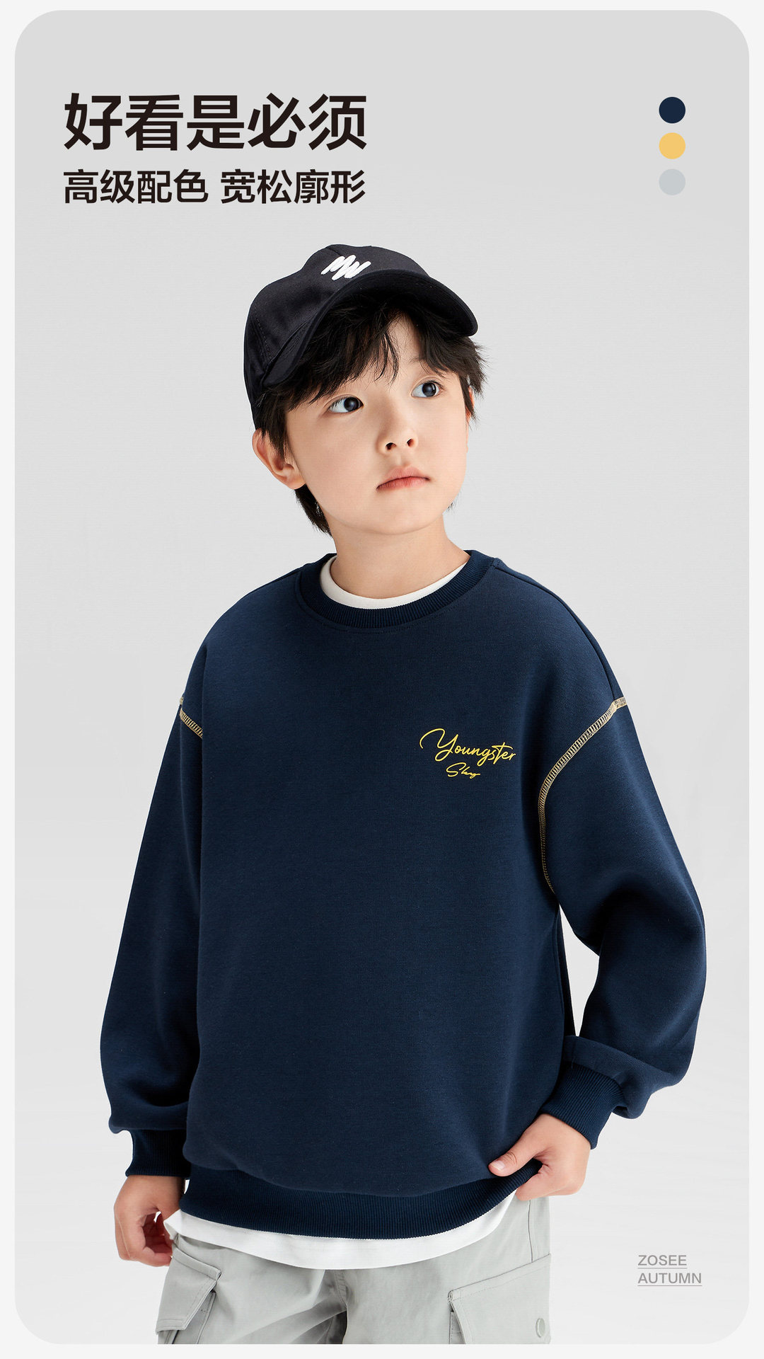 Zuoxi 아동복 남아 스웨트셔츠 2026 신상 아동용 재킷 봄 가을용 라운드넥 긴팔 베이스 레이어 상의 큰아동용 봄옷스토어 가기