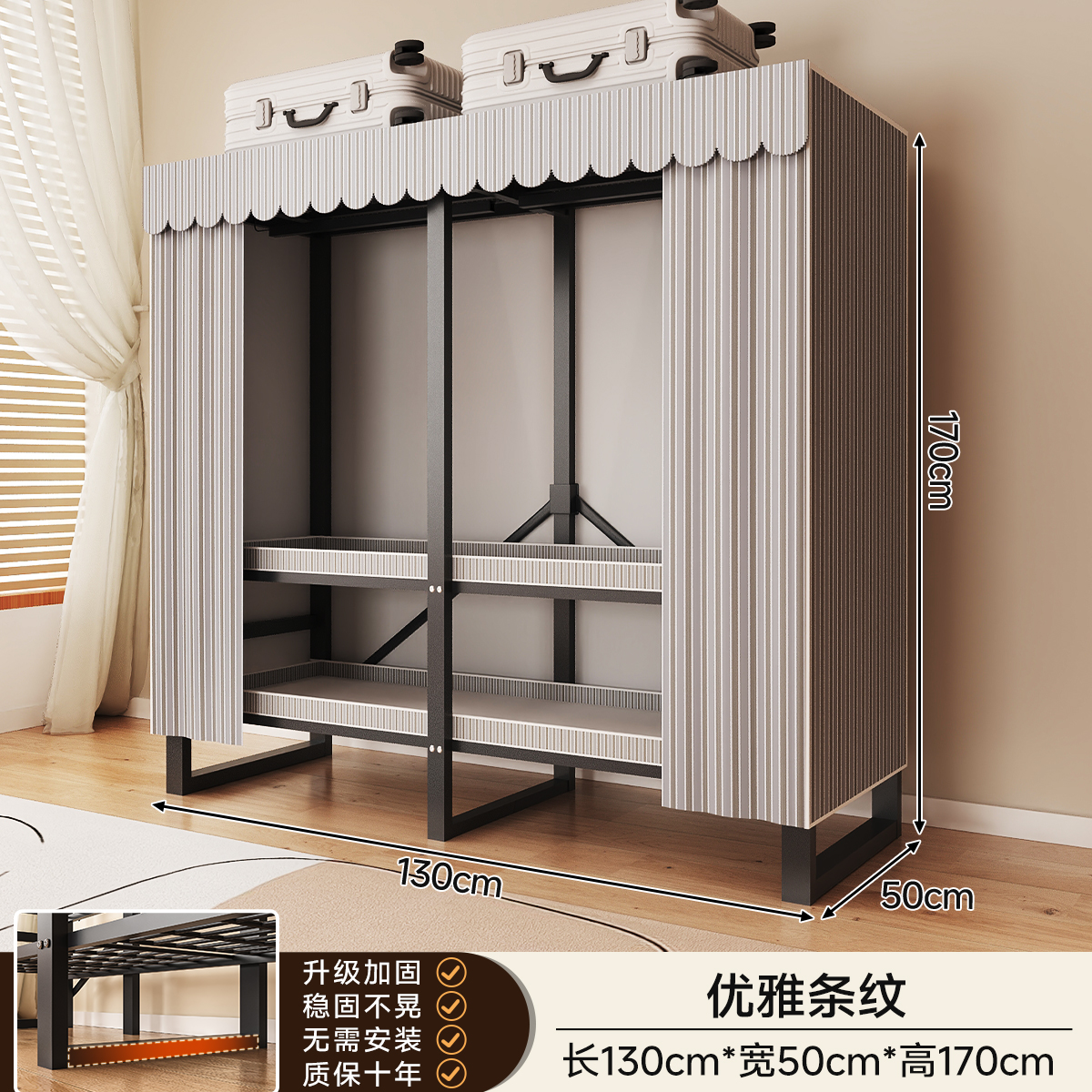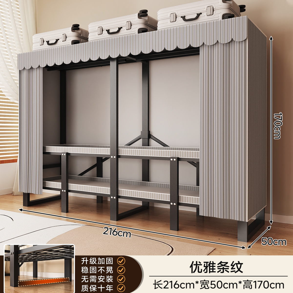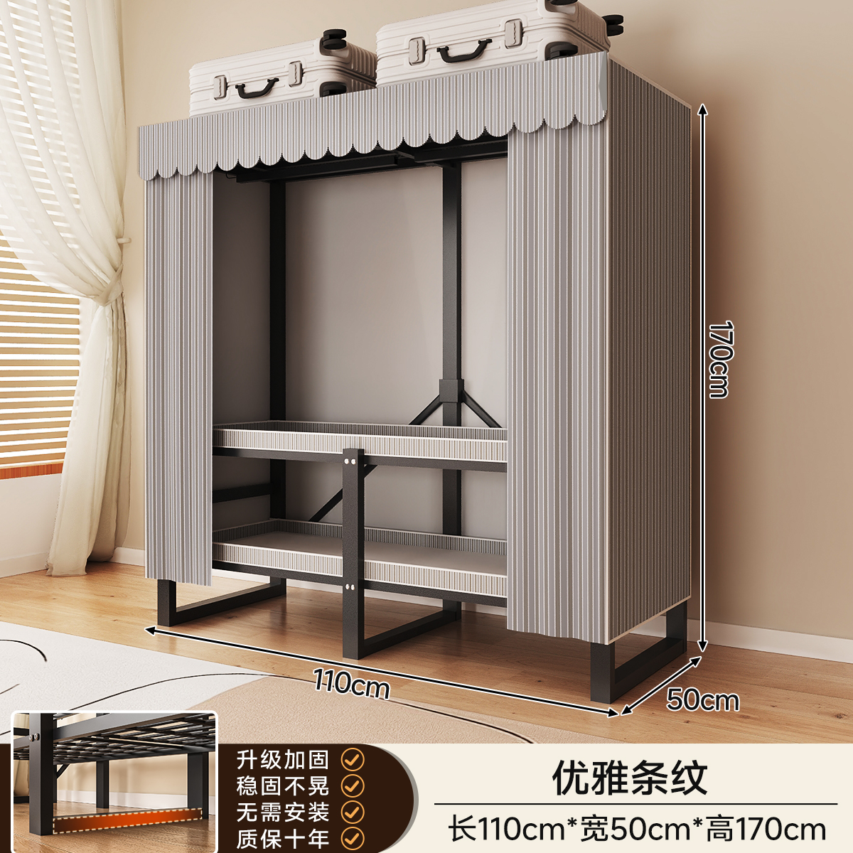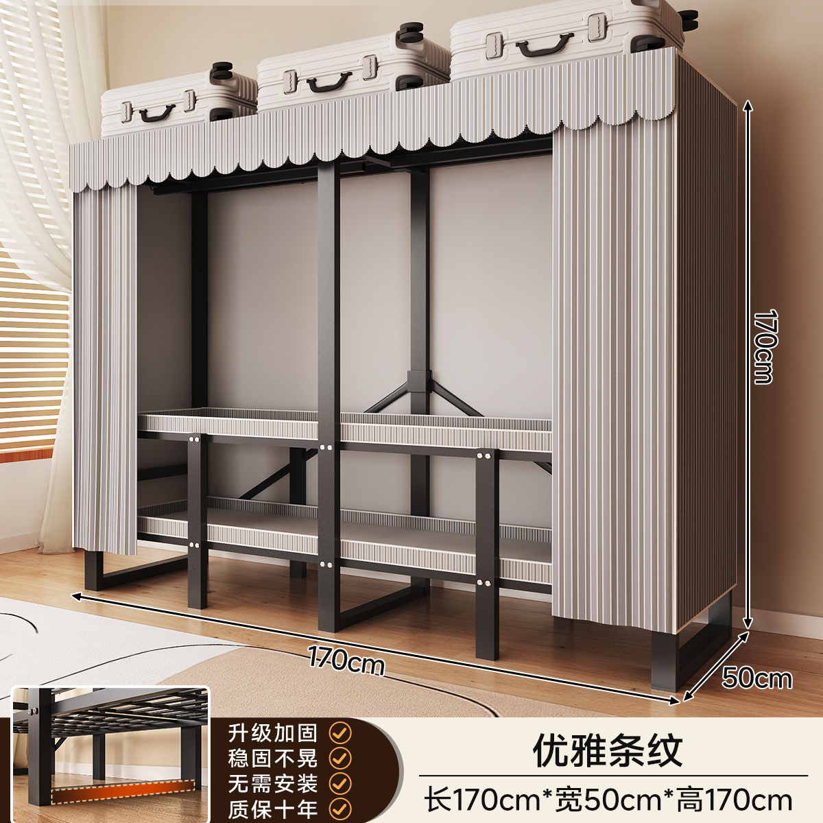 • 두꺼워진 일체형 무설치 [ 1.70m - 우아한 스트라이프 ] 32MM 두꺼워진 강관이 안정적이고 흔들리지 않습니다!