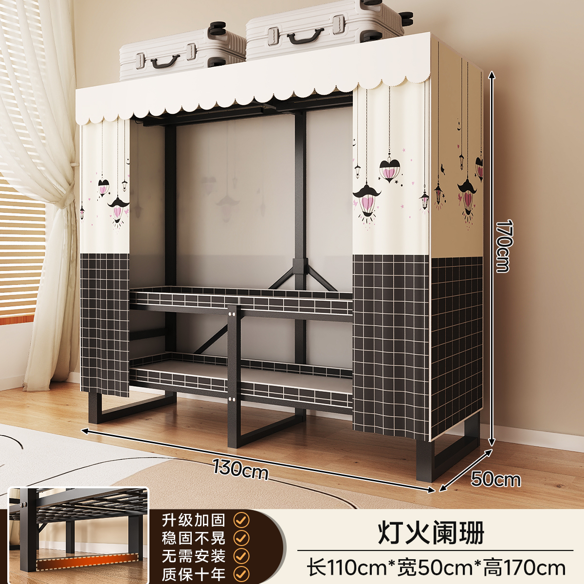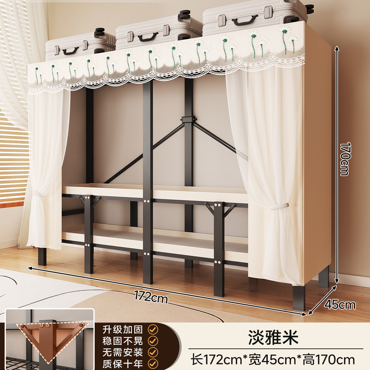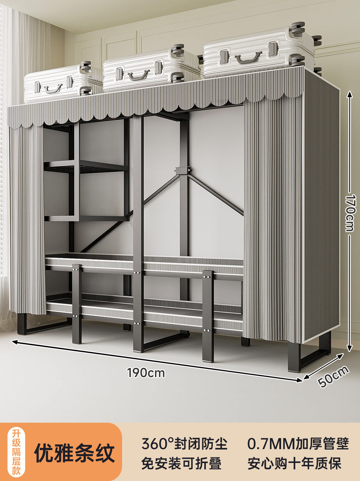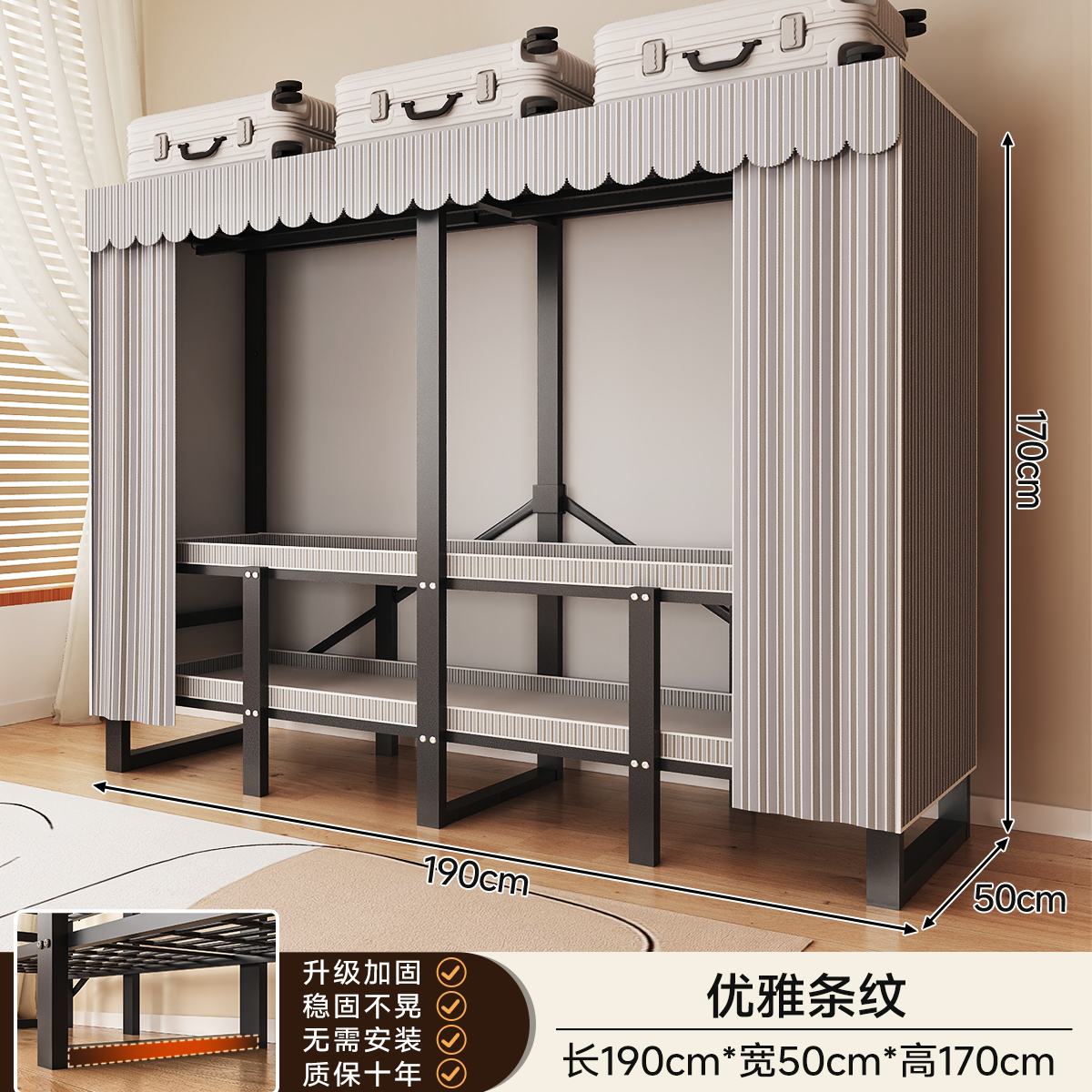 • 두꺼워진 일체형 무설치 [ 1.70m - 우아한 스트라이프 ] 32MM 두꺼워진 강관이 안정적이고 흔들리지 않습니다!