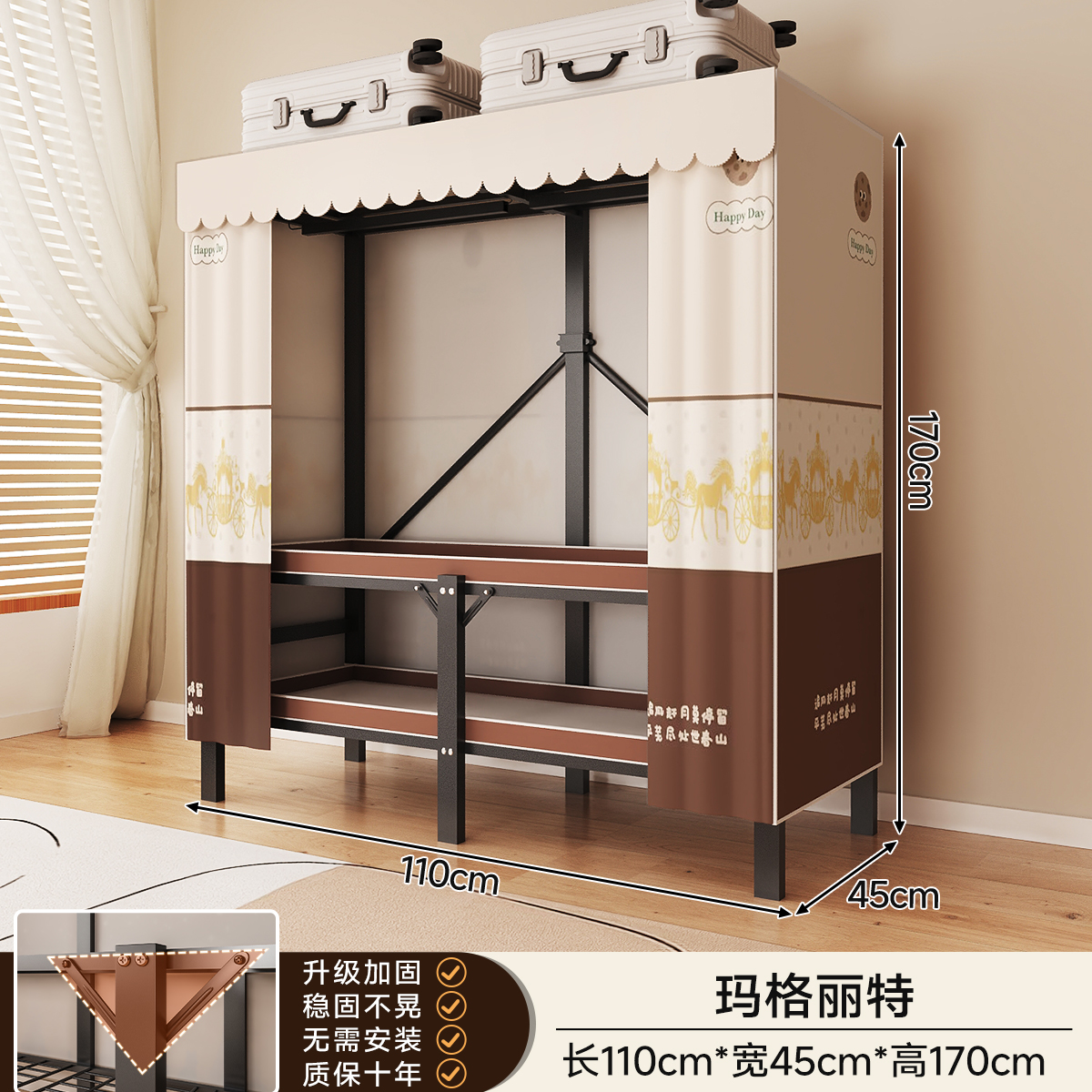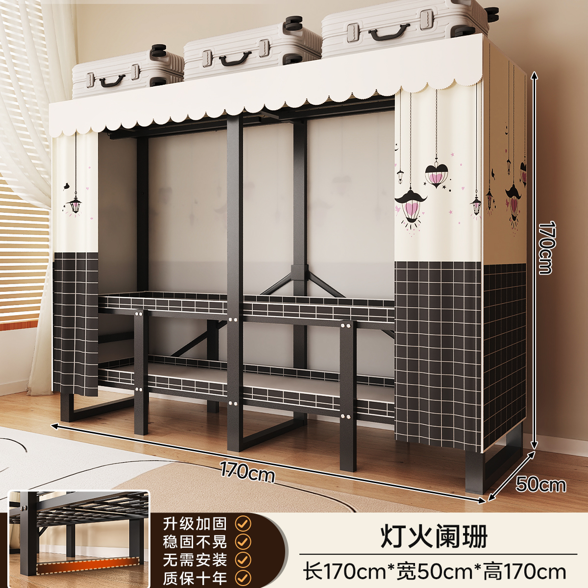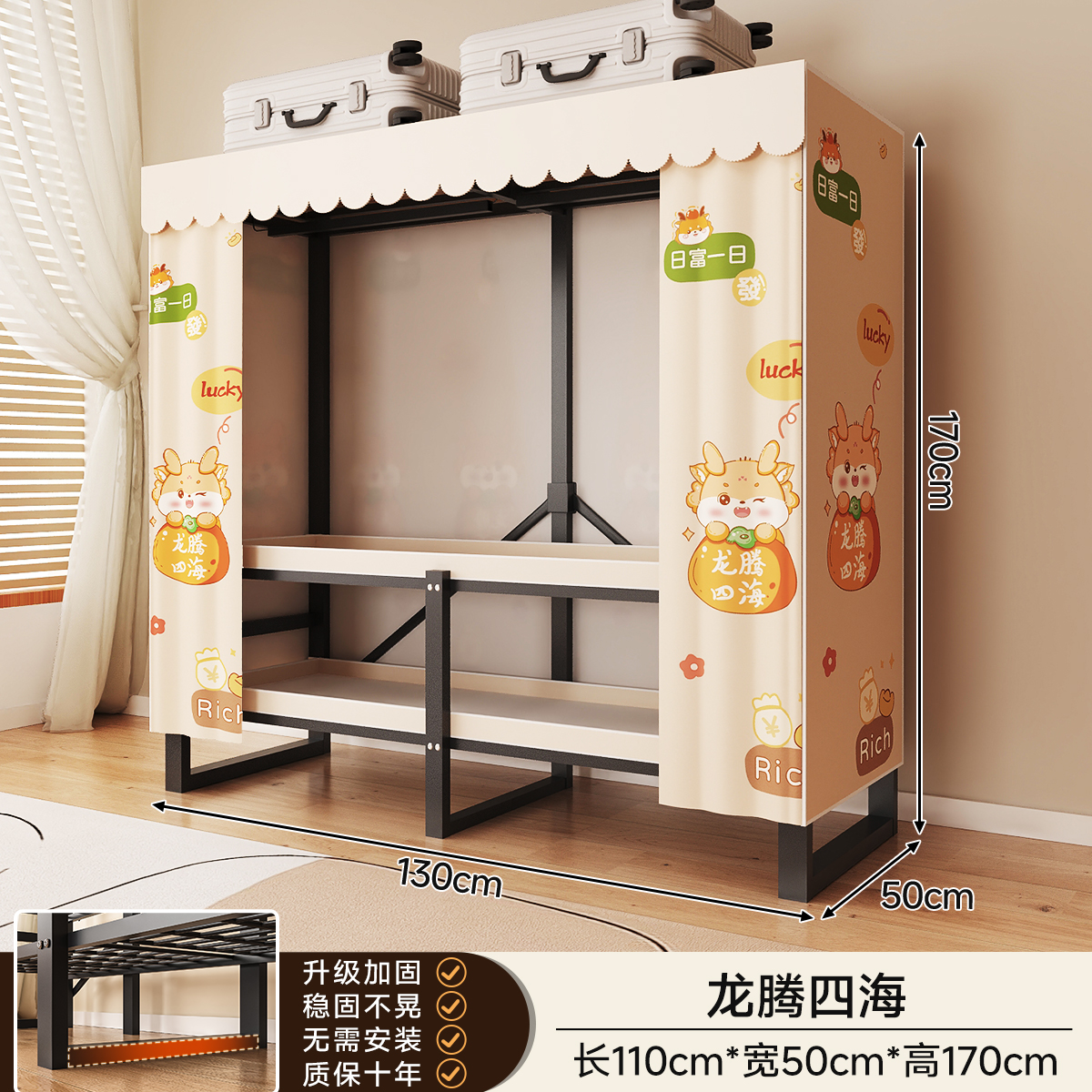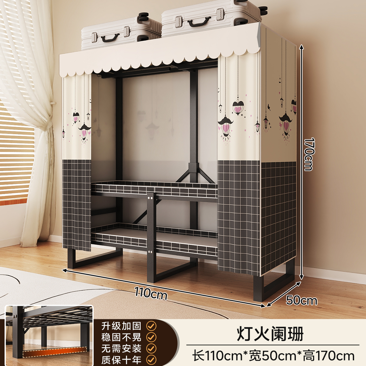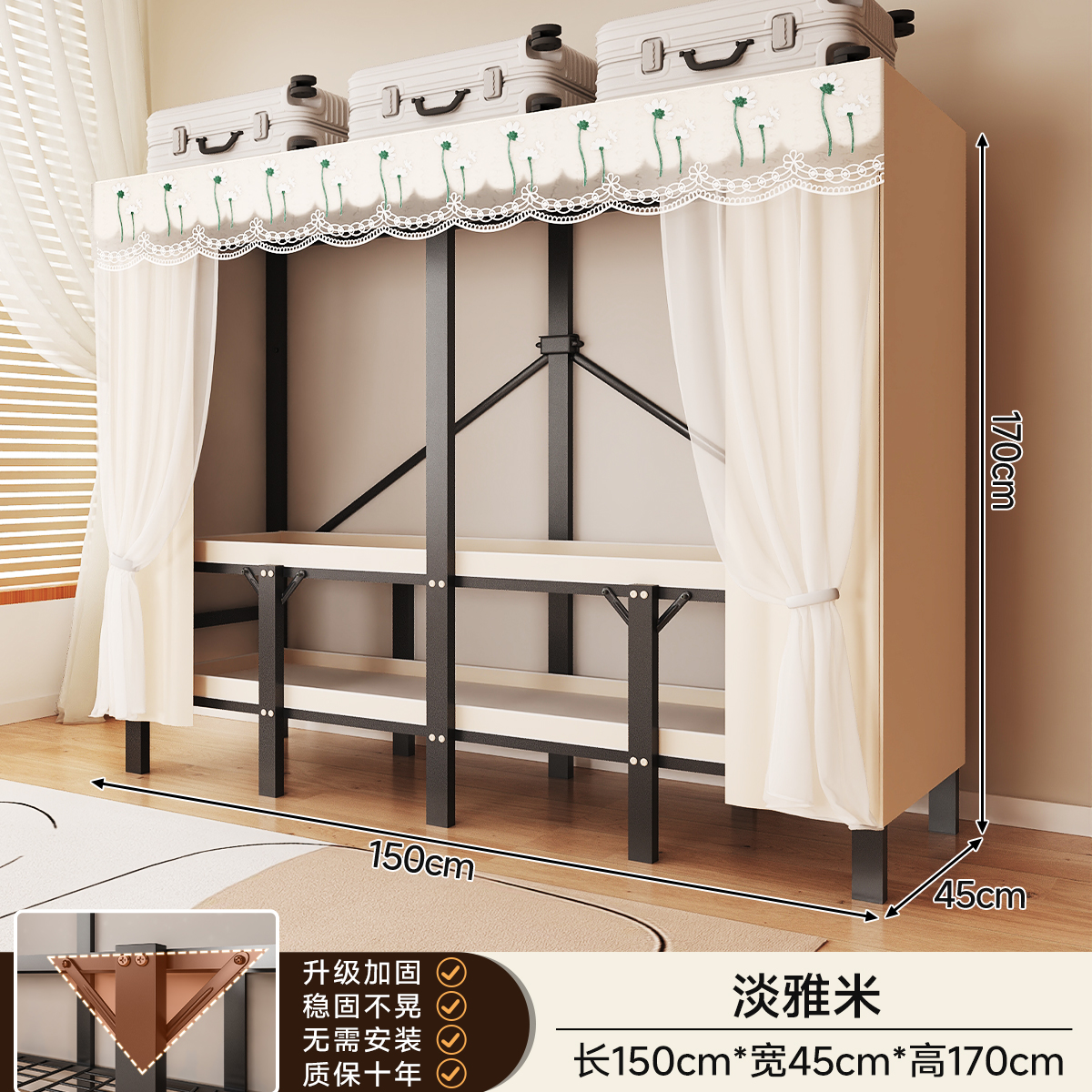 • 두꺼워진 일체형 무설치 [ 1.70m - 우아한 스트라이프 ] 32MM 두꺼워진 강관이 안정적이고 흔들리지 않습니다!