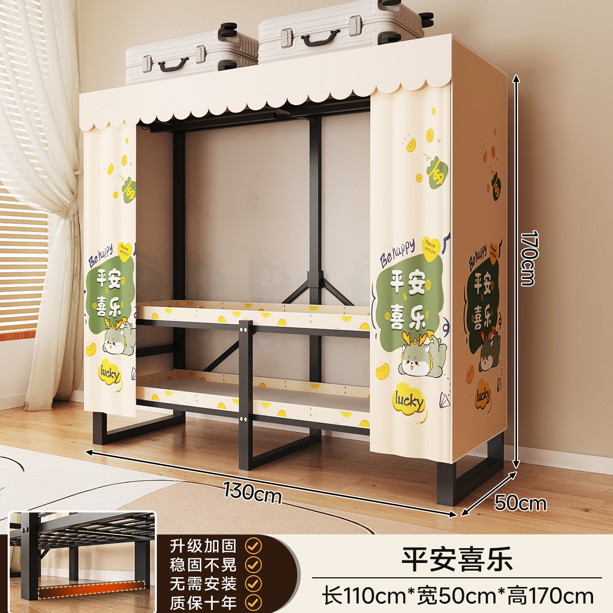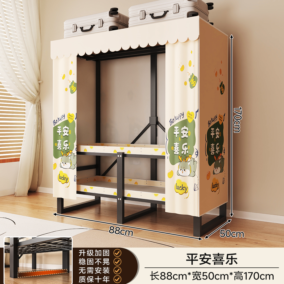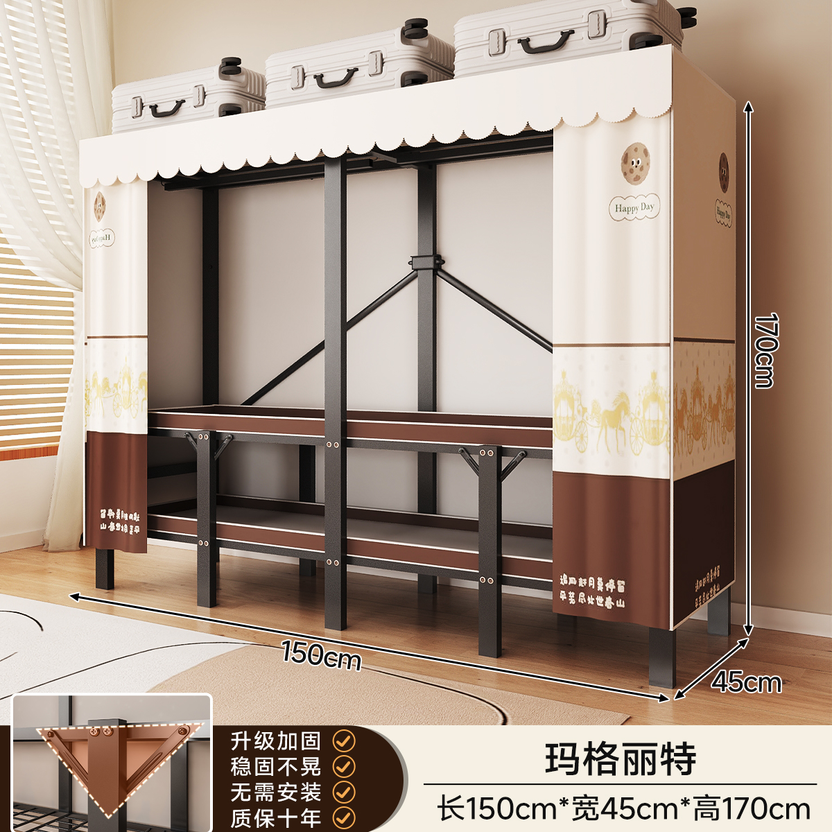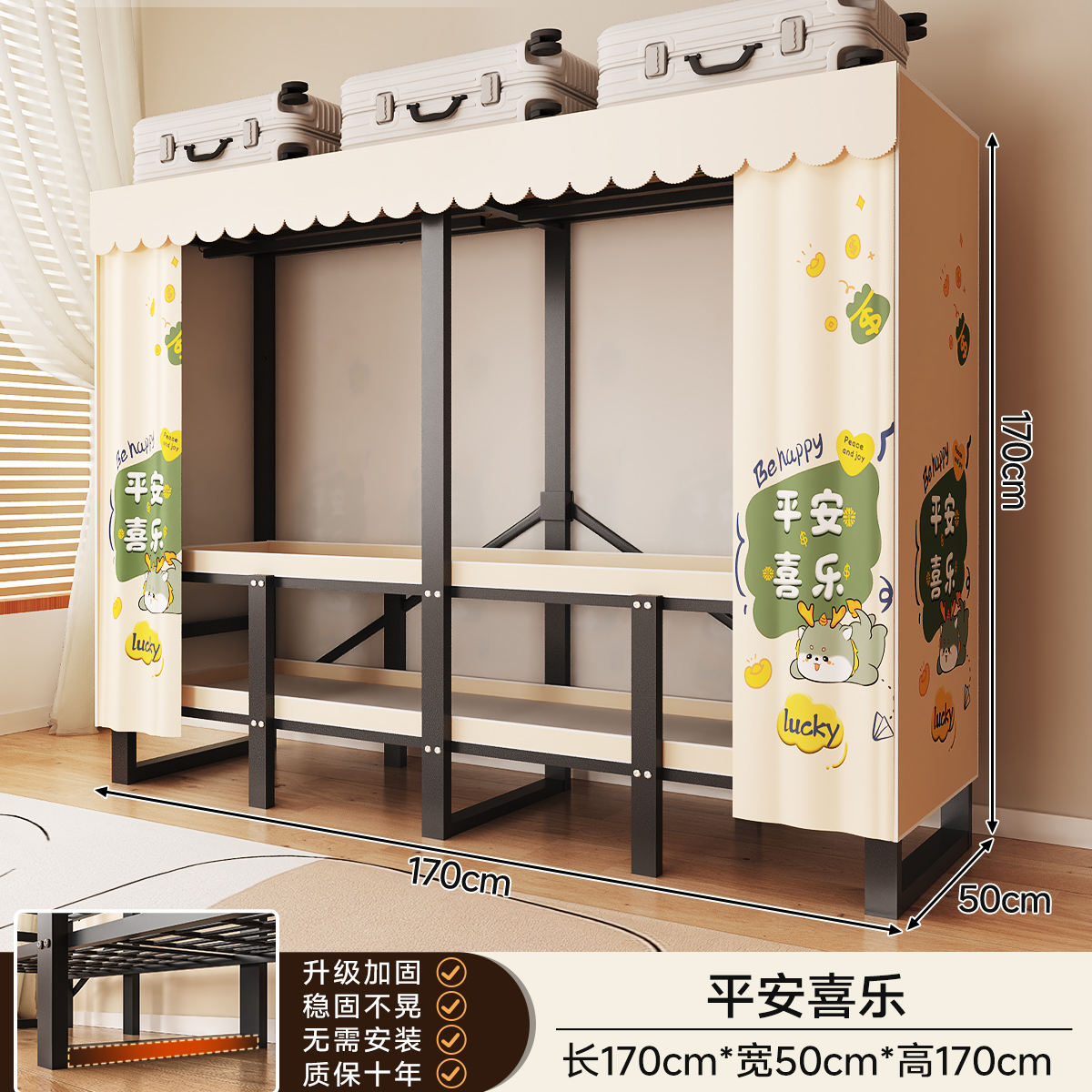 • 두꺼워진 일체형 무설치 [ 1.70m - 우아한 스트라이프 ] 32MM 두꺼워진 강관이 안정적이고 흔들리지 않습니다!