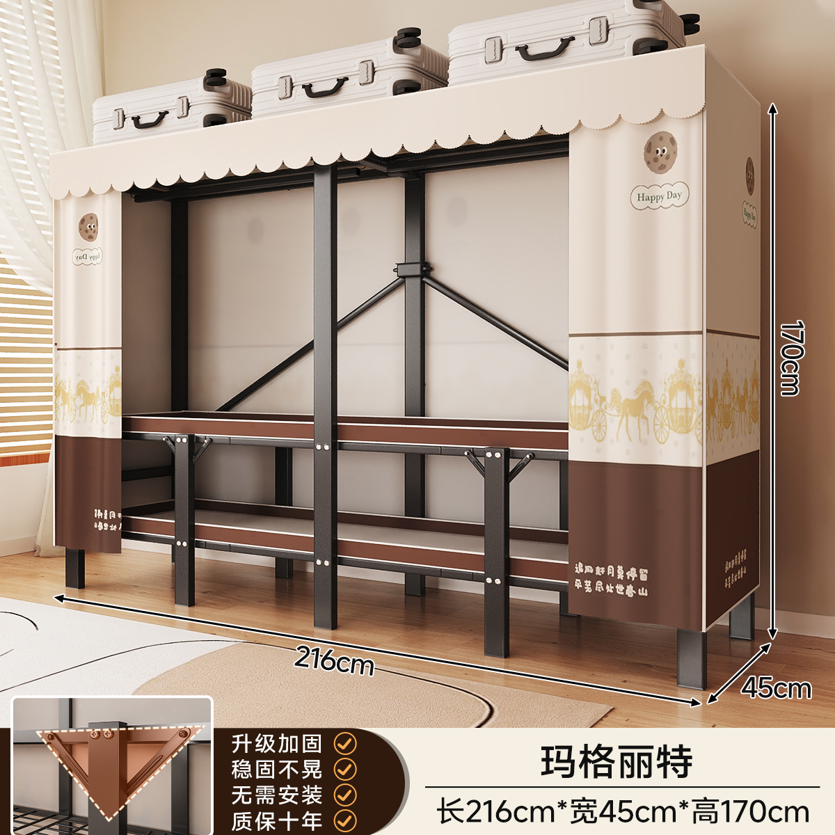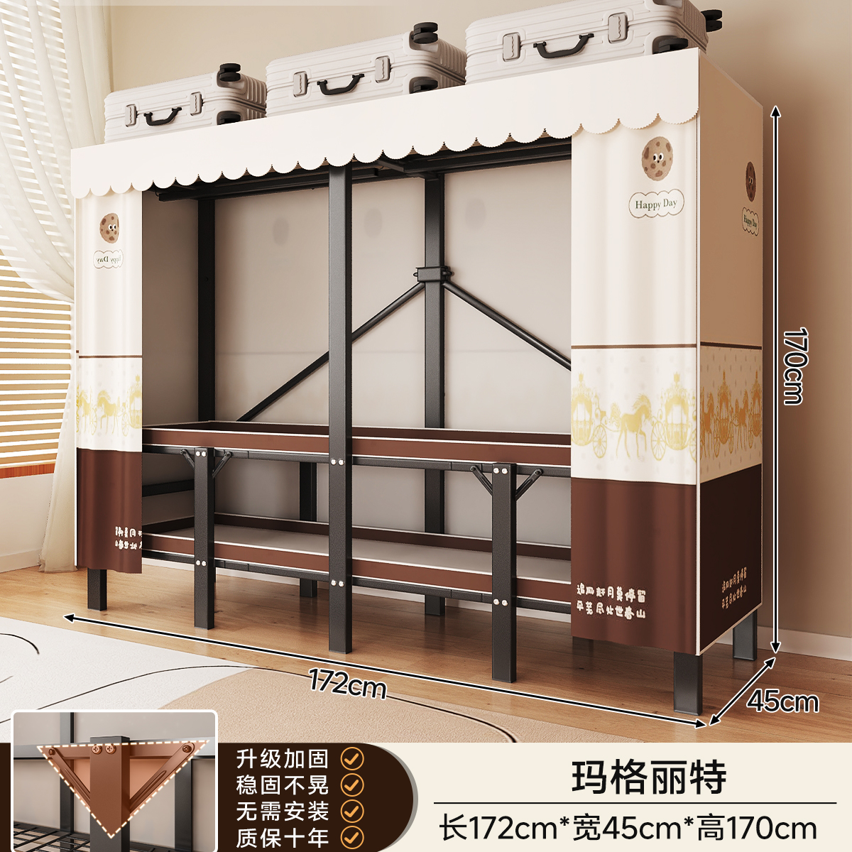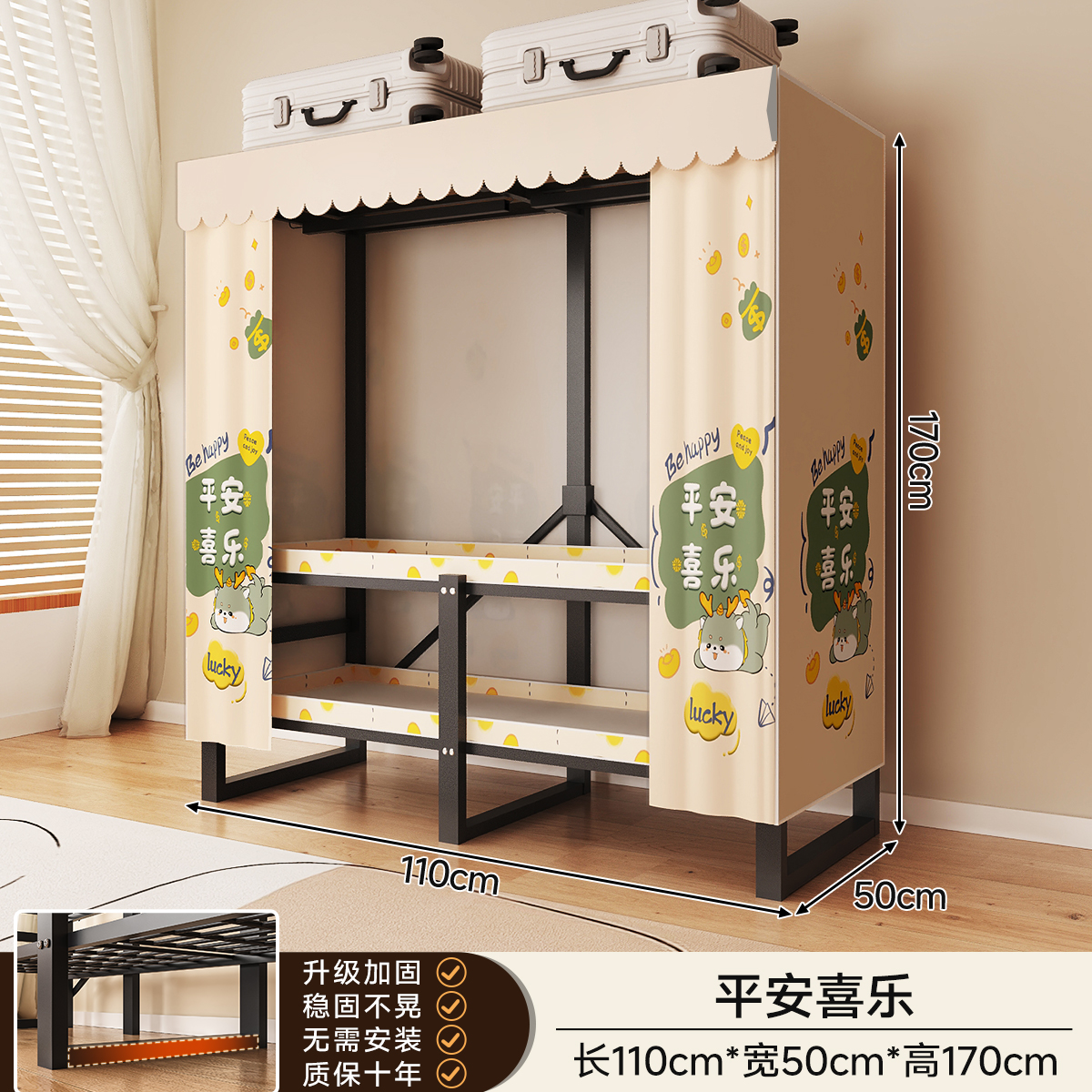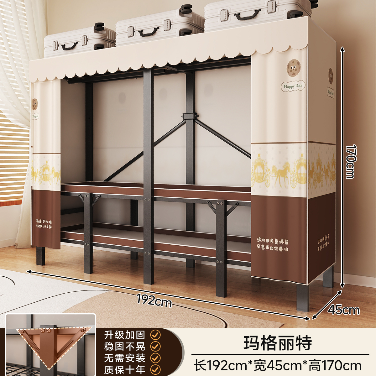 • 두꺼워진 일체형 무설치 [ 1.70m - 우아한 스트라이프 ] 32MM 두꺼워진 강관이 안정적이고 흔들리지 않습니다!