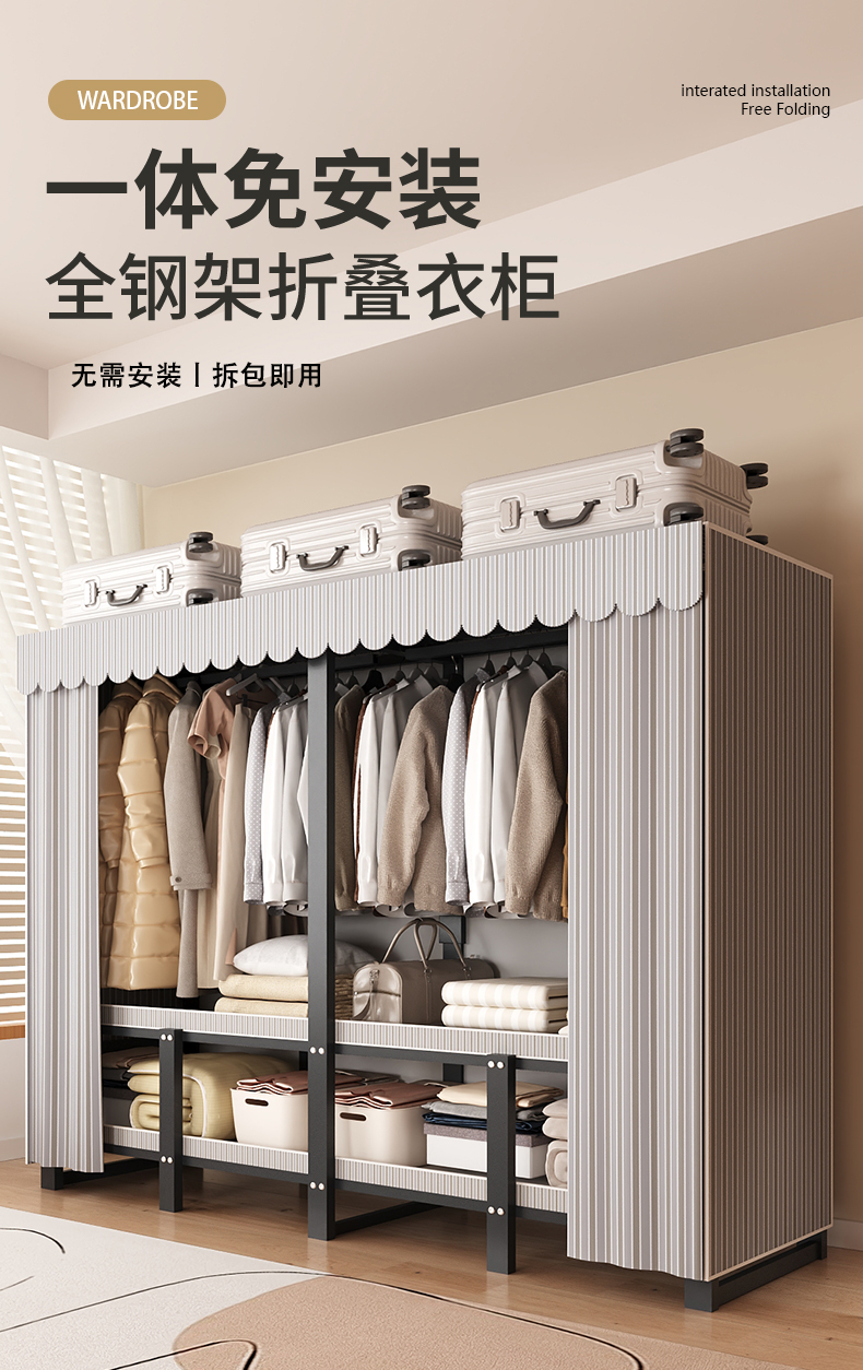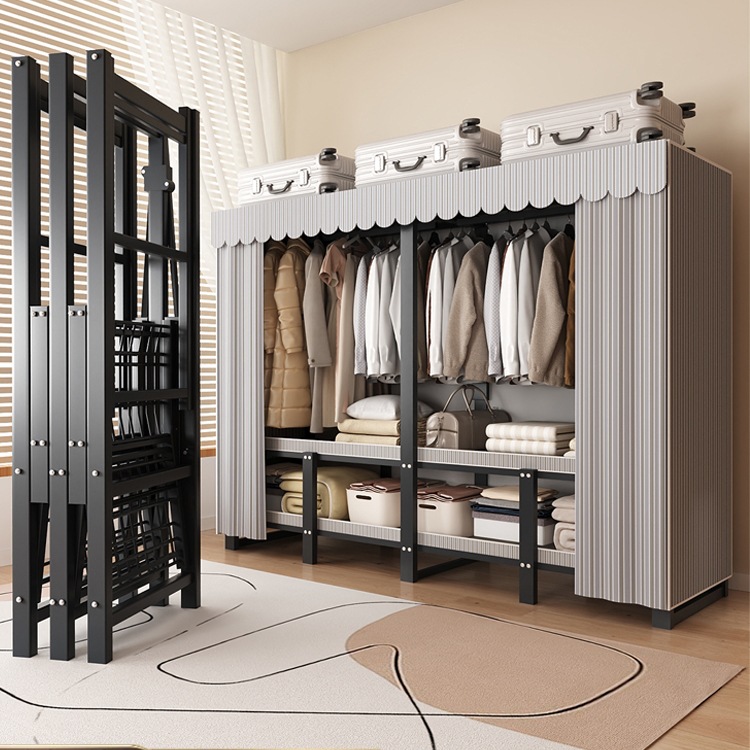 옷장, 침실, 가정용, 설치가 필요 없는 일체형 접이식 두꺼운 간단한 천 옷장, 임대실, 튼튼하고 내구성이 뛰어남