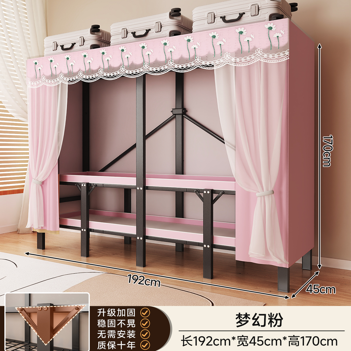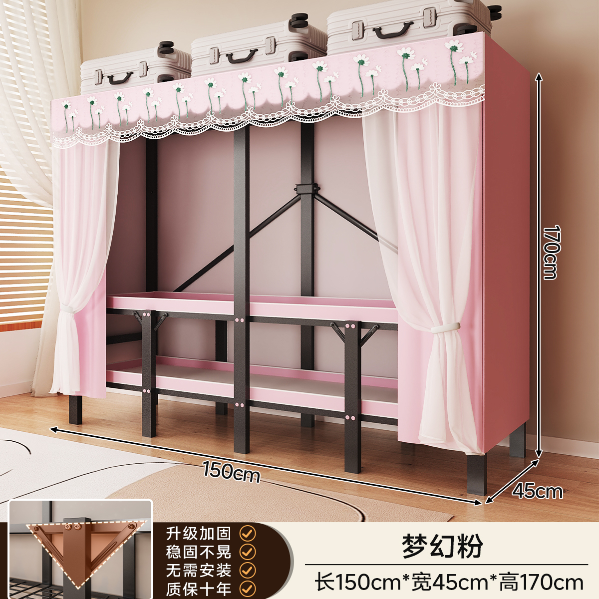 • 두꺼워진 일체형 무설치 [ 1.92m -드림핑크 ] 32MM 두꺼워진 강관으로 안정적이고 흔들리지 않습니다!