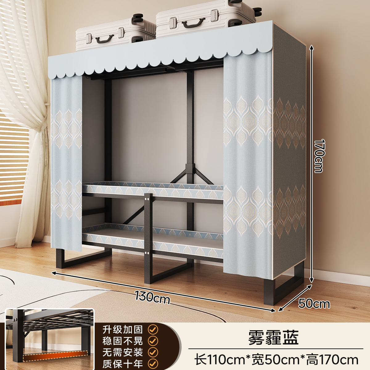 • 두꺼운 일체형 무설치 [ 1.3m - 헤이즈 블루 ] 32MM 두께의 강관으로 안정적이고 흔들리지 않습니다!