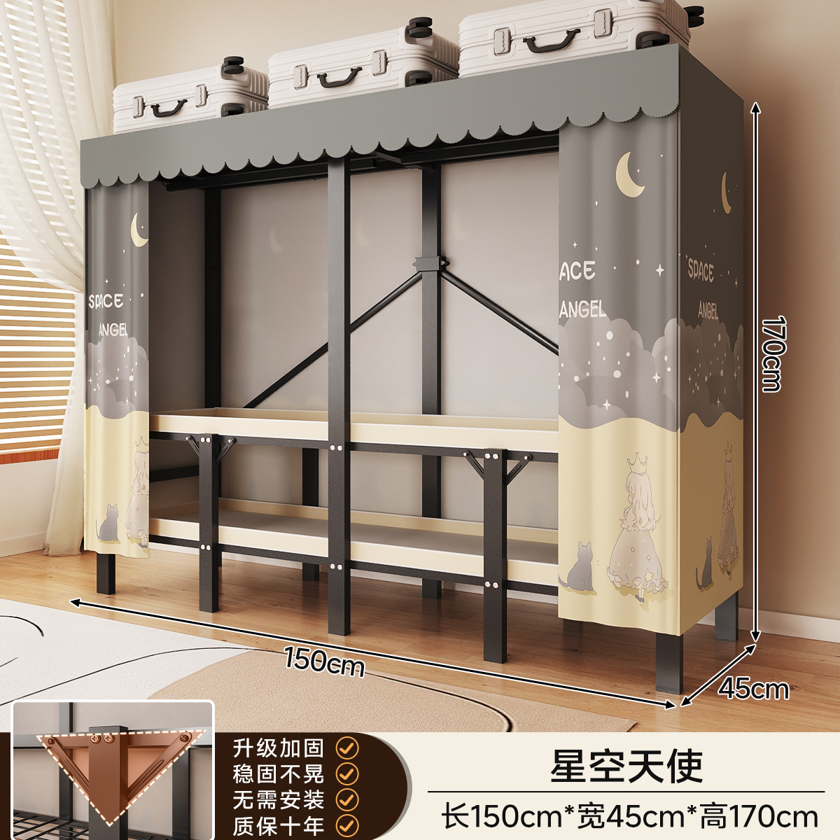 • 설치가 필요 없는 두꺼운 일체형 [1.5m - Starry Sky Angel] 32MM 두께의 강관이 안정적이고 흔들리지 않습니다!