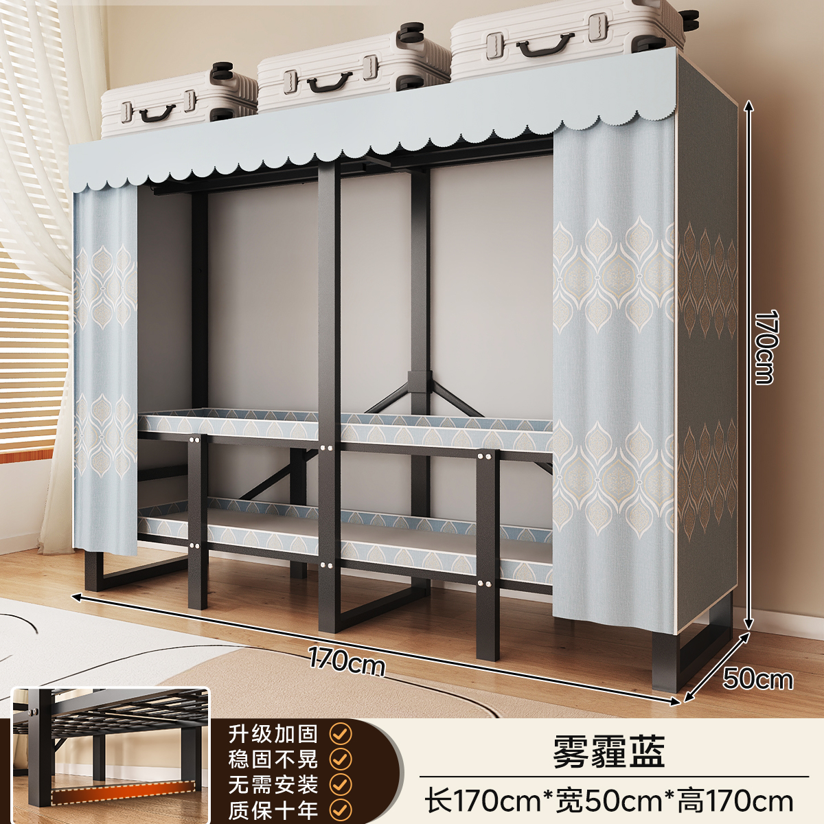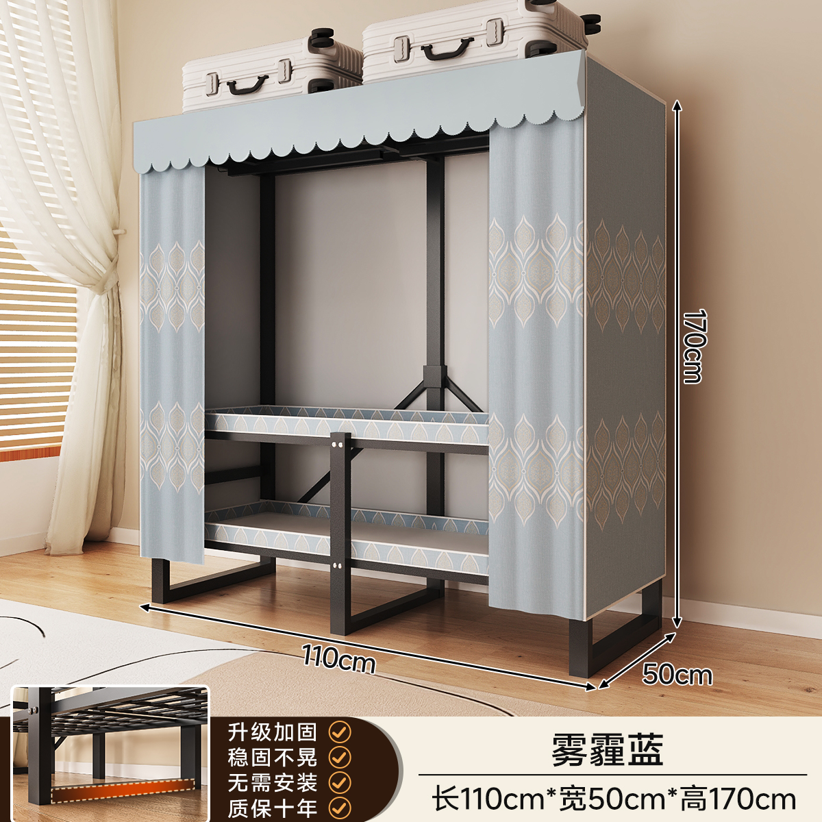 • 두꺼운 일체형 무설치 [ 1.70m - 헤이즈 블루 ] 32MM 두께의 강관으로 안정적이고 흔들리지 않습니다!