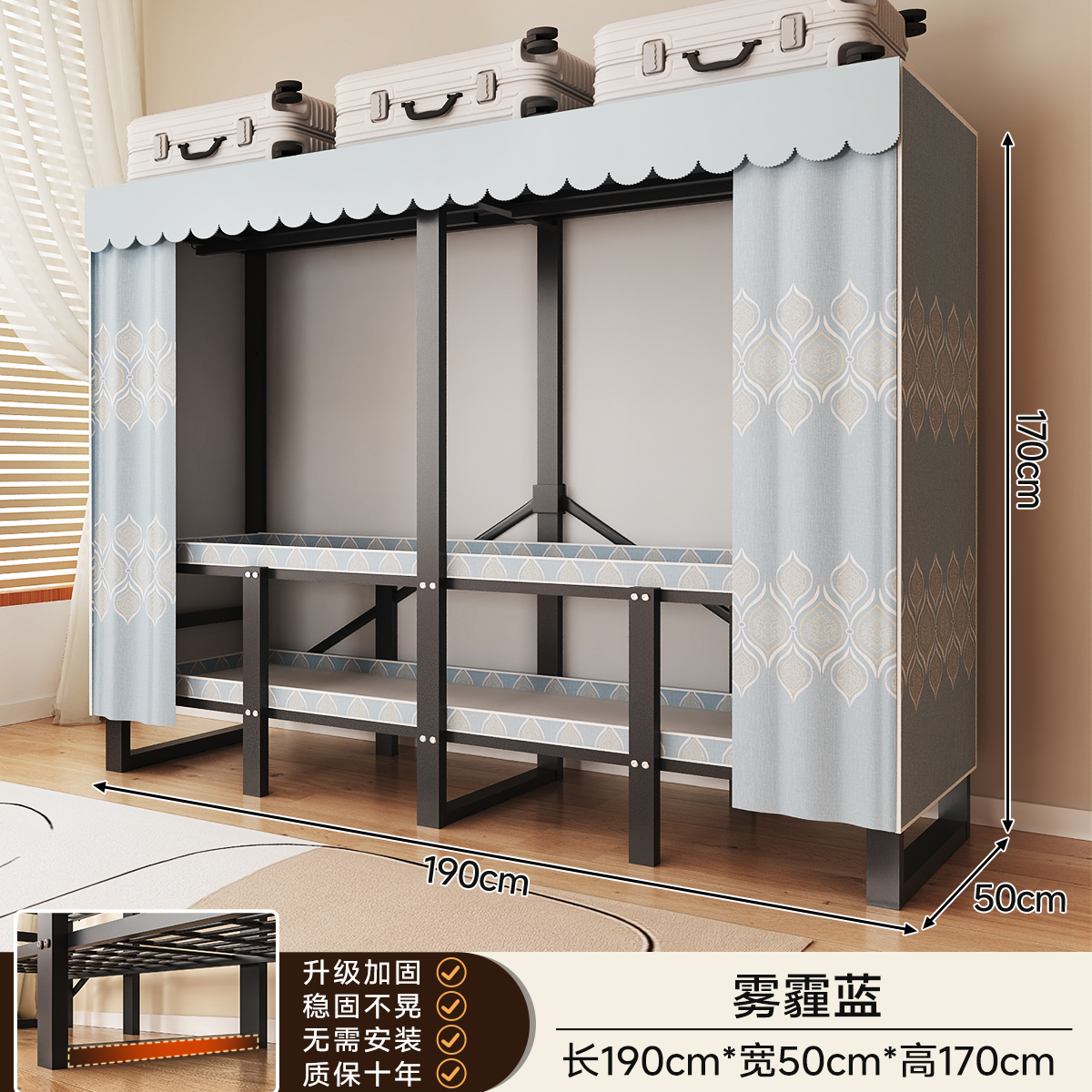 • 두꺼운 일체형 무설치 [ 1.90m - 헤이즈블루 ] 32MM 두께의 강관으로 안정적이고 흔들리지 않습니다!