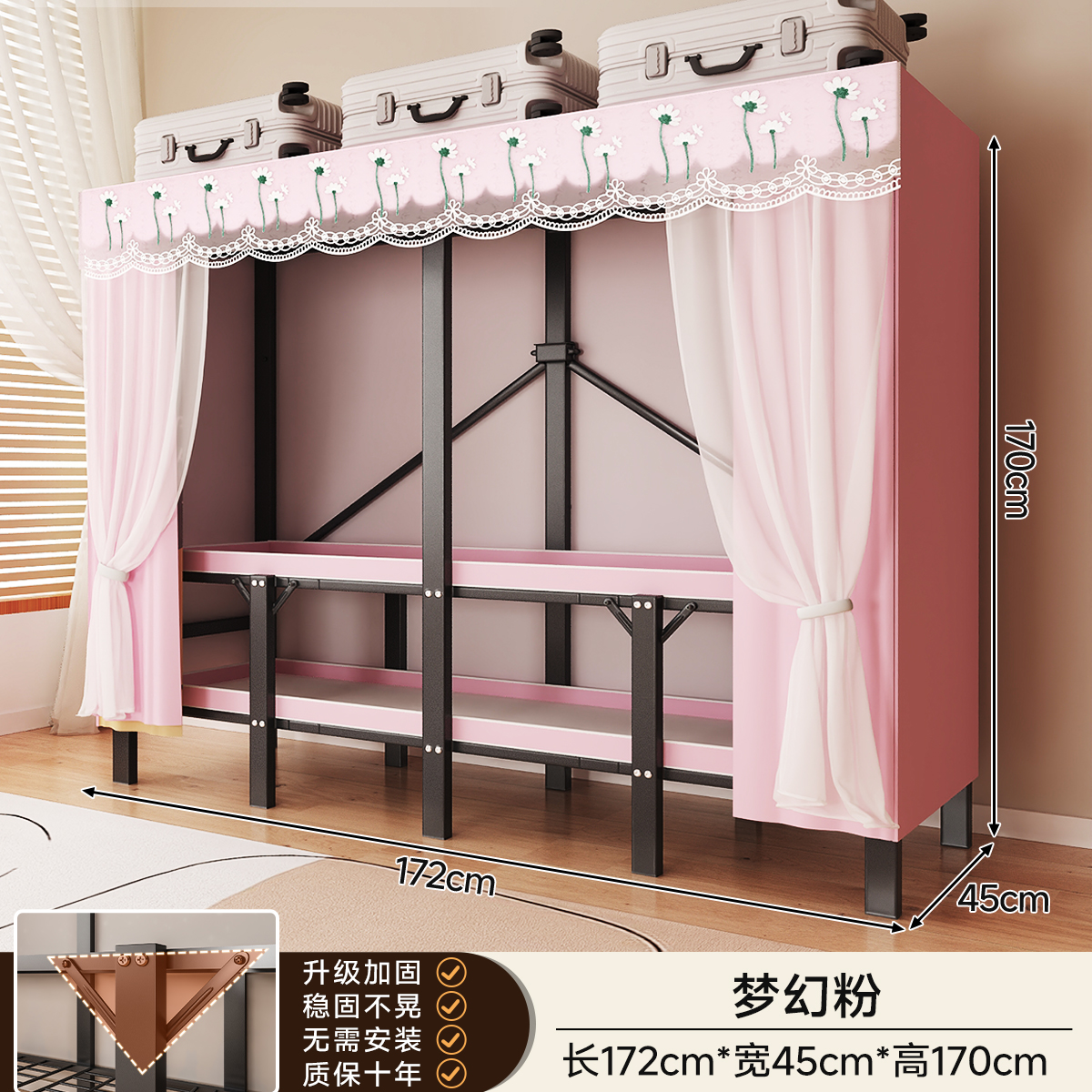 • 두꺼워진 일체형 무설치 [ 1.72m -드림핑크 ] 32MM 두꺼워진 강관으로 안정적이고 흔들리지 않습니다!
