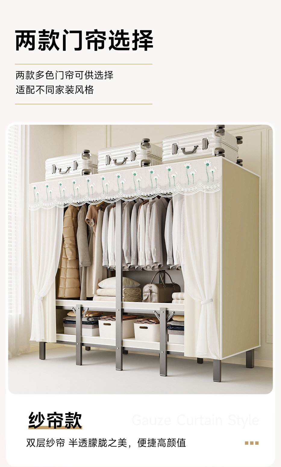 • 두꺼워진 일체형 무설치 [ 1.90m - 우아한 스트라이프 ] 32MM 두꺼워진 강관이 안정적이고 흔들리지 않습니다!