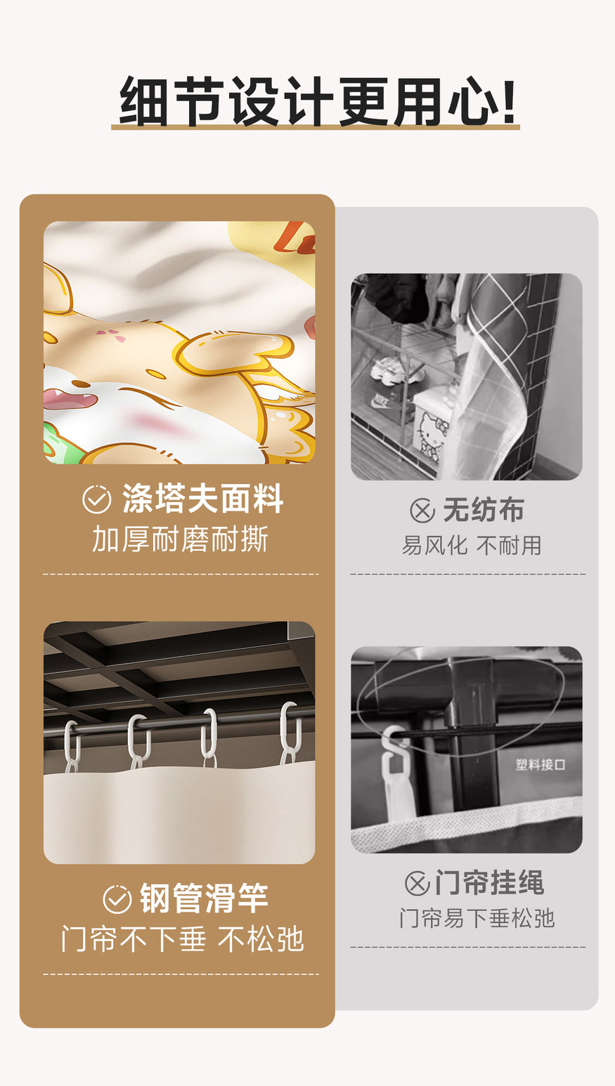 • 두꺼워진 일체형 무설치 [ 2.16m - 엘레강트 그레이 ] 32MM 두께의 스틸파이프가 안정적이고 흔들리지 않습니다!