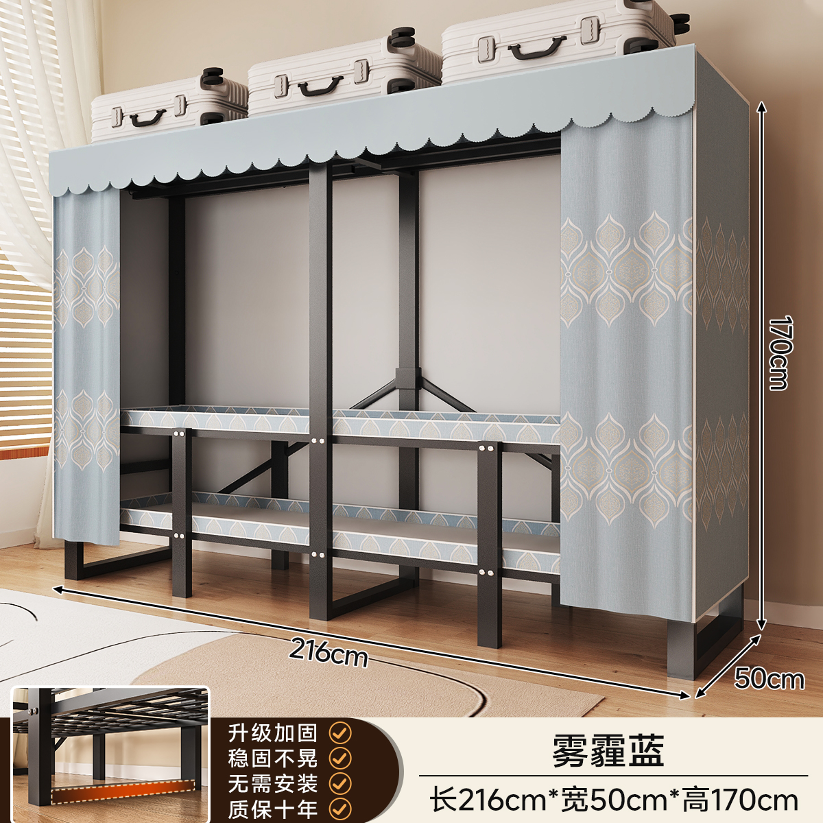 • 두꺼운 일체형 무설치 [ 2.16m - 헤이즈 블루 ] 32MM 두께의 강관으로 안정적이고 흔들리지 않습니다!