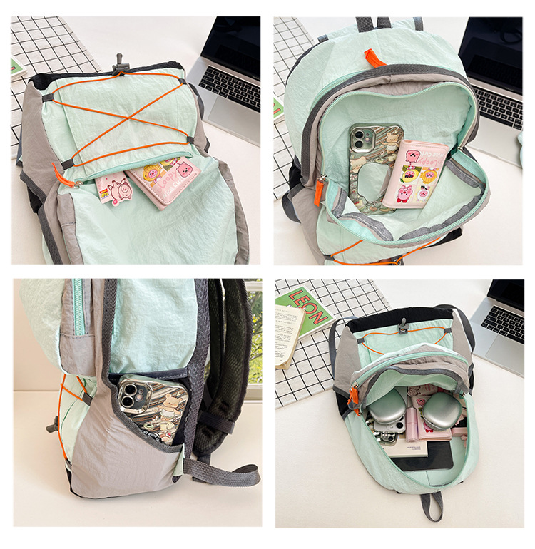 배낭 야외 여행 졸라매는 끈 대비 색상 복고풍 등산 가방 가볍고 간단한 하이킹 및 사이클링 방수 배낭스토어 가기