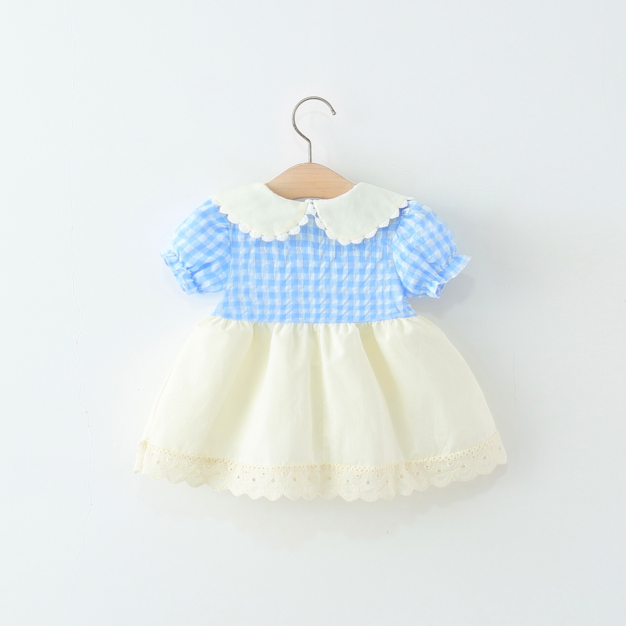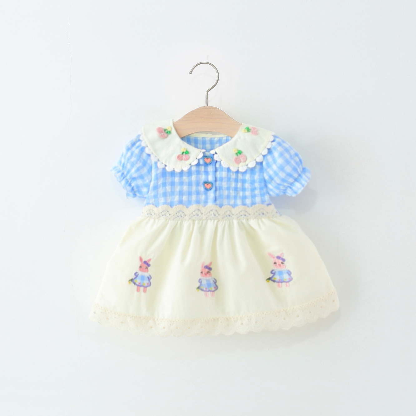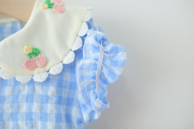 아동 의류 소녀 반팔 드레스 여름 아기 소녀 아기 만화 격자 무늬 레이스 로리타 공주 드레스스토어 가기
