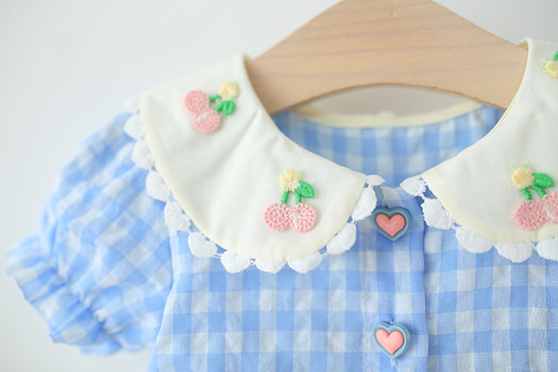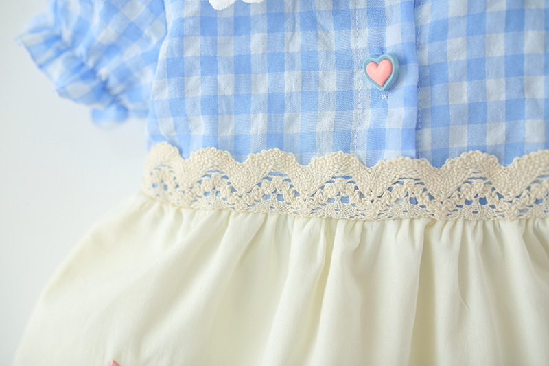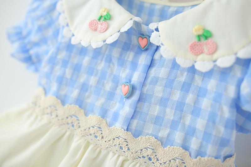 아동 의류 소녀 반팔 드레스 여름 아기 소녀 아기 만화 격자 무늬 레이스 로리타 공주 드레스