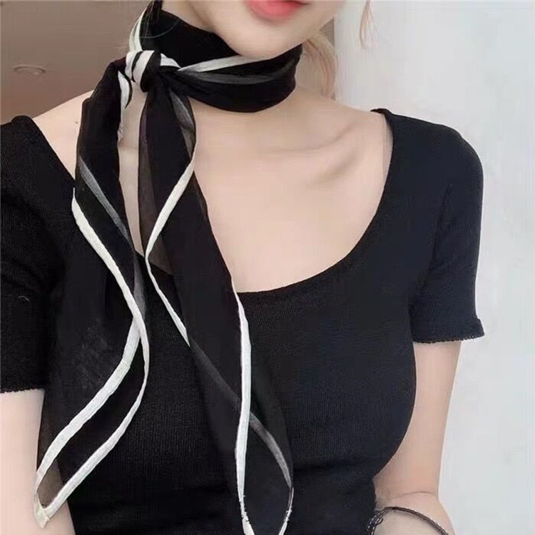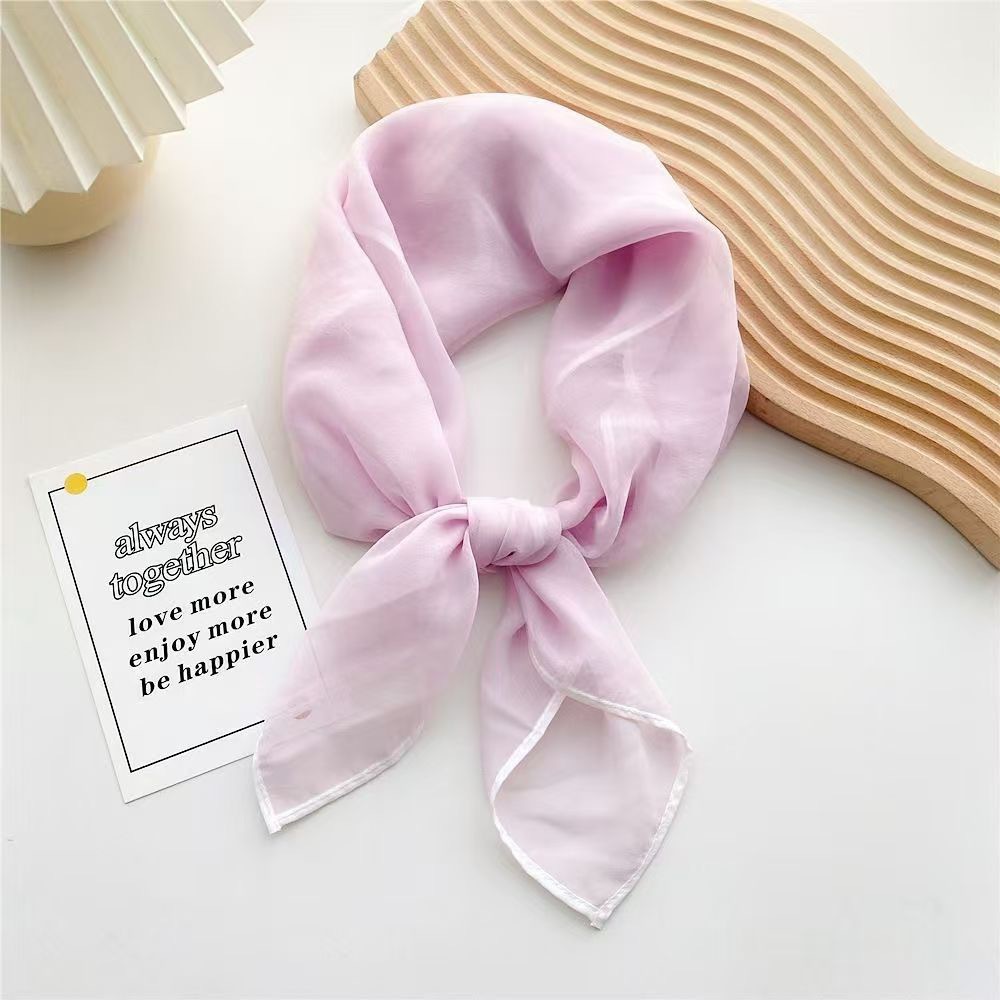 봄과 가을 단색 70cm 여성용 작은 사각형 스카프, 예술적 기질, 심플한 소녀 헤어 액세서리, 다용도 장식 스카프, 실크 스카프
