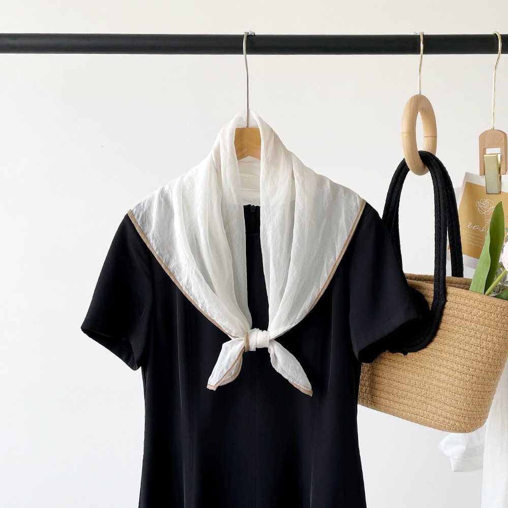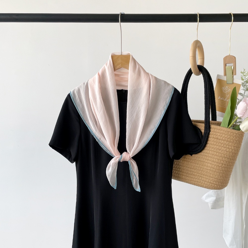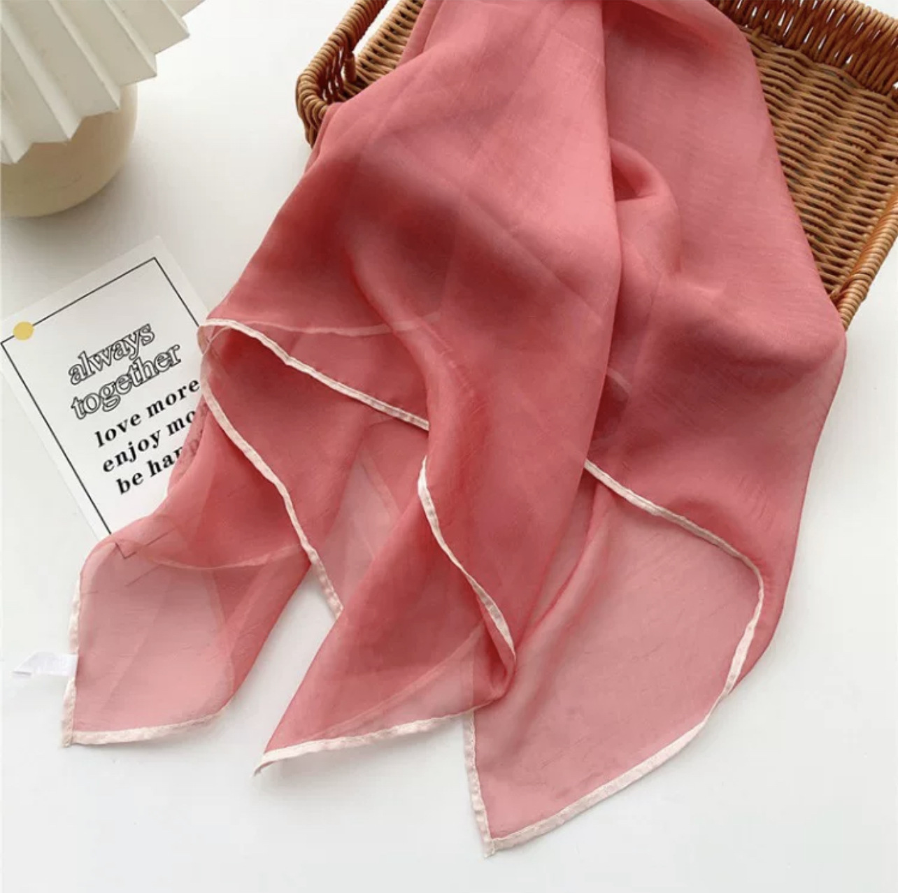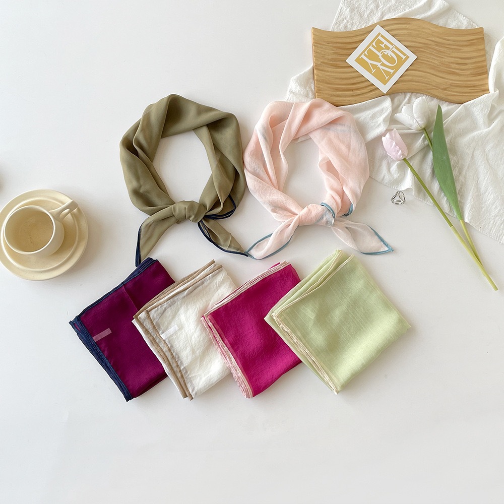 봄과 가을 단색 70cm 여성용 작은 사각형 스카프, 예술적 기질, 심플한 소녀 헤어 액세서리, 다용도 장식 스카프, 실크 스카프스토어 가기