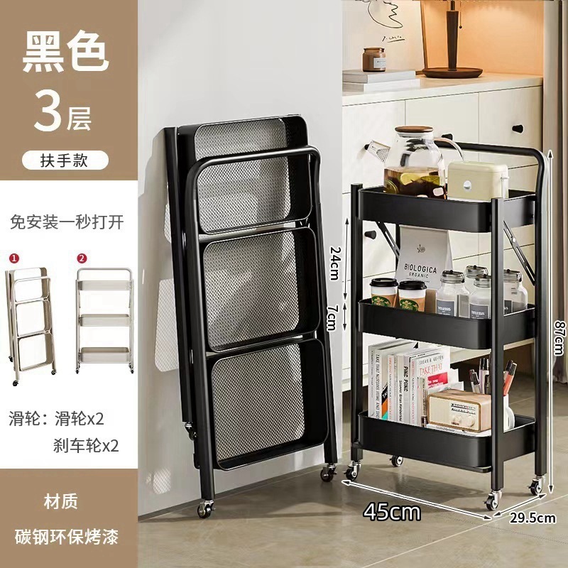 트롤리 보관함 모바일 스낵 보관함 주방 접이식 계층형 선반 바닥 스탠딩 아기 용품 보관함