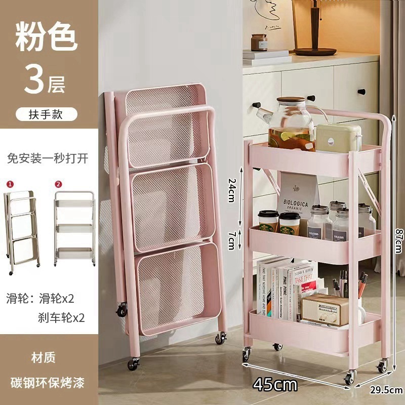 트롤리 보관함 모바일 스낵 보관함 주방 접이식 계층형 선반 바닥 스탠딩 아기 용품 보관함스토어 가기