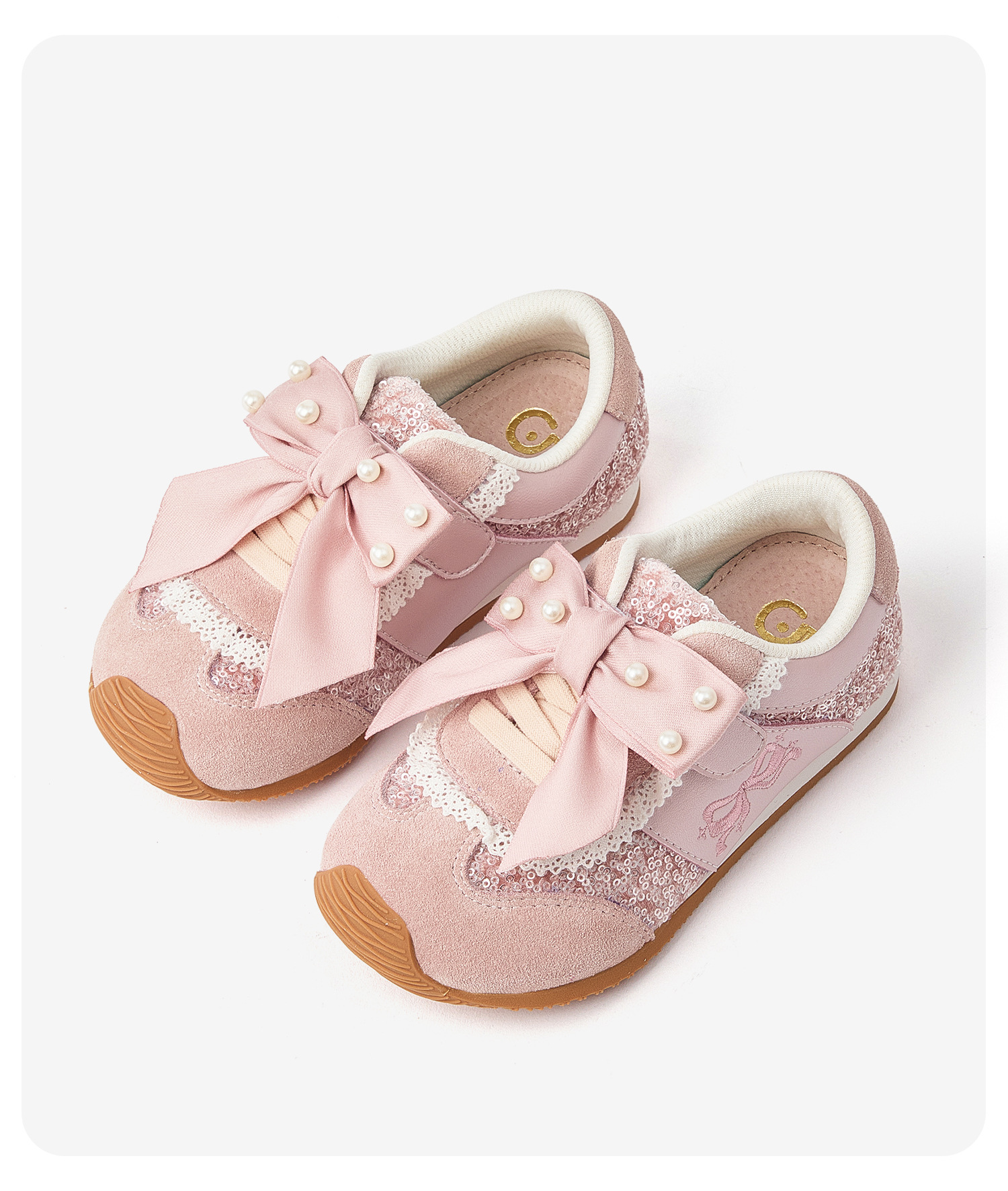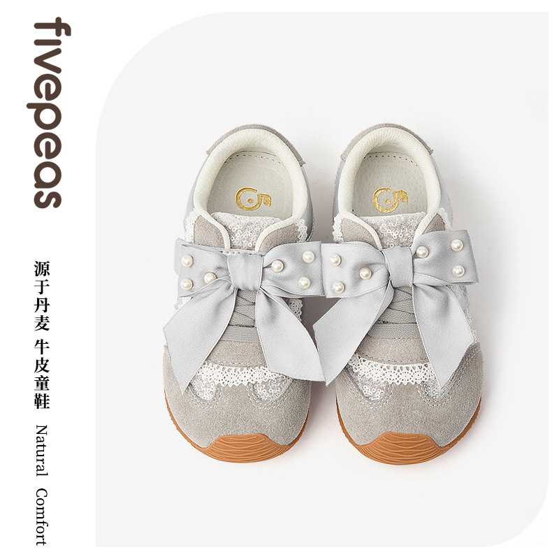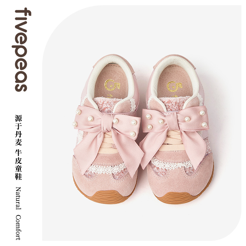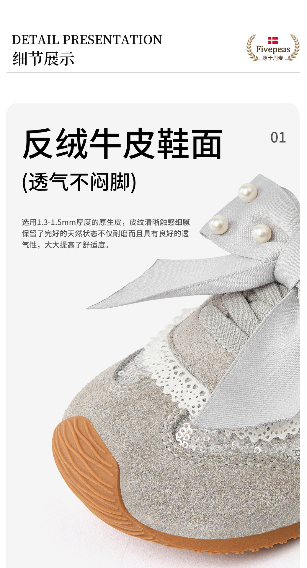 Five Beans 어린이 도덕 훈련 신발 소녀 캐주얼 운동화 달콤한 나비 발레 스타일 운동화 가을 부드러운 신발